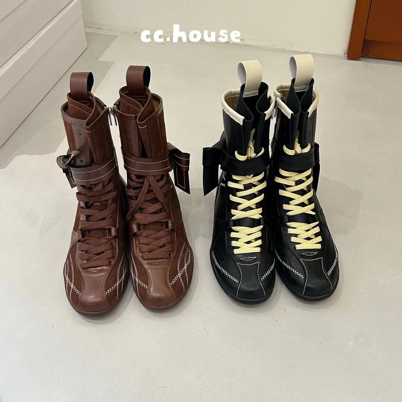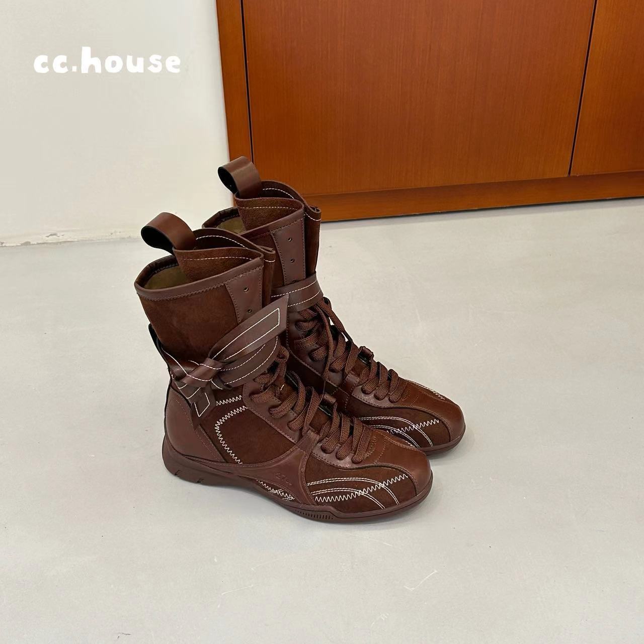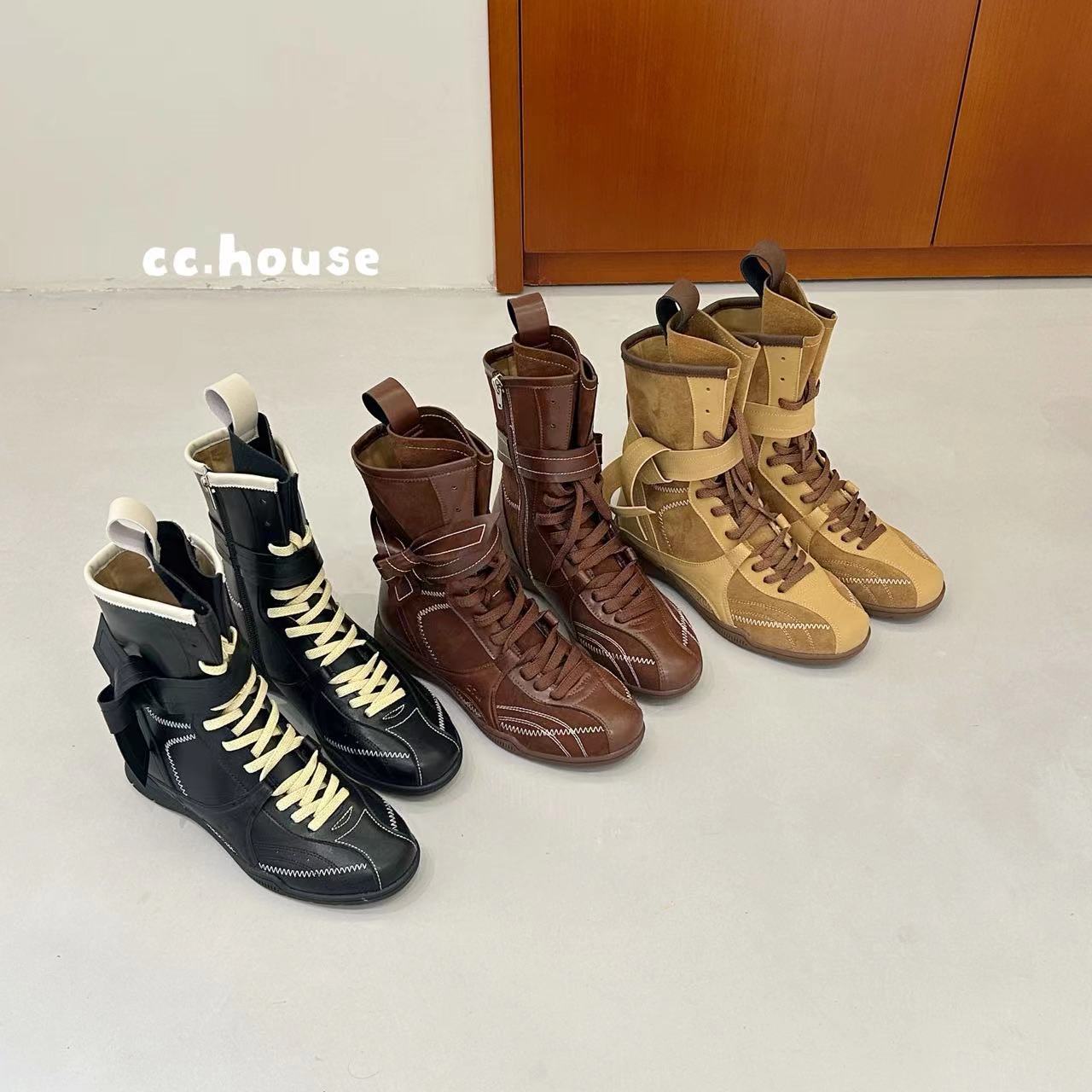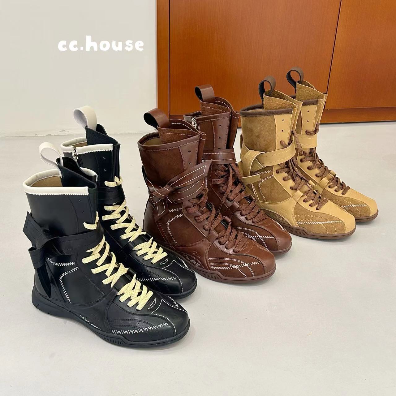 2025 봄 레트로 내부 강화 마틴 부츠 여성용 브라운 복싱 부츠 누벅 가죽 라운드 발가락 레이스 업 스포츠 부츠 짧은 부츠스토어 가기