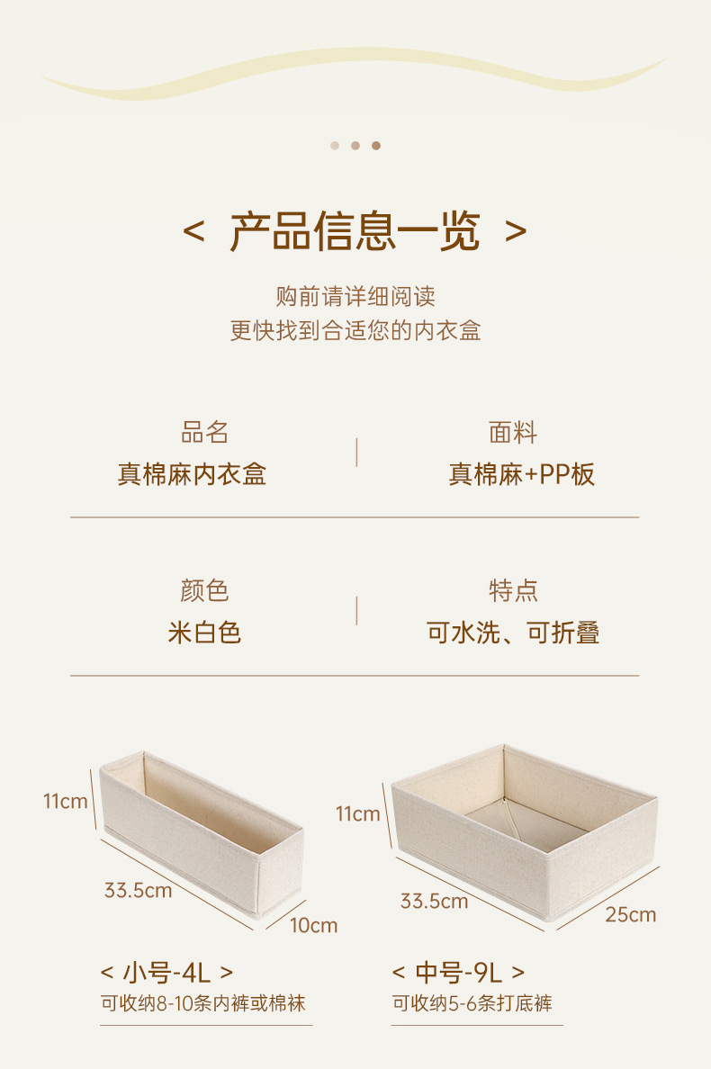 맞춤형 Tianshan 면 및 린넨 속옷 보관 상자, 접이식 직물 양말 정리 상자, 냄새 없음, 세탁 가능스토어 가기