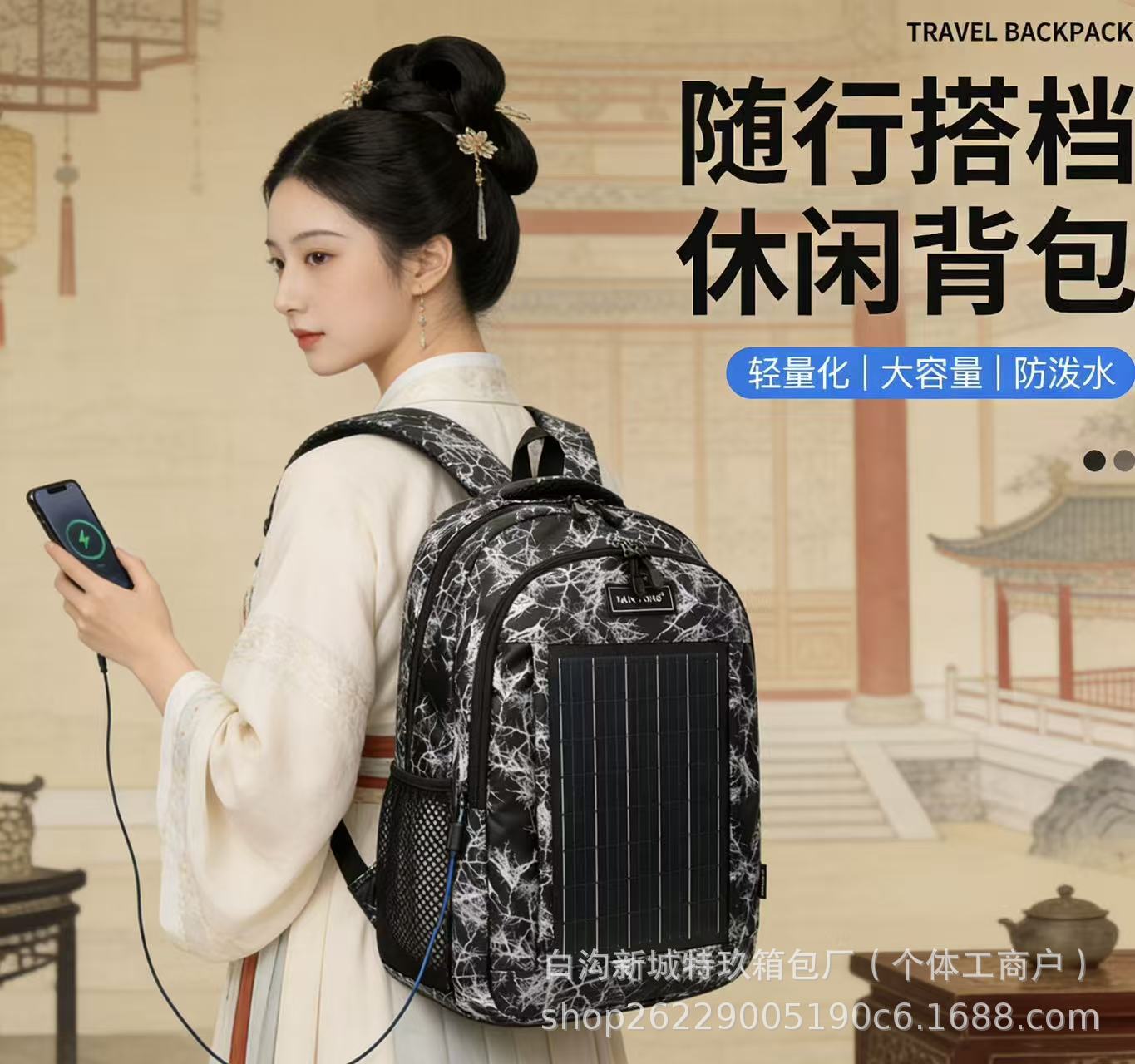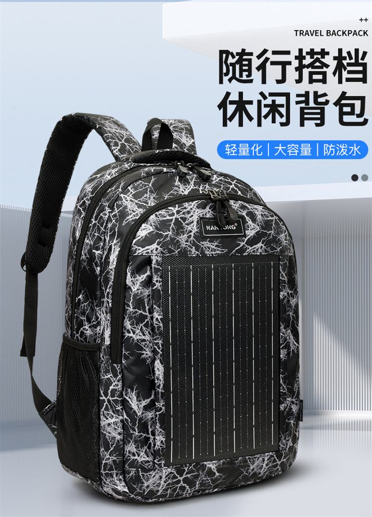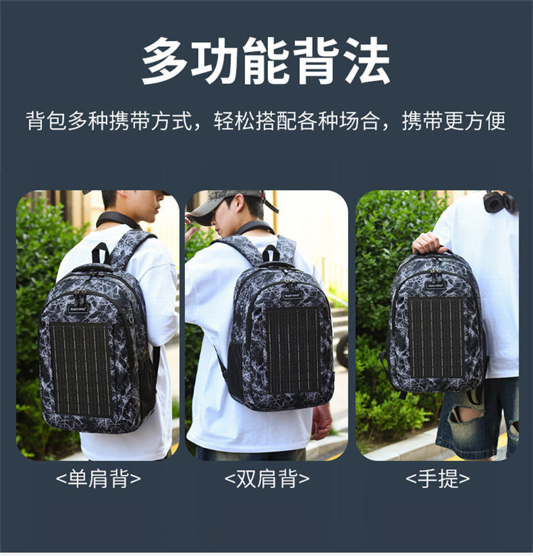 야외용 남녀공용 태양광 충전식 백팩, 레저, 비즈니스, 등산, 탐험, 캠핑, 컴퓨터, 여행, 책가방