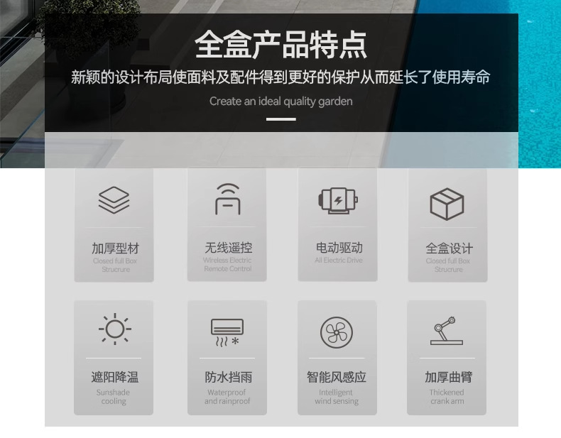 원래 제조업체 전기 야외 천막 빌라 안뜰 테라스 레인 캐노피 상점 개폐식 접이식 발코니 천막