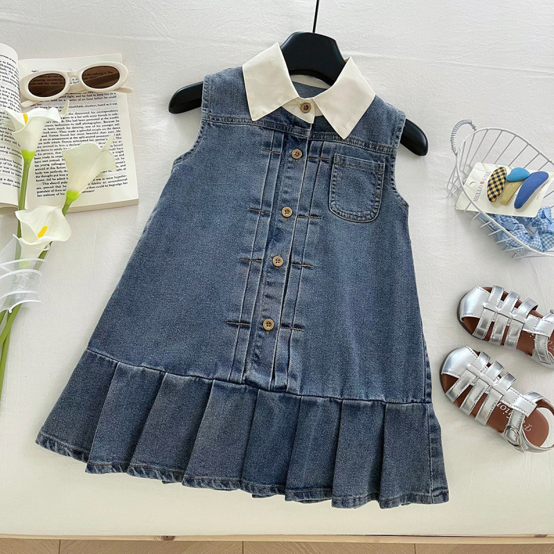 아동복 도매 신상 여아 여름 민소매 원피스 여아 한국 스타일 데님 조끼 원피스 아동 롱 스커트스토어 가기