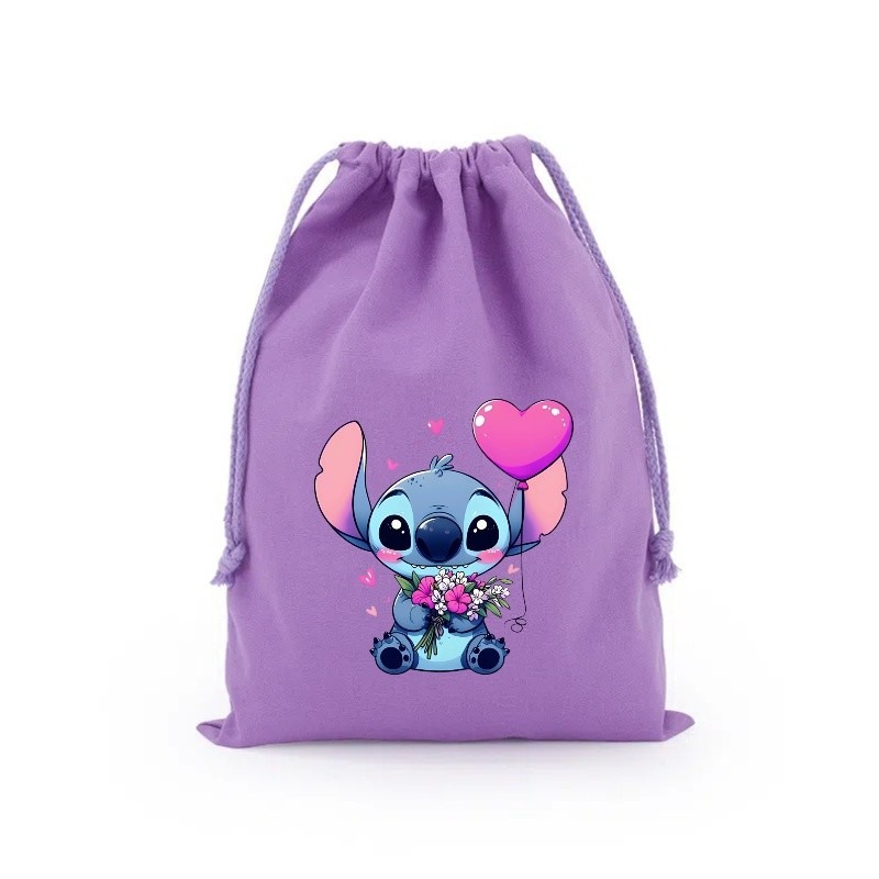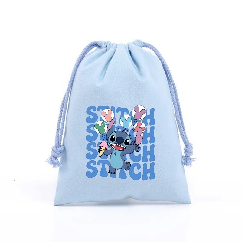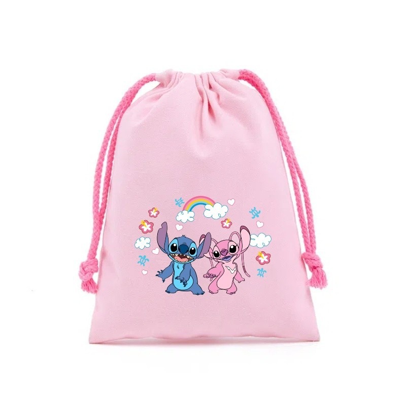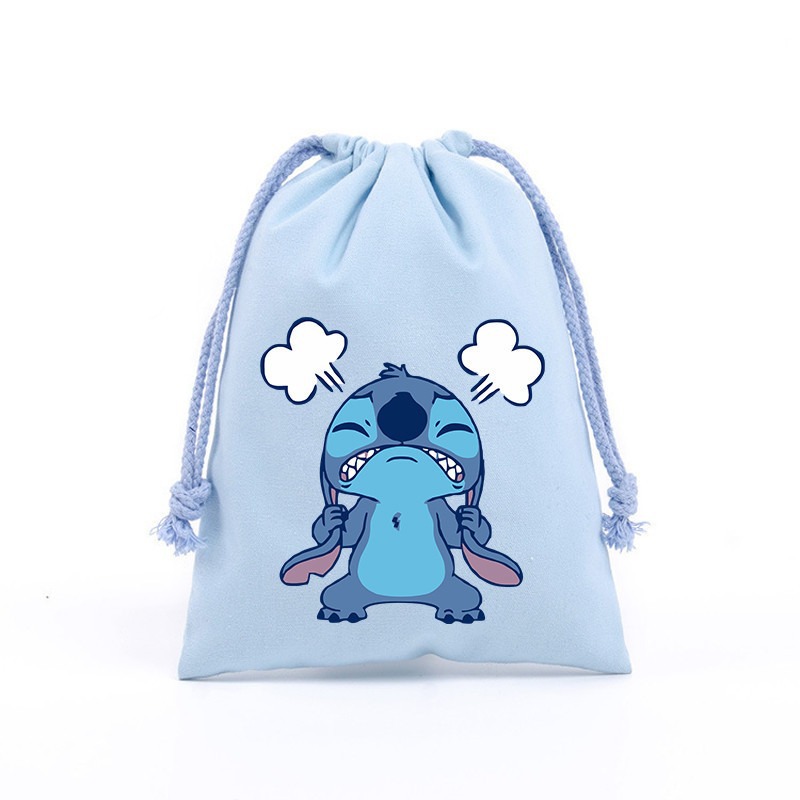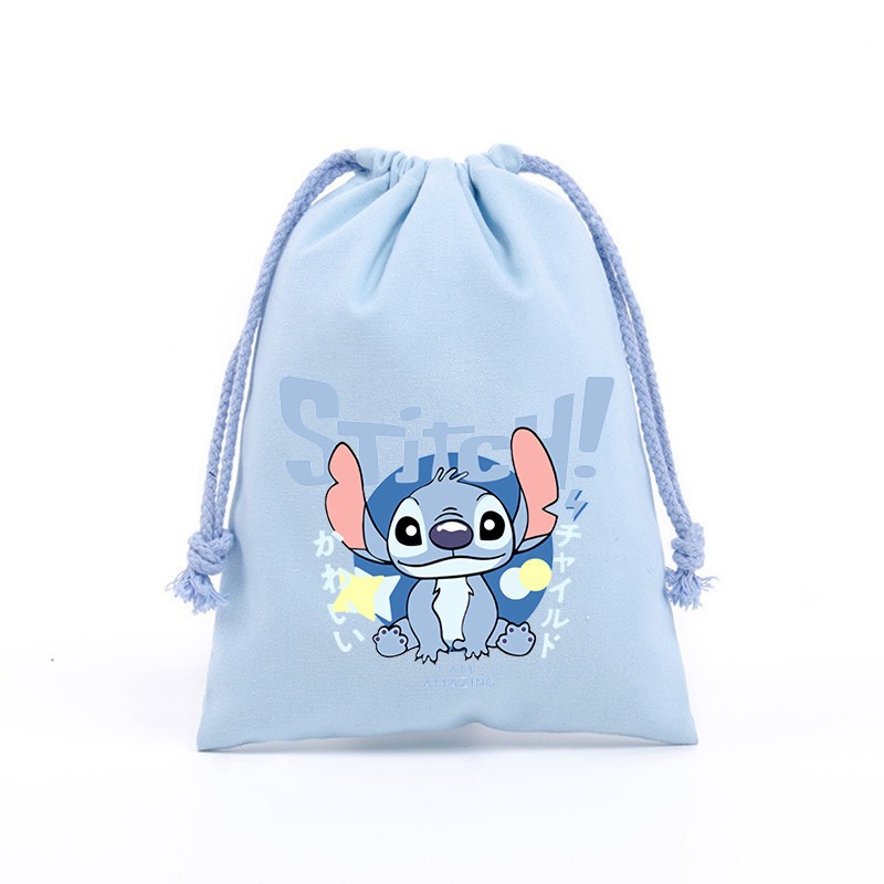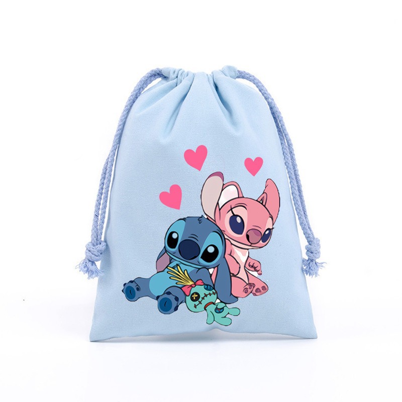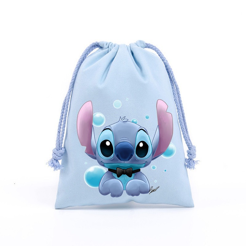 국경 간 뜨거운 판매 스티치 만화 인쇄 캔버스 스트링 포켓 소녀 여행 저장 가방 어린이 저장 가방
