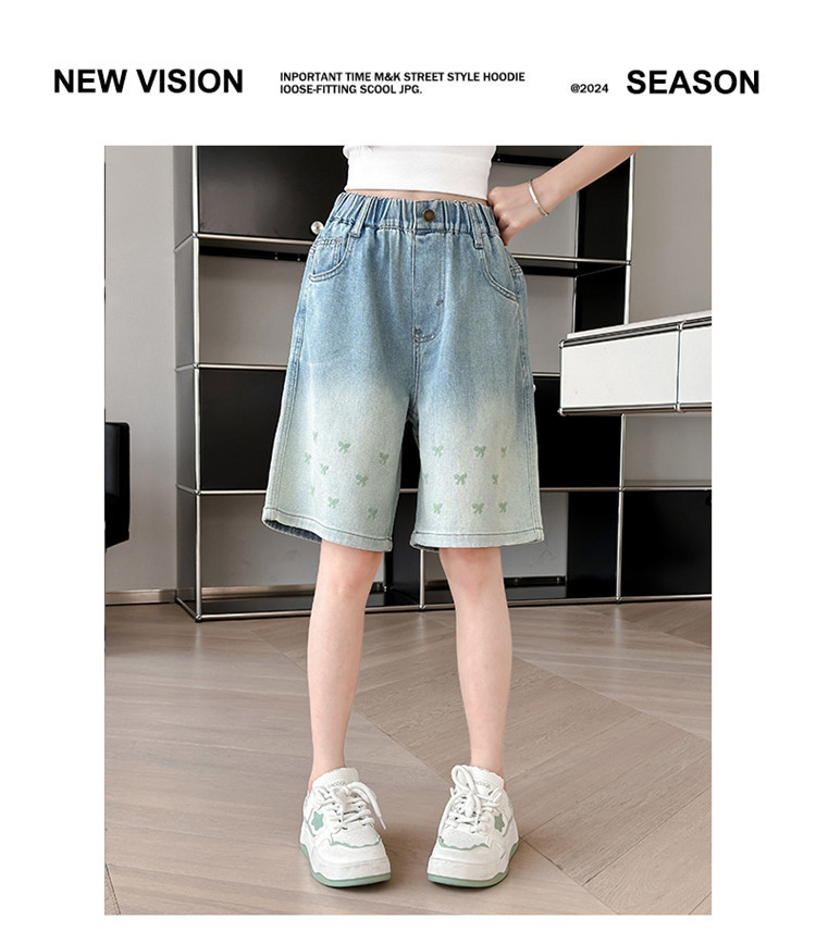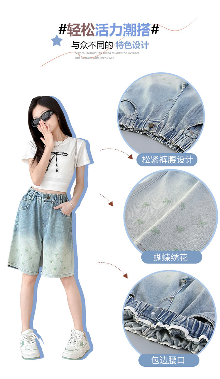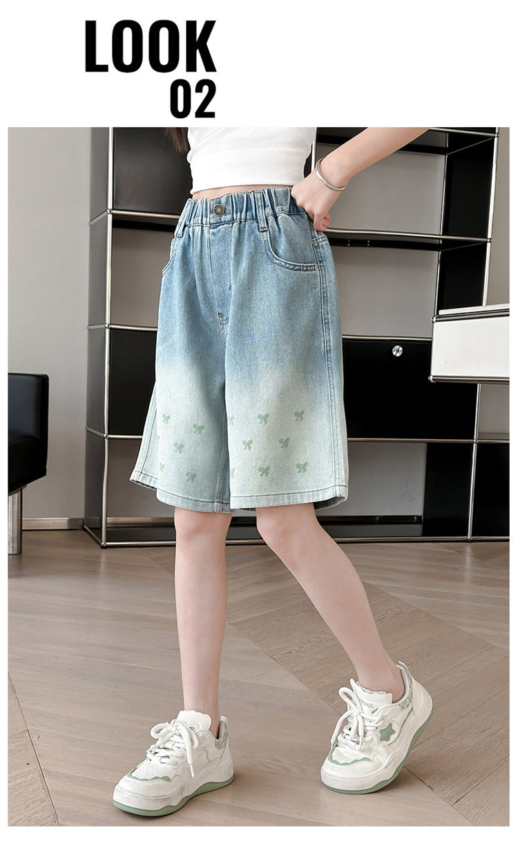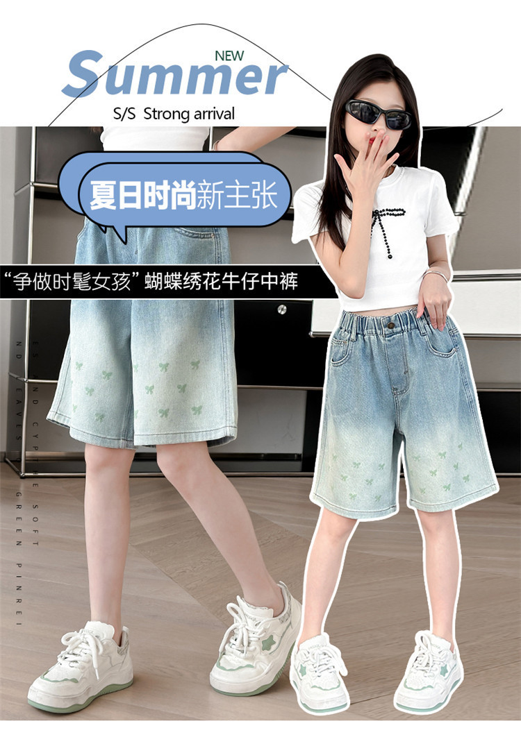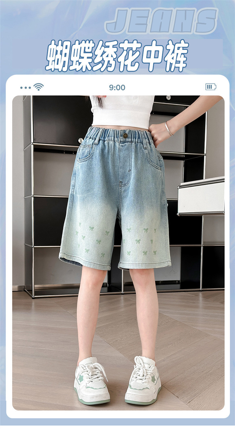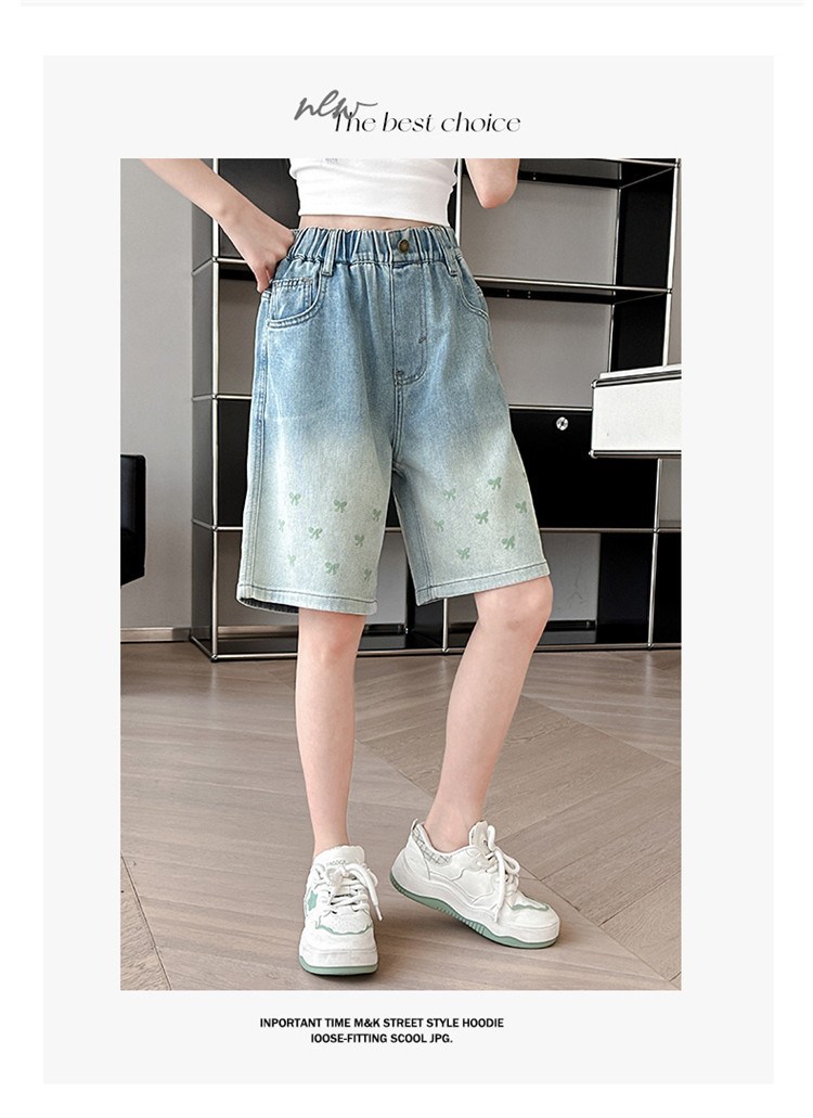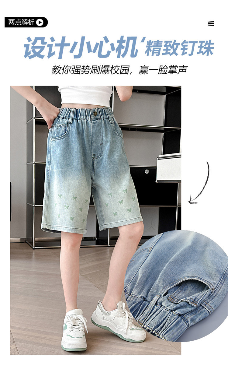 여아 데님 반바지 여름 2025 5부 바지 루즈한 신작 아동용 얇은 중간 바지 중대형 아동 여름 바지스토어 가기