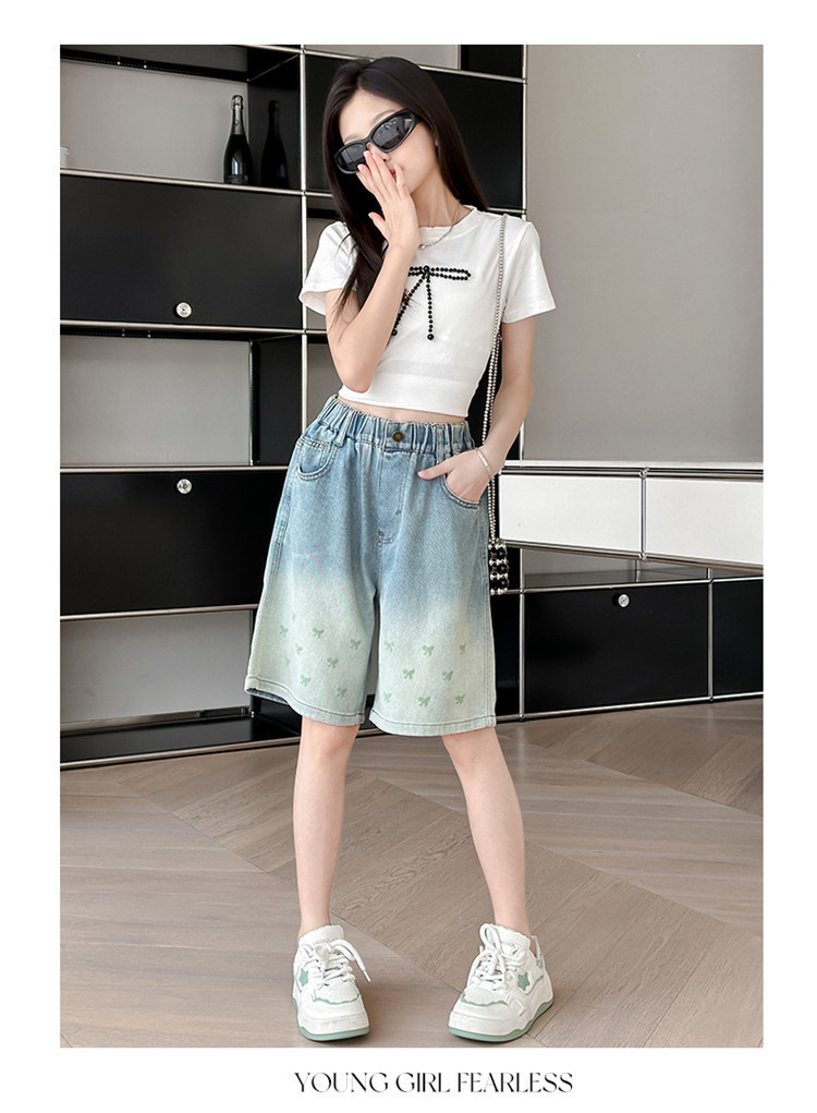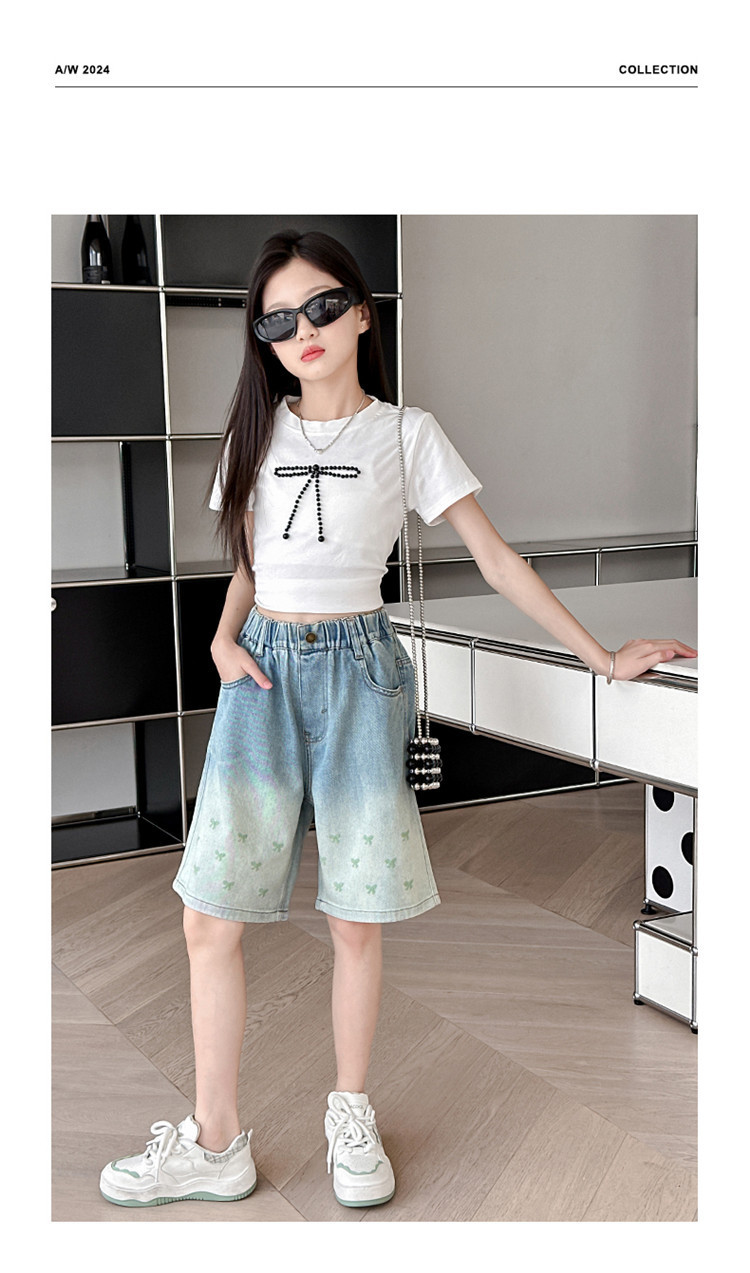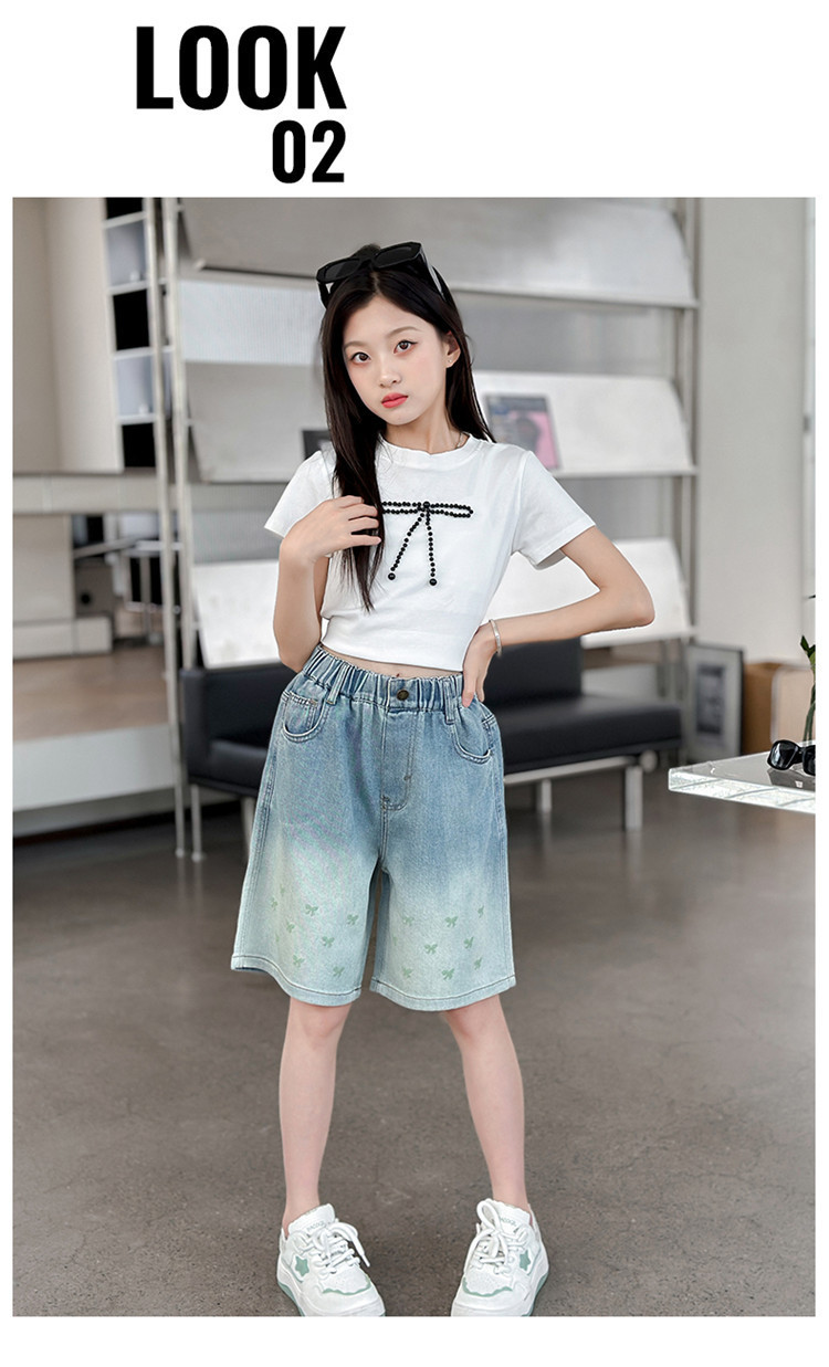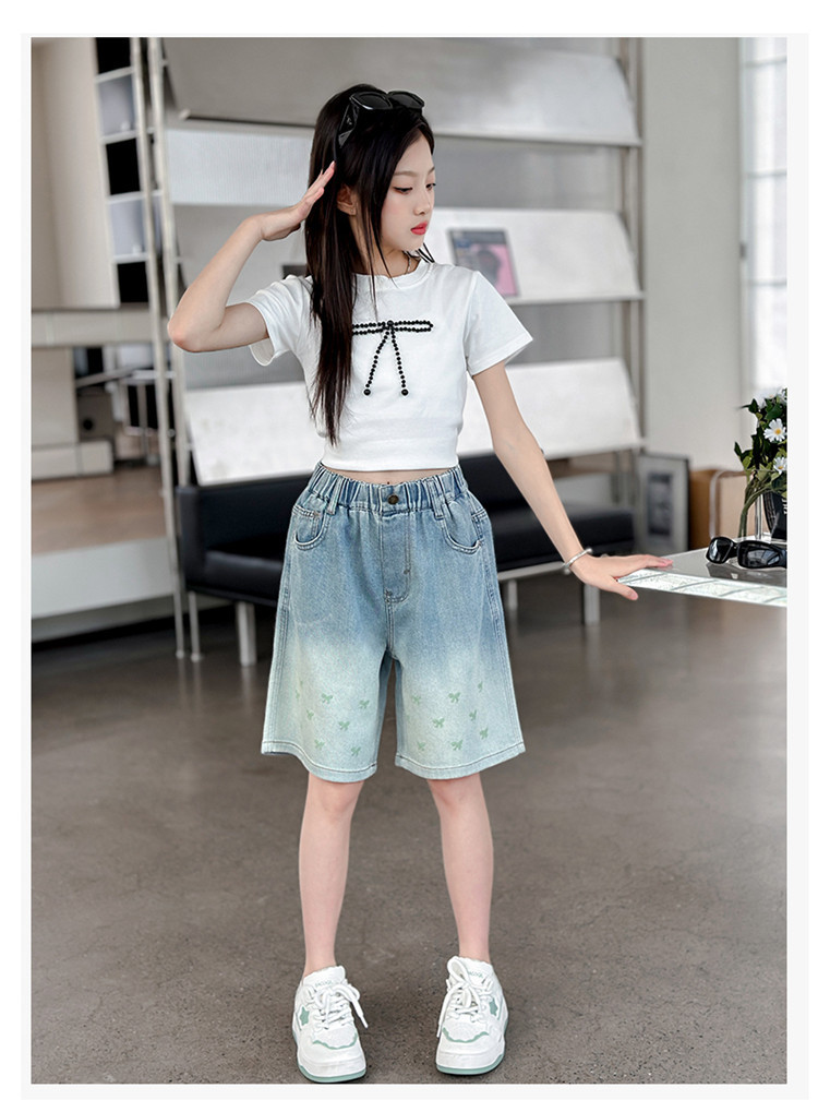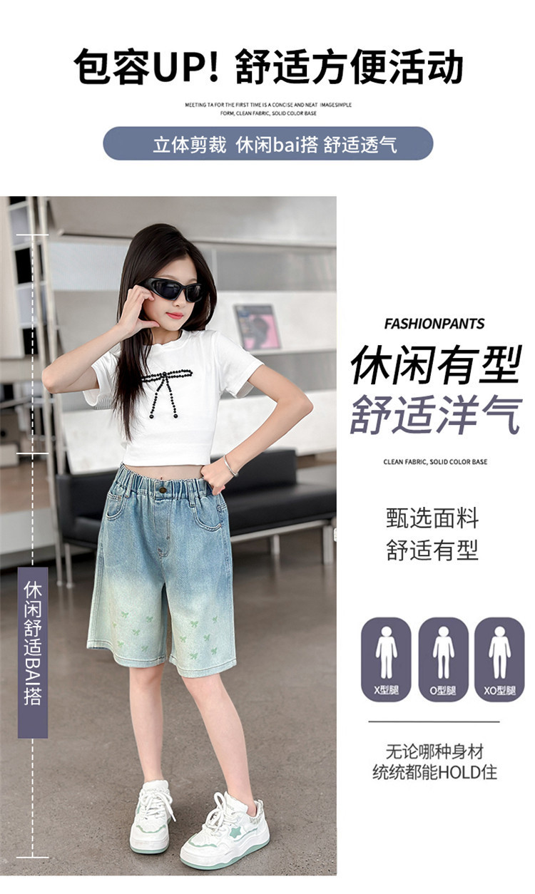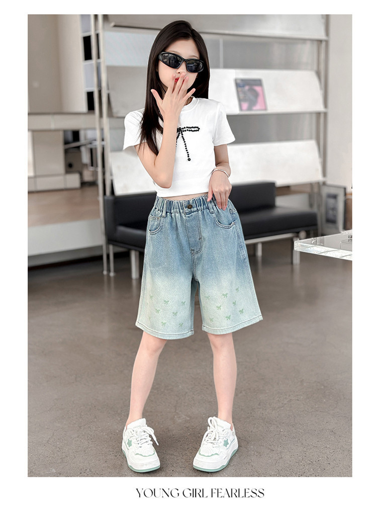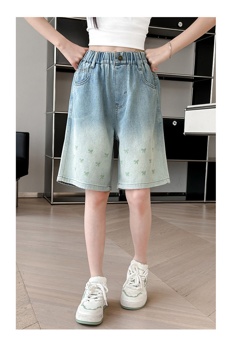 여아 데님 반바지 여름 2025 5부 바지 루즈한 신작 아동용 얇은 중간 바지 중대형 아동 여름 바지스토어 가기