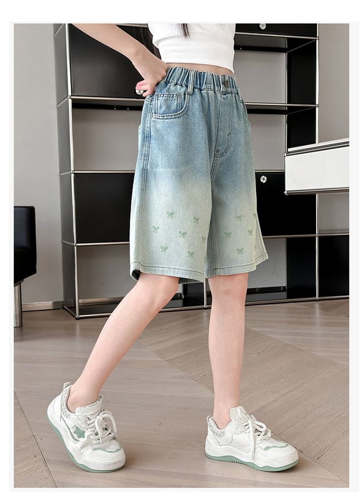 여아 데님 반바지 여름 2025 5부 바지 루즈한 신작 아동용 얇은 중간 바지 중대형 아동 여름 바지