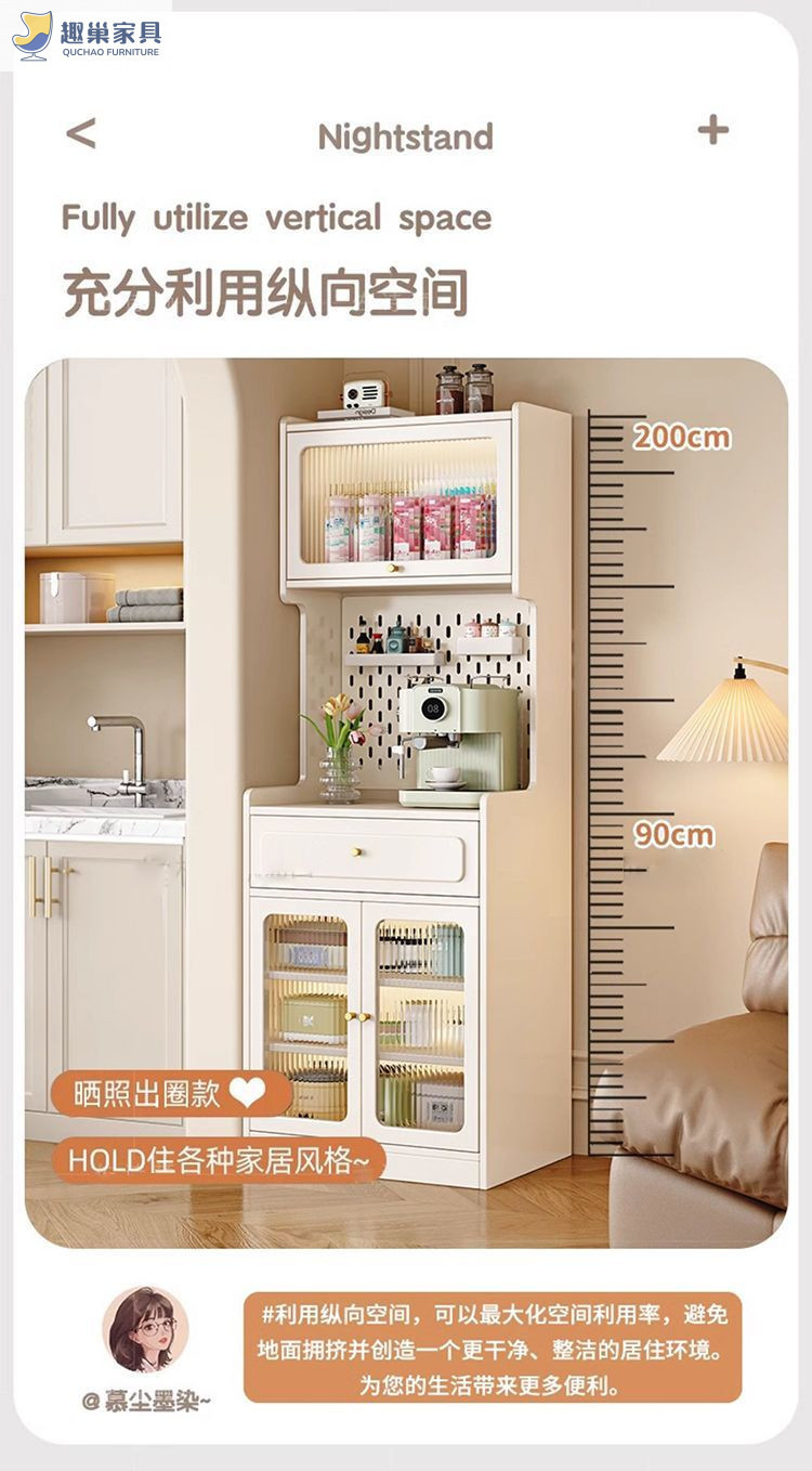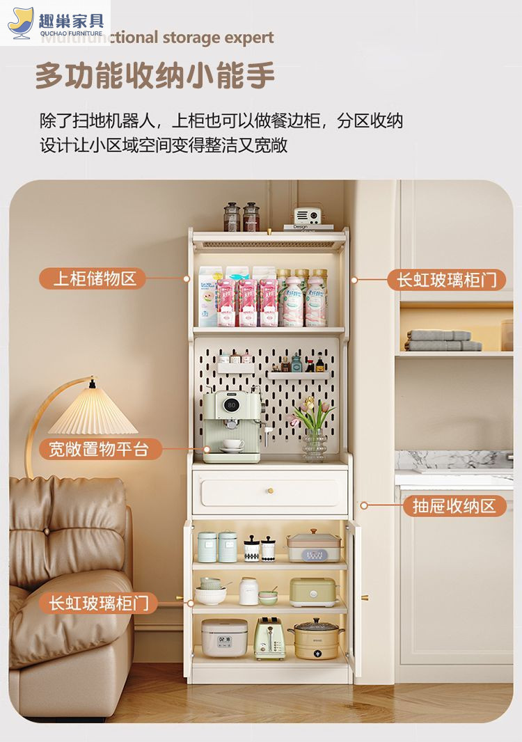 단단한 나무 찬장, 구멍 보드, 복고풍 좁은 수납 찻상, 일체형 소형 주방 수납 캐비닛