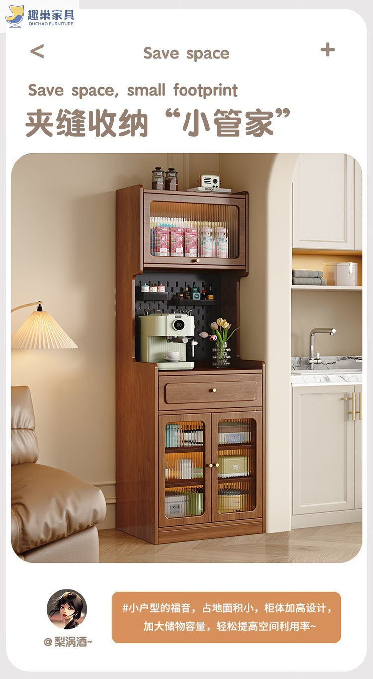 단단한 나무 찬장, 구멍 보드, 복고풍 좁은 수납 찻상, 일체형 소형 주방 수납 캐비닛스토어 가기
