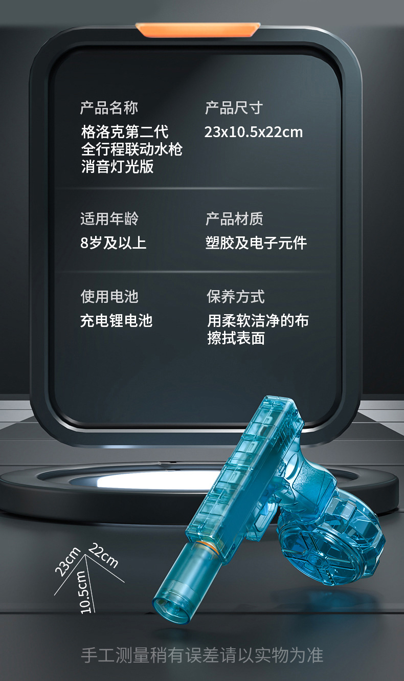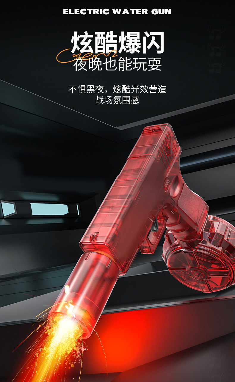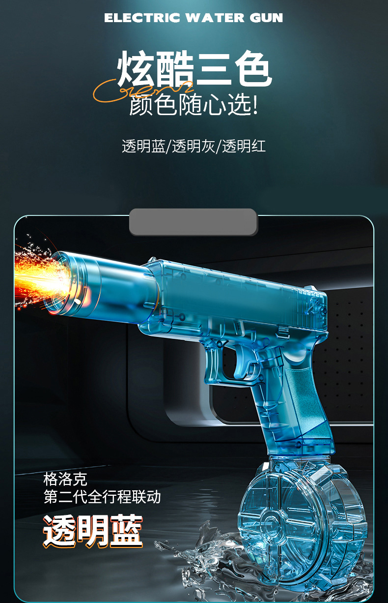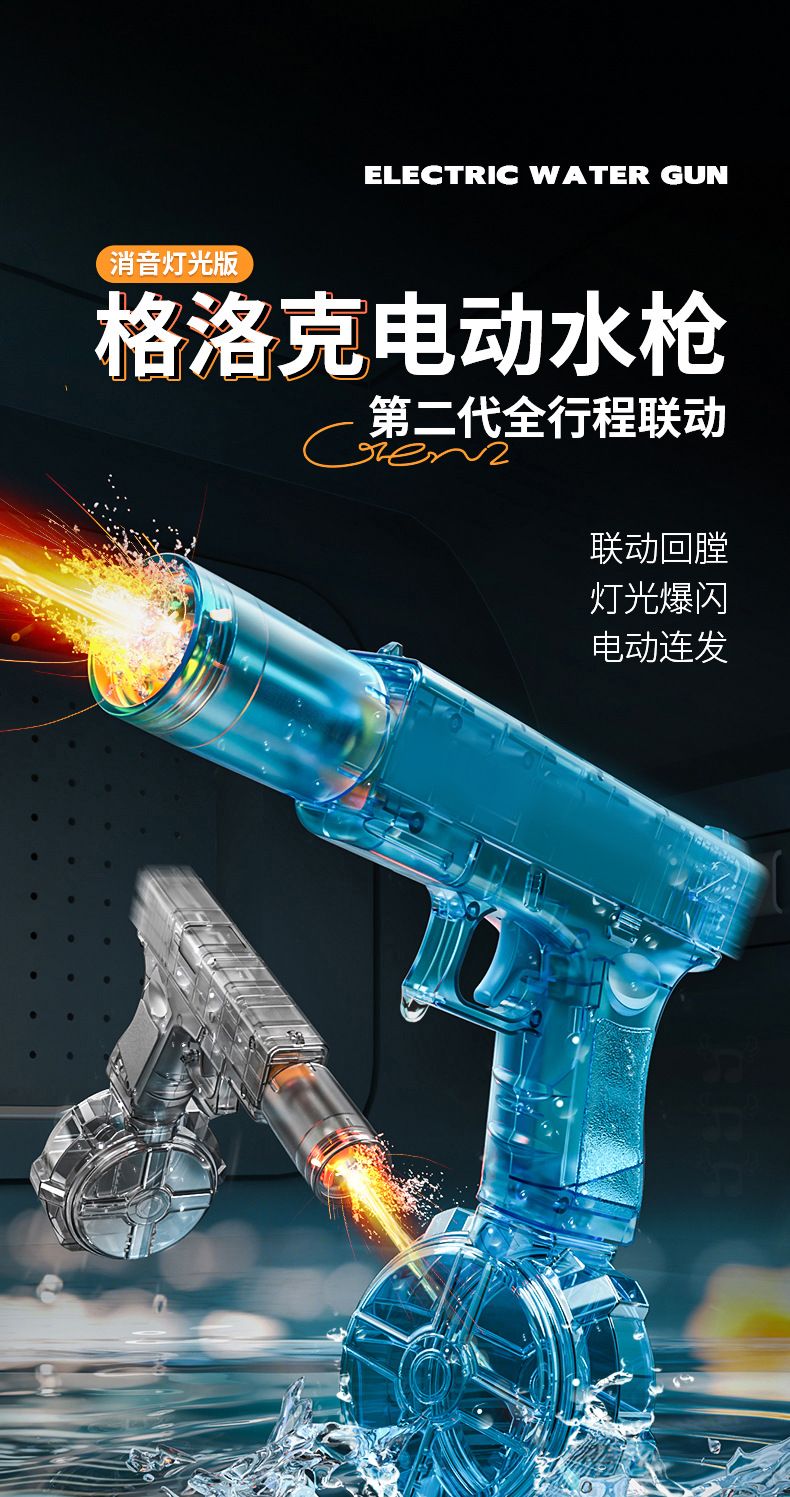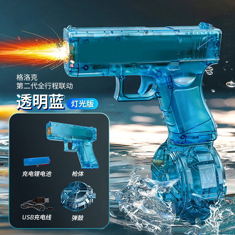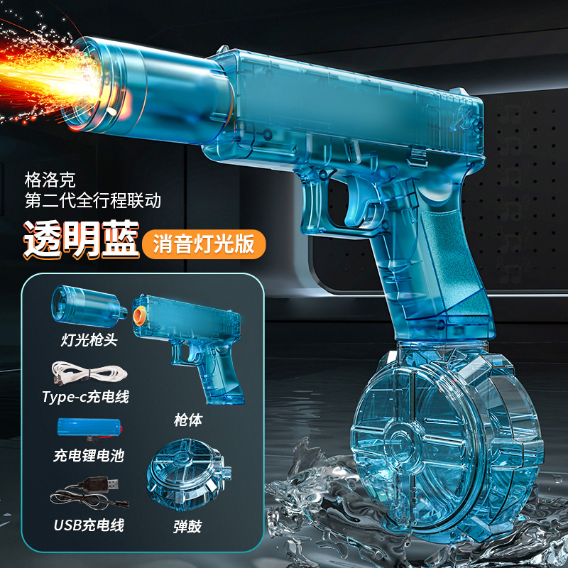 새로운 Glock 블랙 기술 전기 물총 장난감 연속 발사 어린이 고압 물총 완전 자동 화재 쥐 물총스토어 가기
