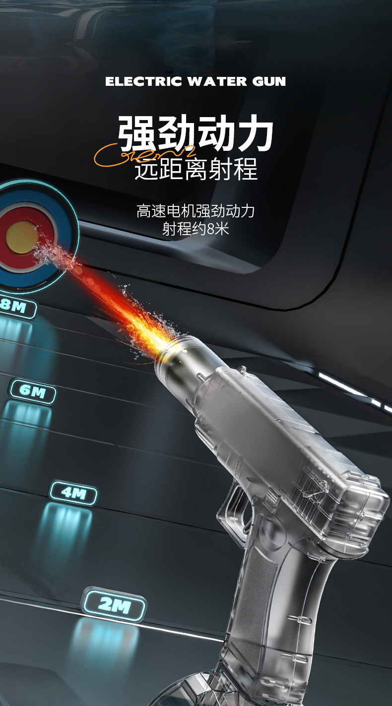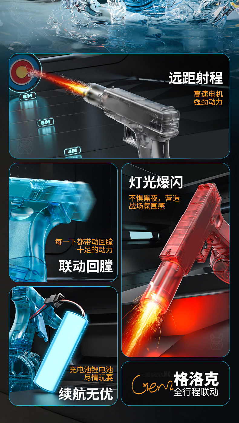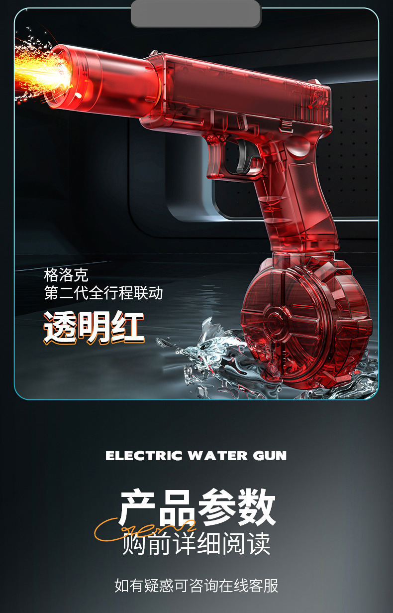 새로운 Glock 블랙 기술 전기 물총 장난감 연속 발사 어린이 고압 물총 완전 자동 화재 쥐 물총