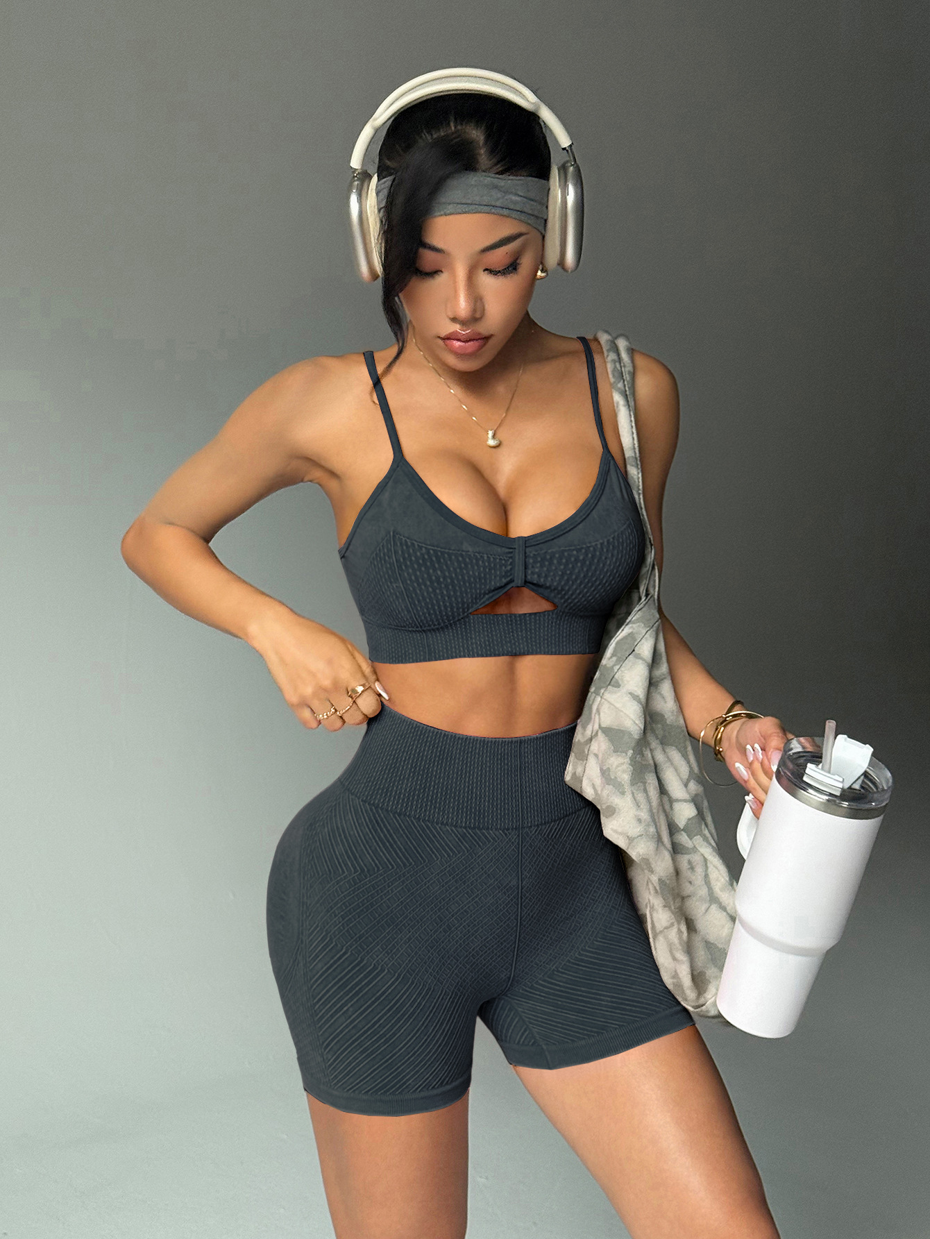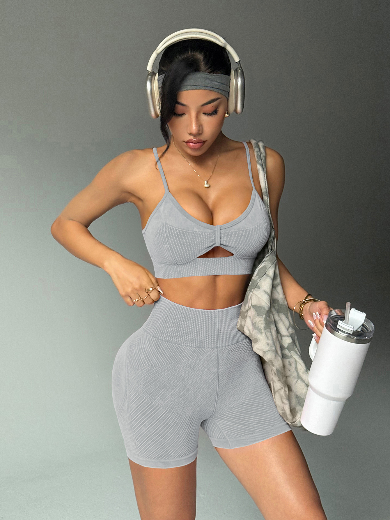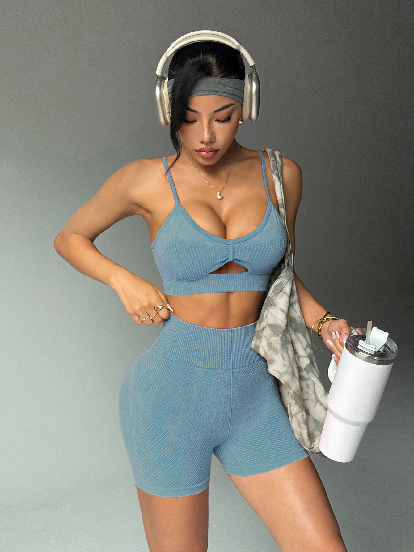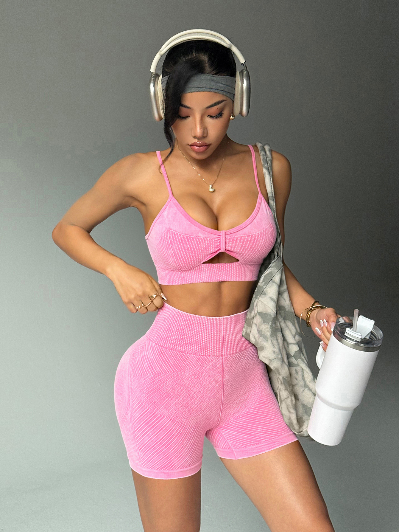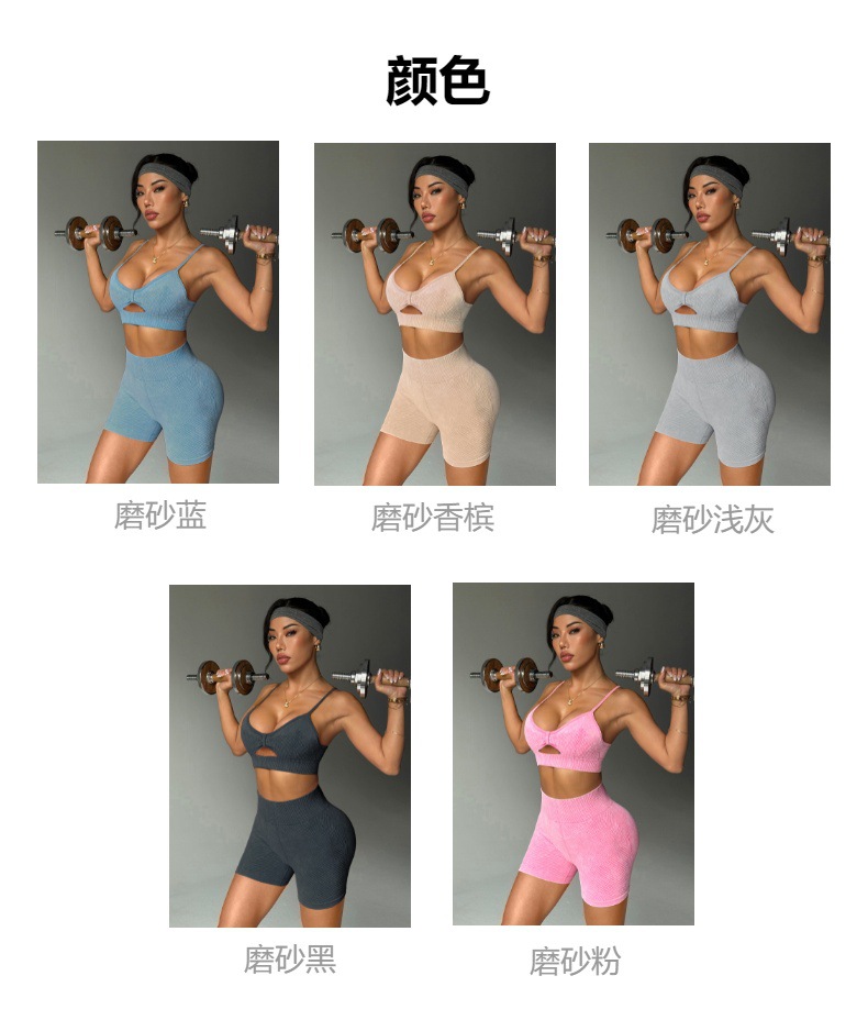 유럽과 미국의 샌드 워시 요가복 반바지 정장 여성용 트위스트 탑 브라 스포츠 피트니스웨어 하이 웨이스트 힙 리프팅 바지스토어 가기