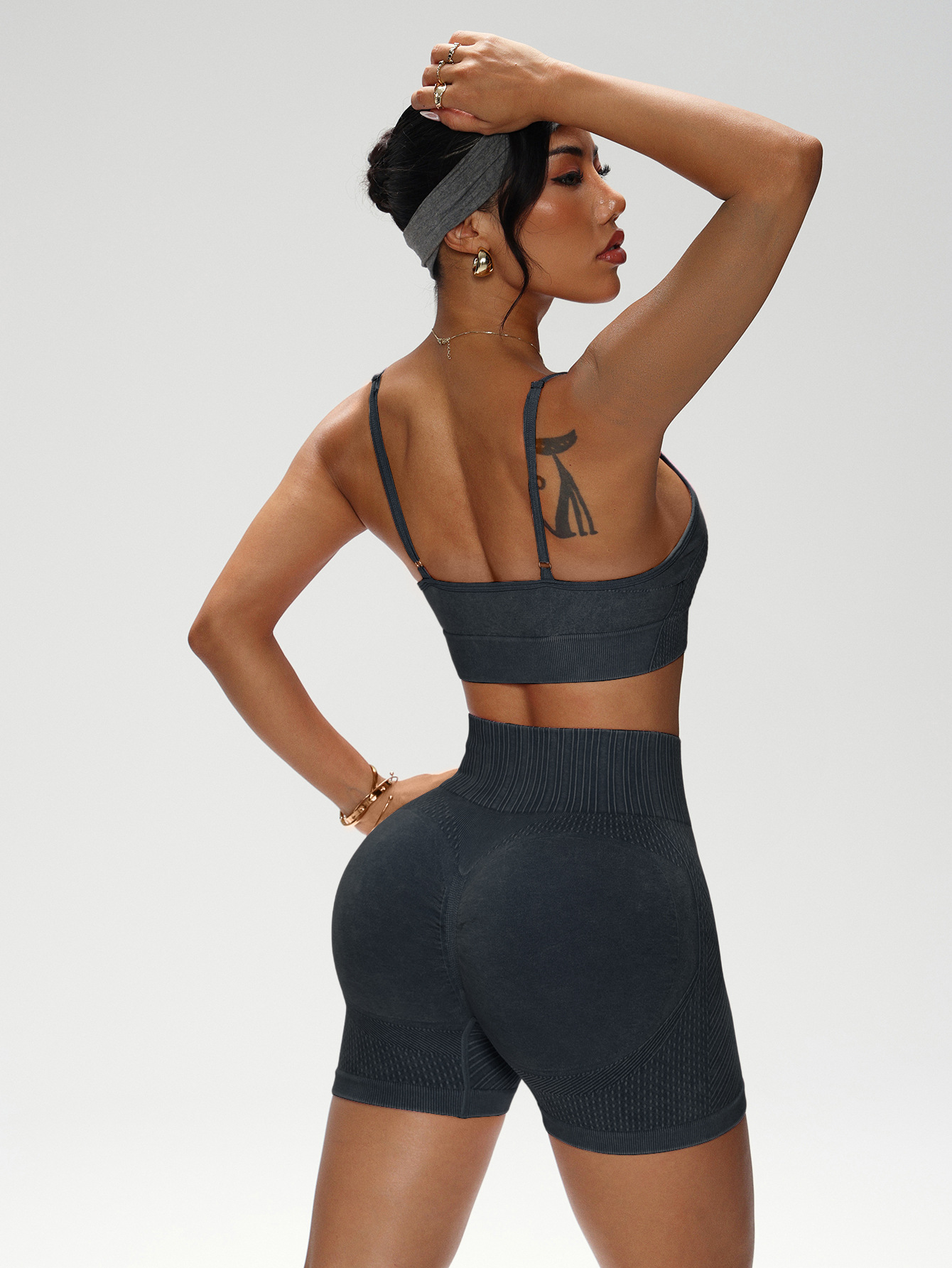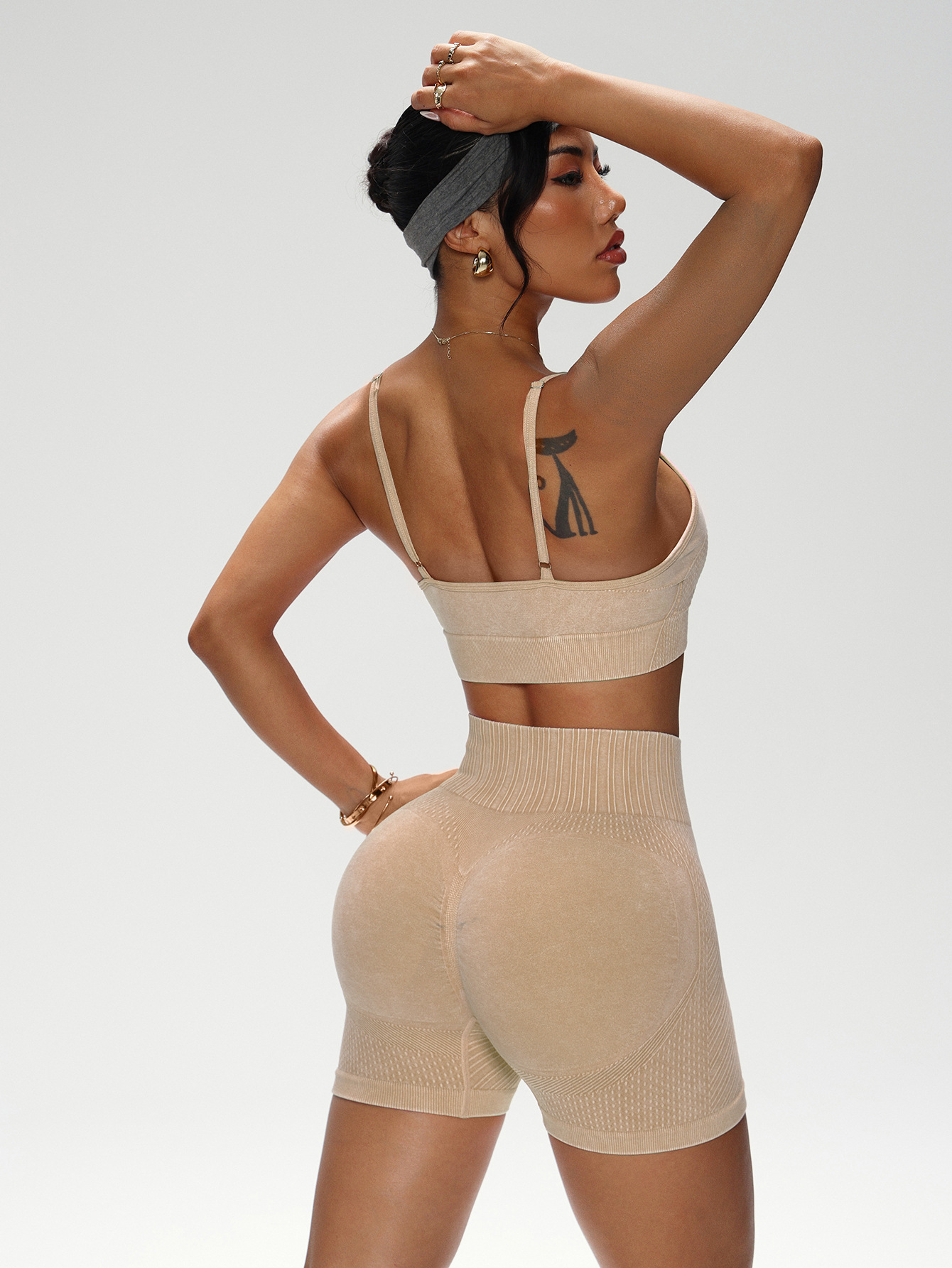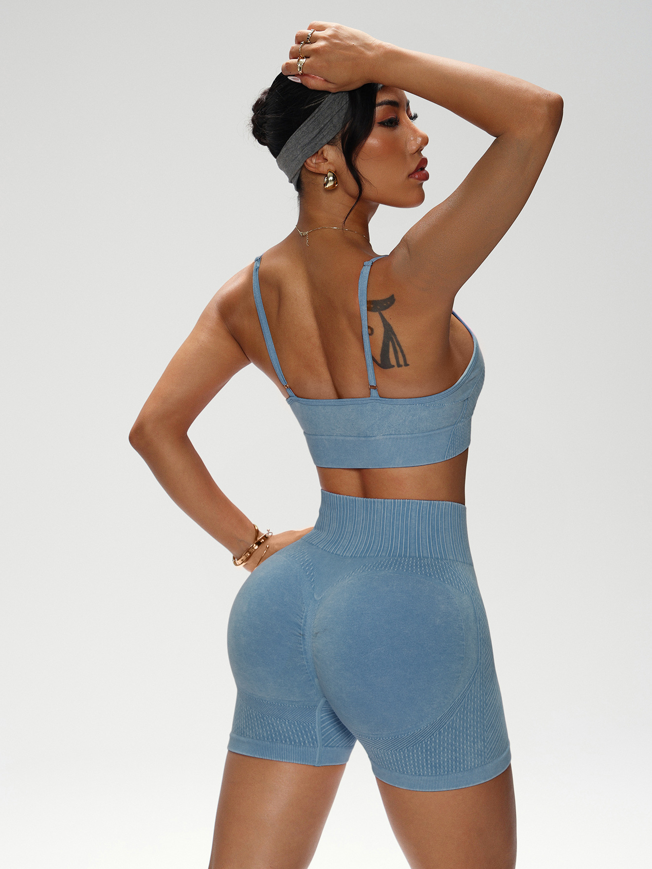 유럽과 미국의 샌드 워시 요가복 반바지 정장 여성용 트위스트 탑 브라 스포츠 피트니스웨어 하이 웨이스트 힙 리프팅 바지