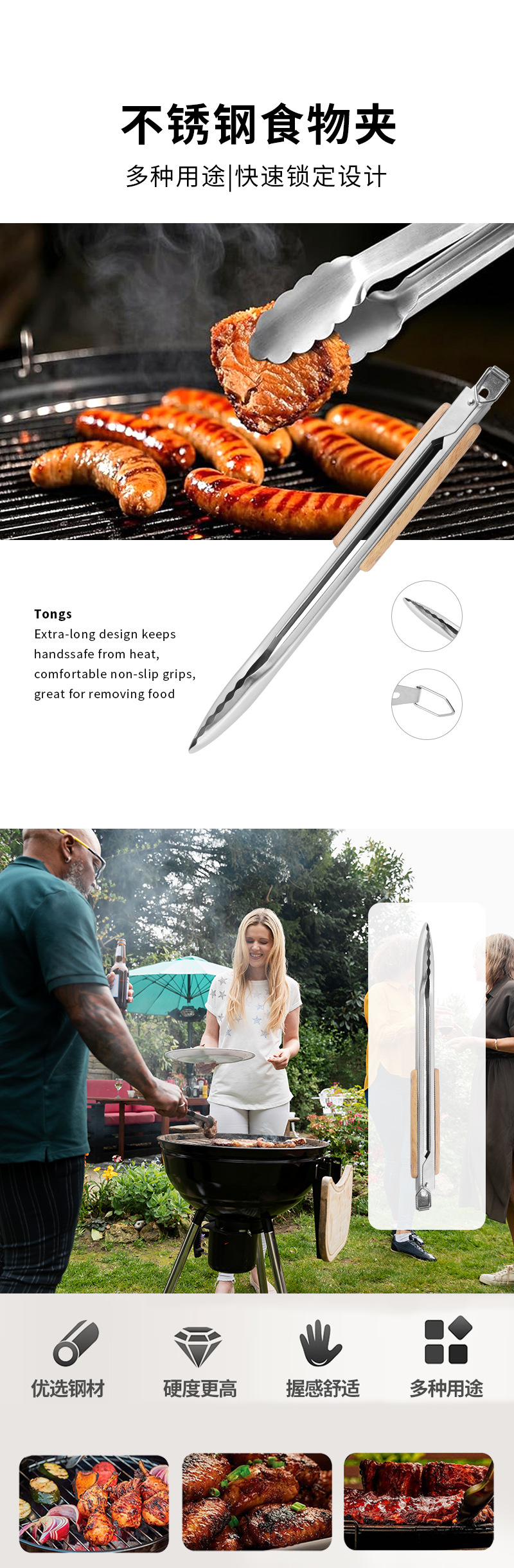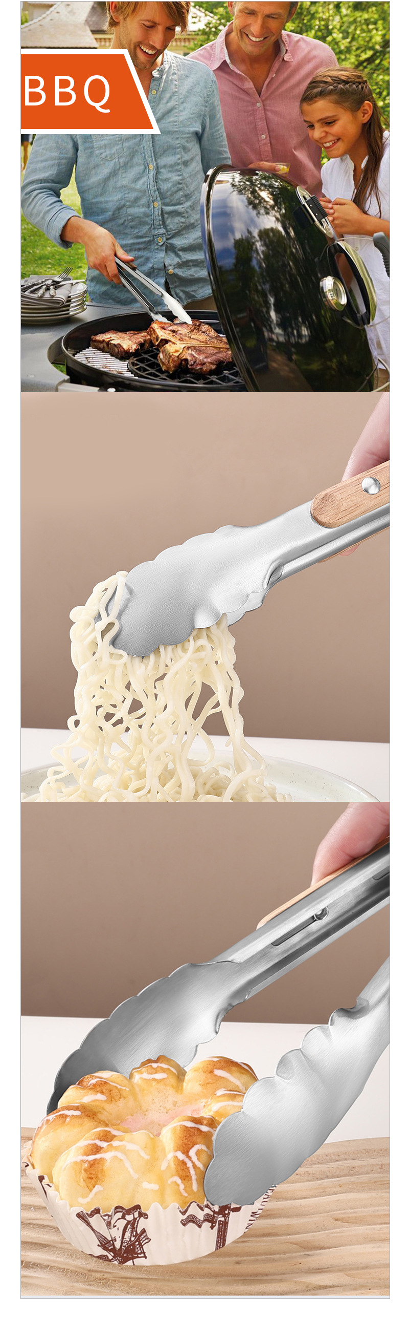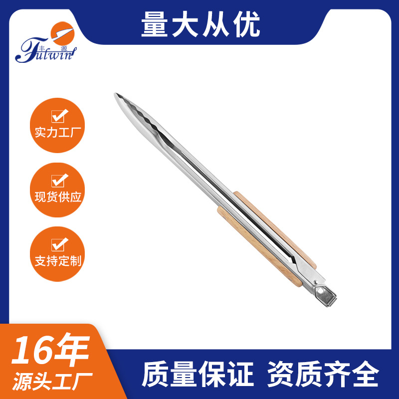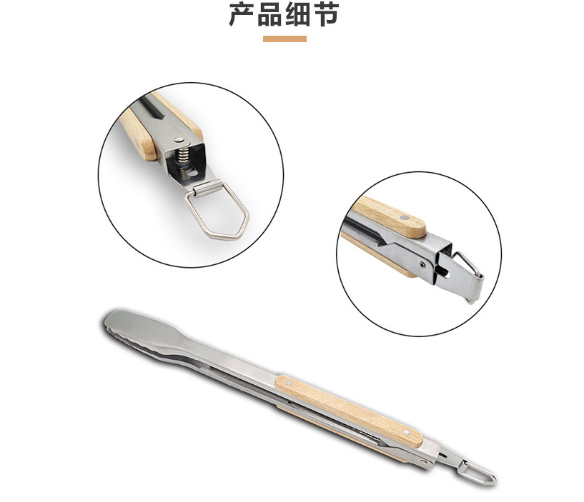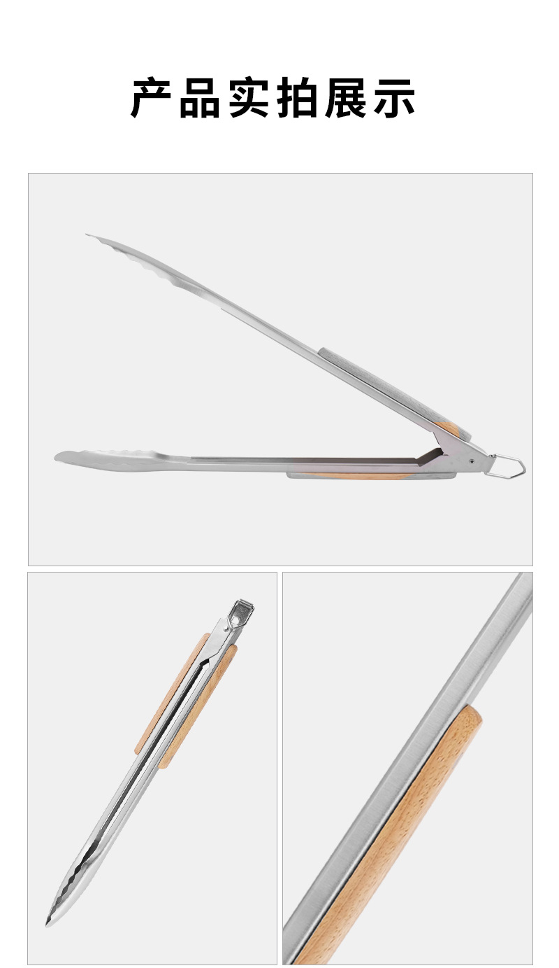 스테인레스 스틸 음식 집게 18inch 나무 손잡이 베이킹 클립 빵 집게 두꺼운 고온 방지 바베큐 야외 주방 요리 도구스토어 가기