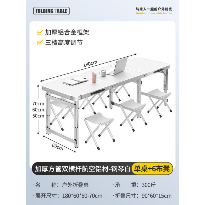 • [두꺼운 사각 튜브 이중 크로스바 항공 알루미늄] 180cm 피아노 화이트 + 천 스툴 6개 설치 불필요★