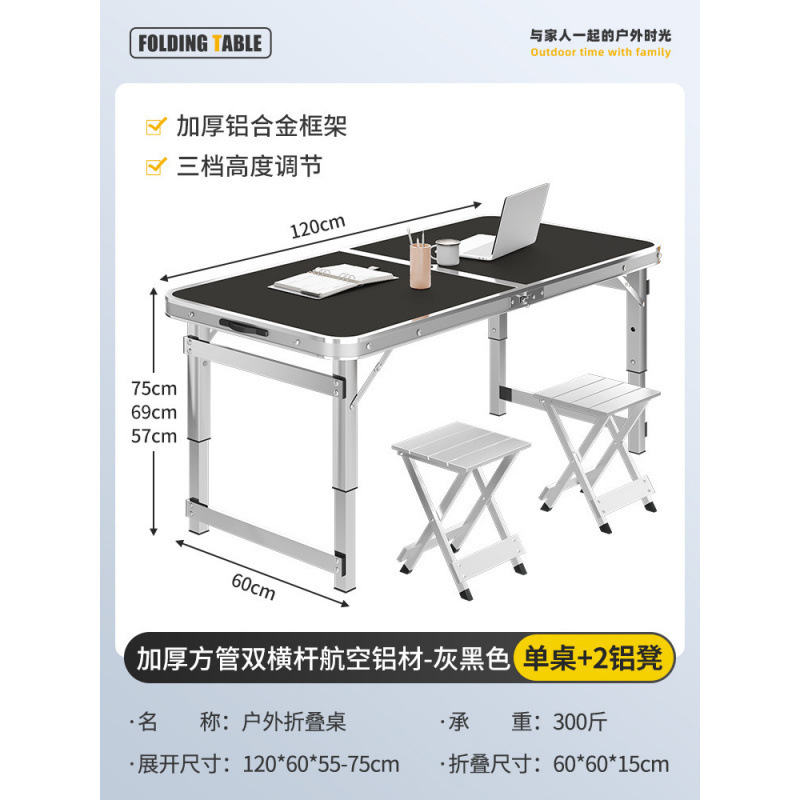 • [두꺼운 사각 튜브 이중 크로스바 항공 알루미늄] 120cm 회색 검정색 + 알루미늄 스툴 2개 설치 불필요★