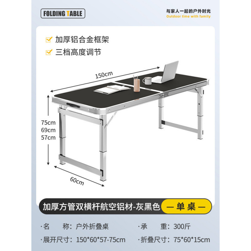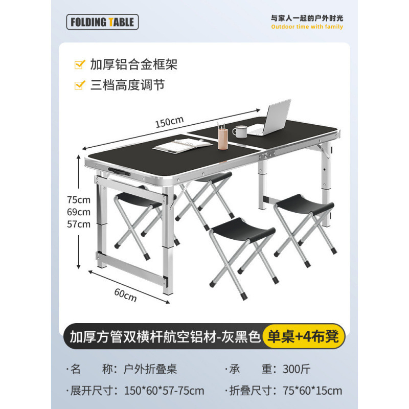 • [두꺼운 사각형 튜브 이중 크로스바 항공 알루미늄] 150cm 회색 검정색 + 알루미늄 스툴 4개 설치 필요 없음★
