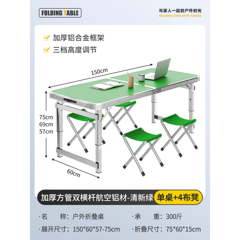 • [두꺼운 사각 튜브 이중 크로스바 항공 알루미늄] 150cm 신록 + 알루미늄 스툴 4개 설치 불필요★