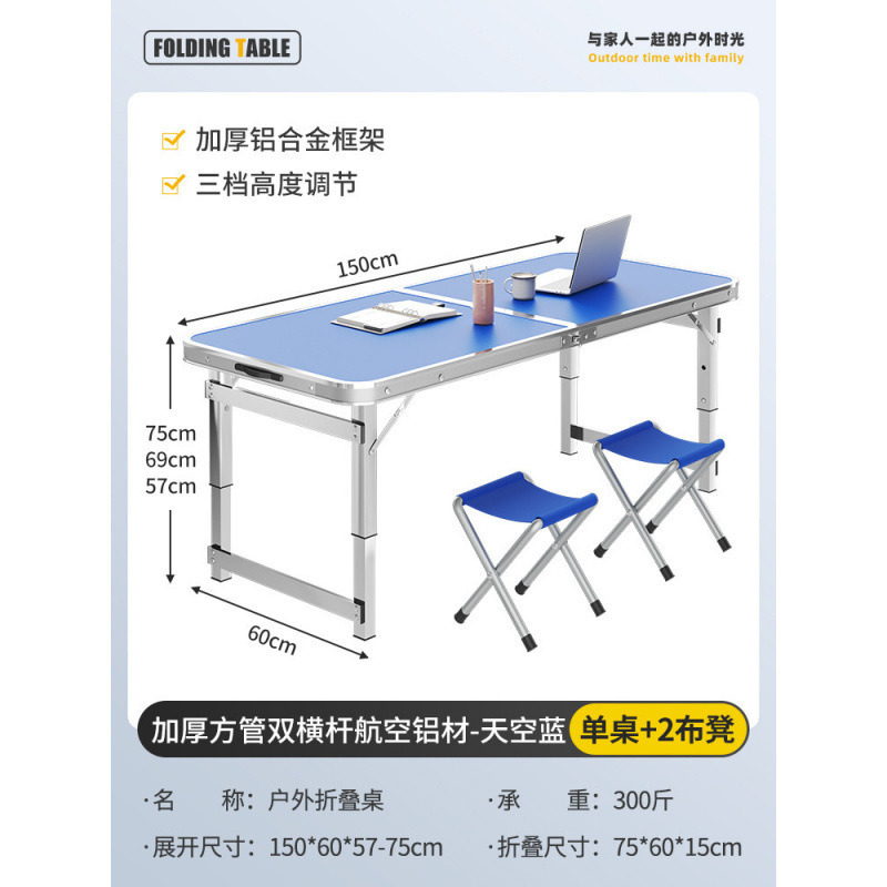 • [두꺼운 사각 튜브 이중 크로스바 항공 알루미늄] 150cm 하늘색 + 알루미늄 스툴 4개 설치 불필요★