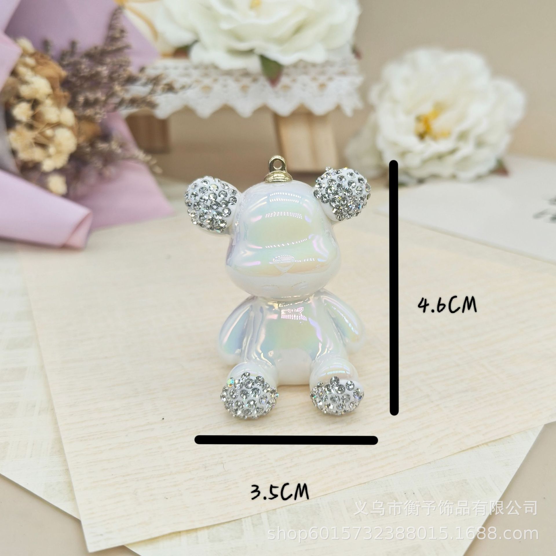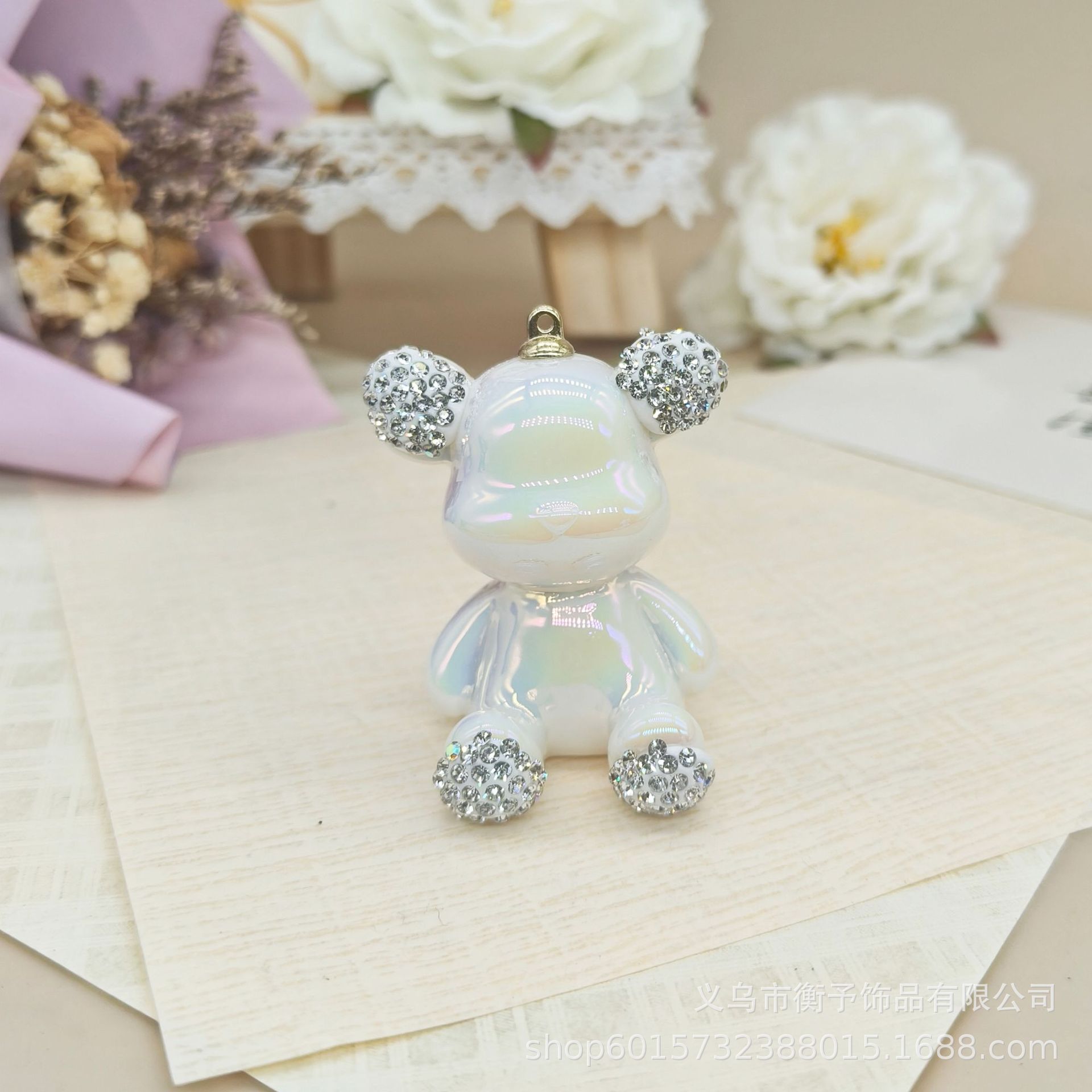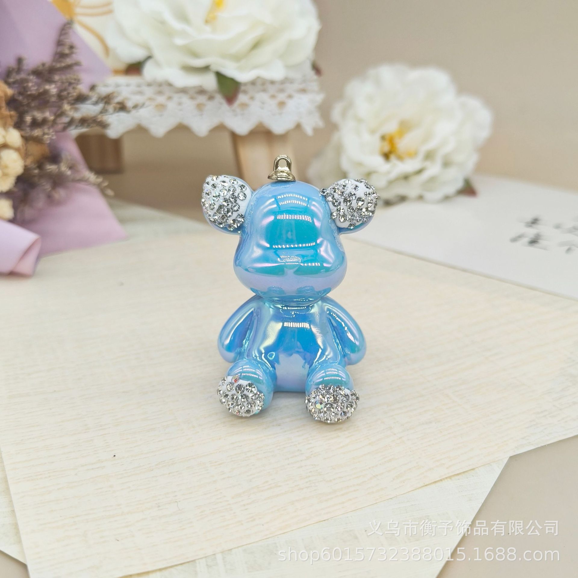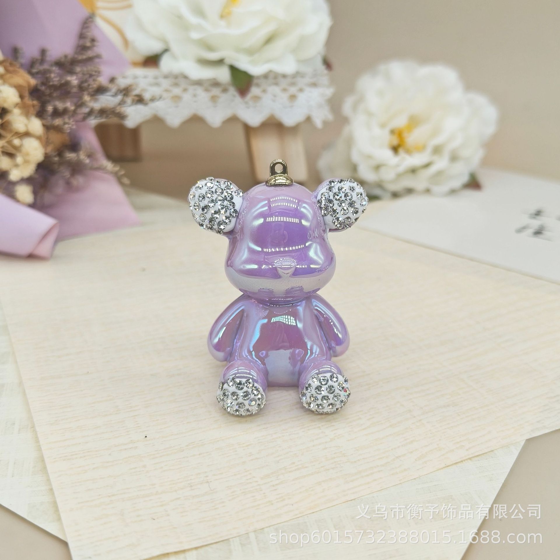 크리 에이 티브 전기 도금 도트 다이아몬드 앉아 곰 키 체인 펜던트 귀여운 가방 선물 펜던트 만화 입체 장식품 도매