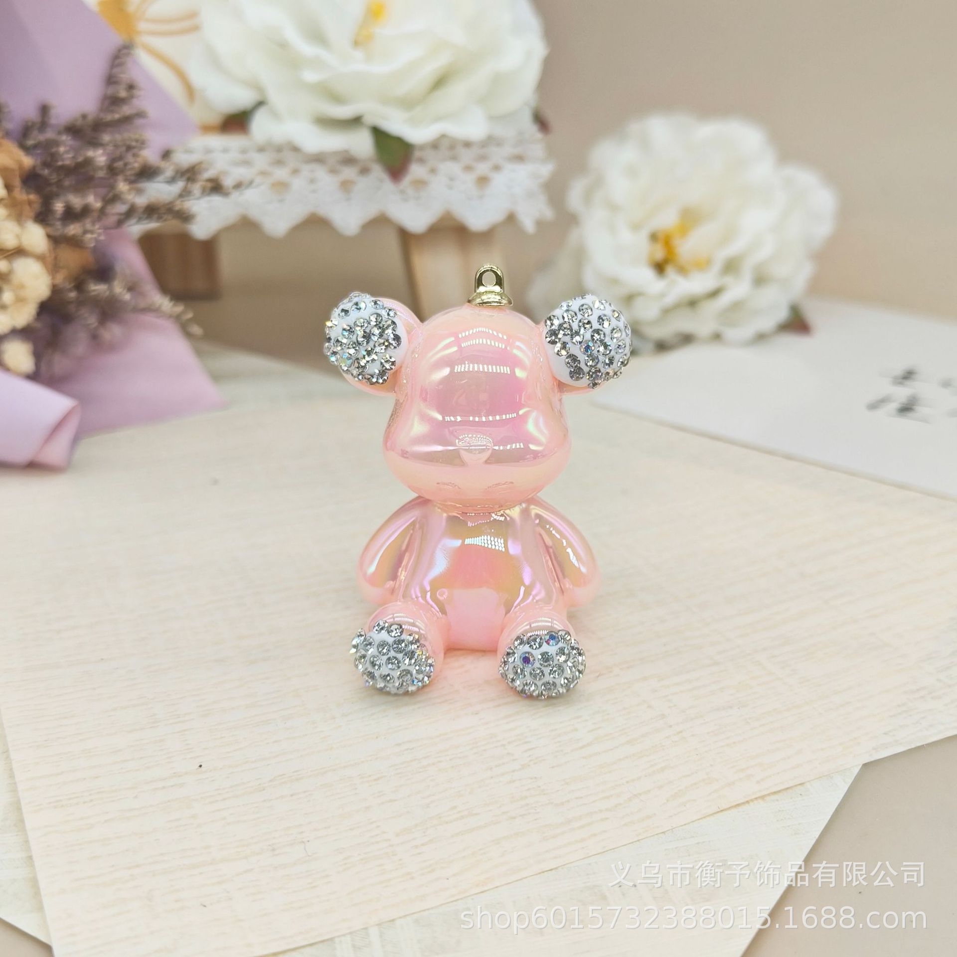 • 핑크 전기 도금 도트 다이아몬드 앉아 곰