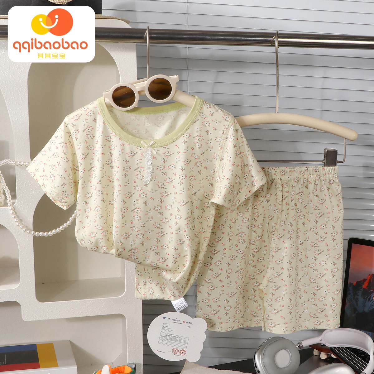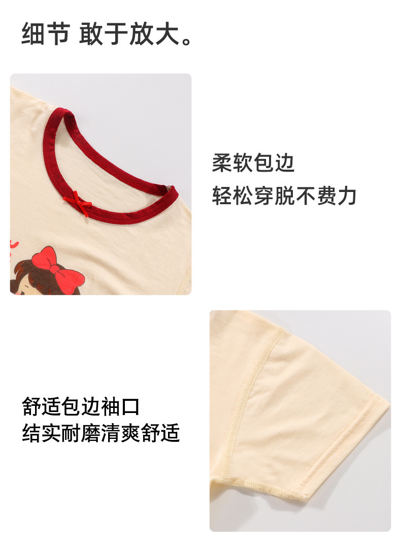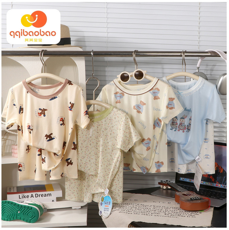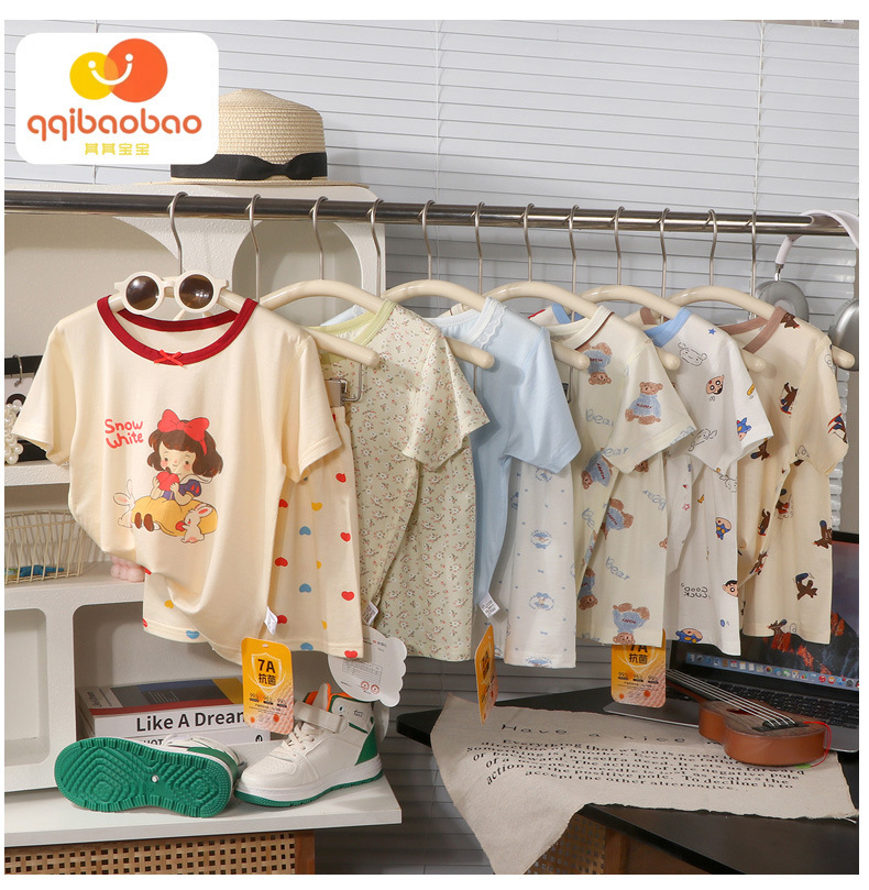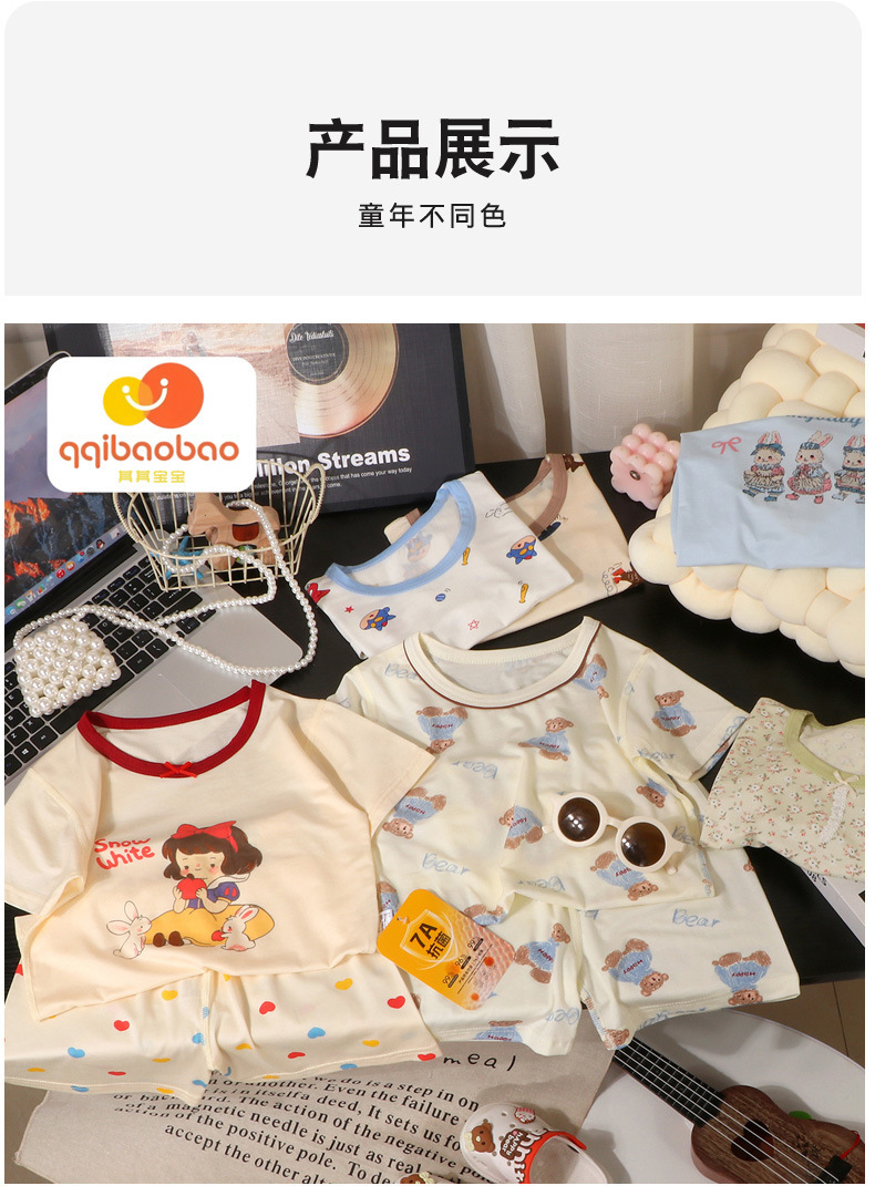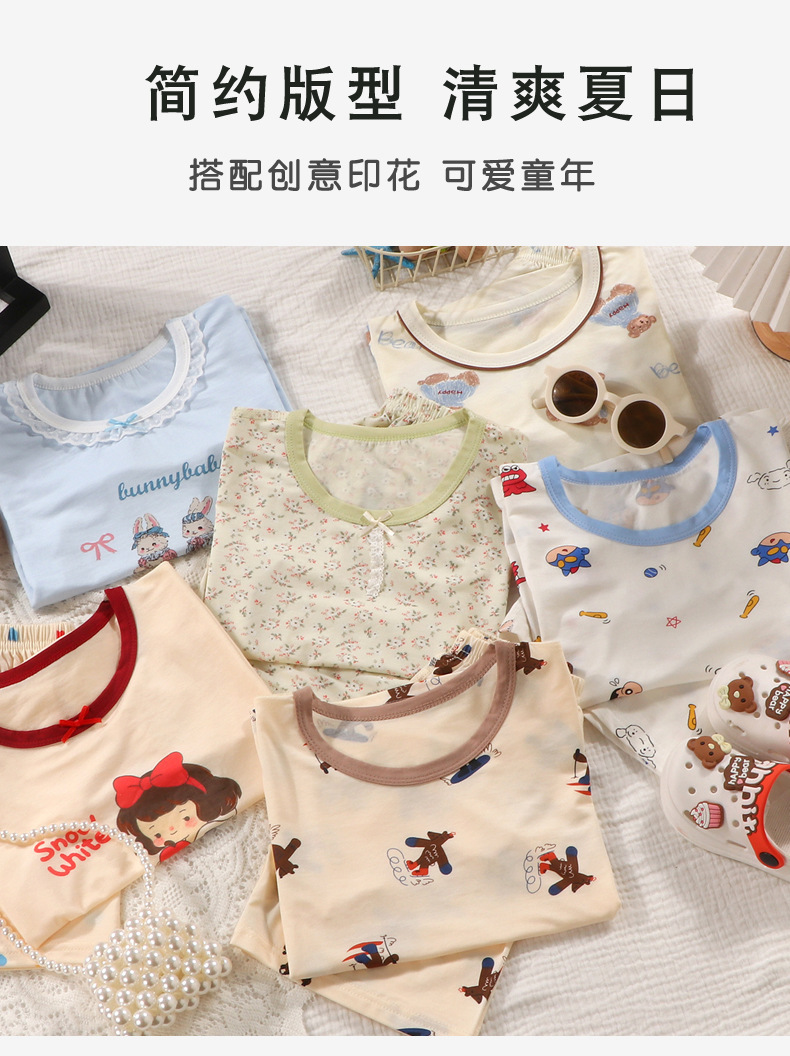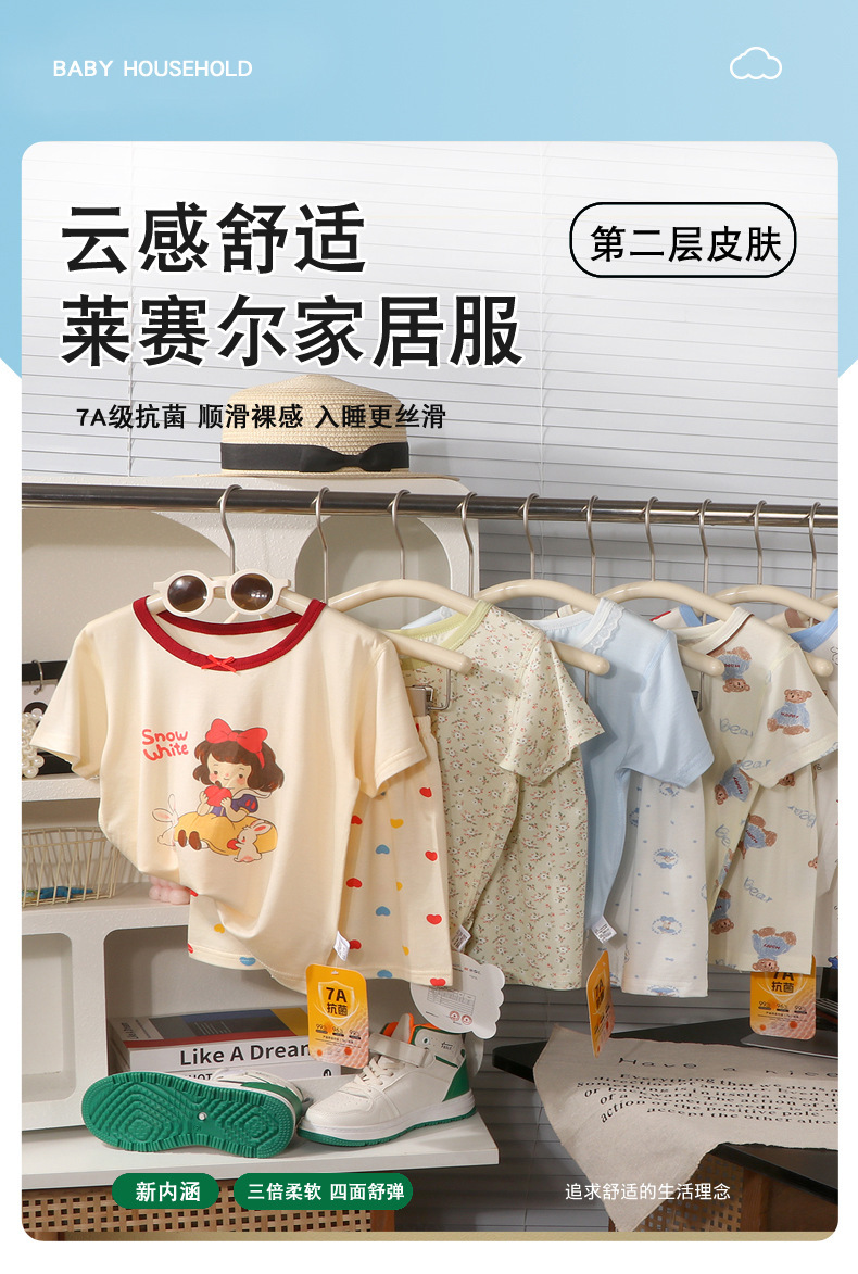 소년과 소녀 여름 얇은 잠옷 아기 리오셀 반팔 반바지 정장 소녀와 어린이 만화 에어컨 옷스토어 가기