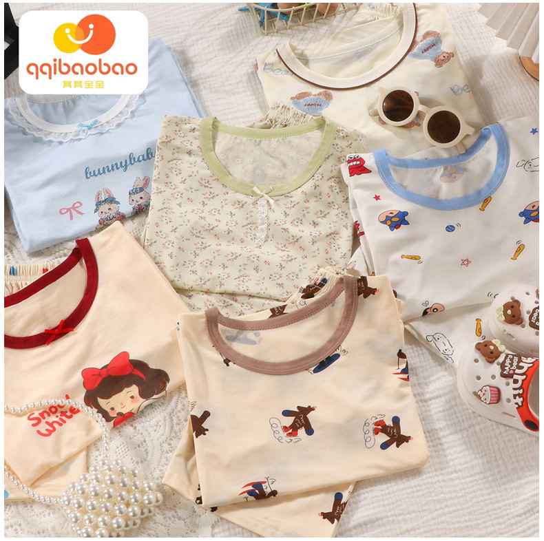 소년과 소녀 여름 얇은 잠옷 아기 리오셀 반팔 반바지 정장 소녀와 어린이 만화 에어컨 옷