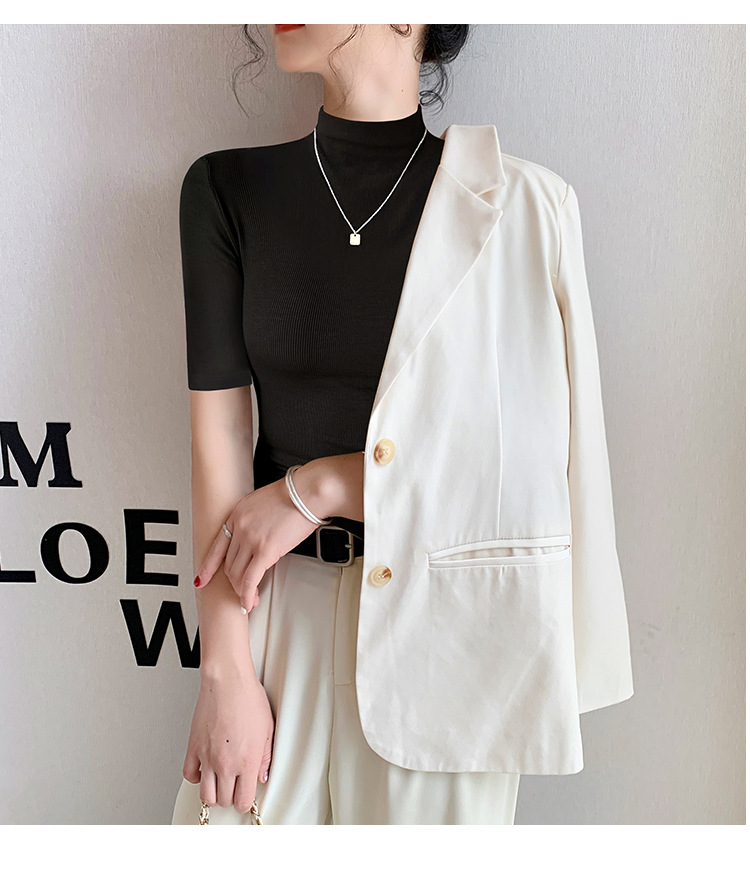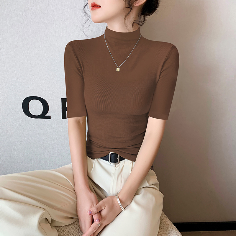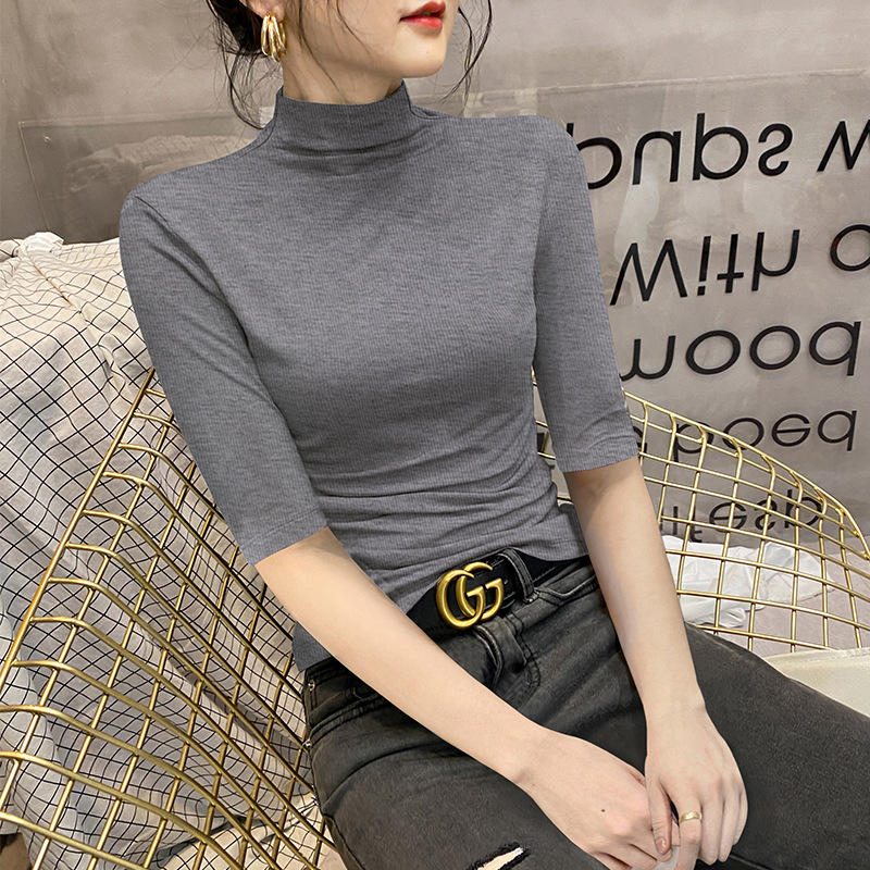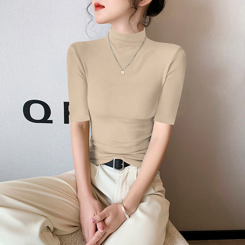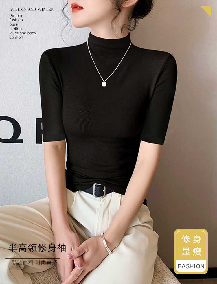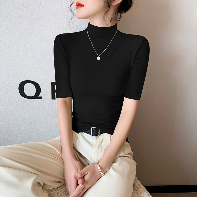 모달 반팔 티셔츠 여성용 하프 터틀넥 셔츠 2025 여름 신작 패션 다용도 블랙 슬림 탑