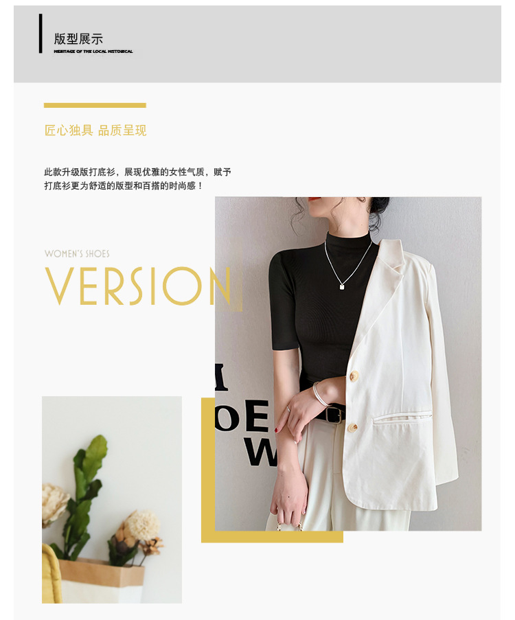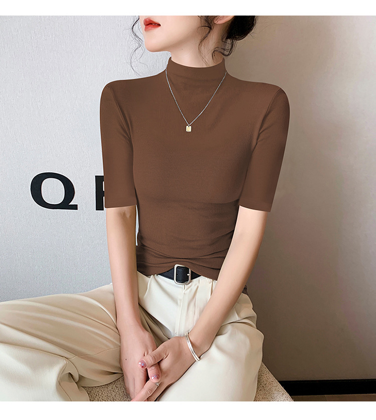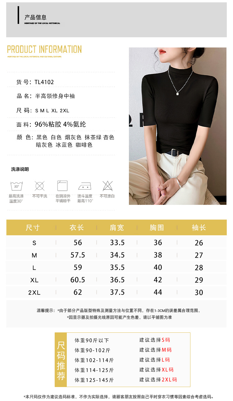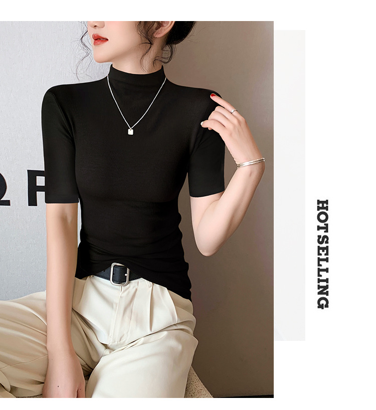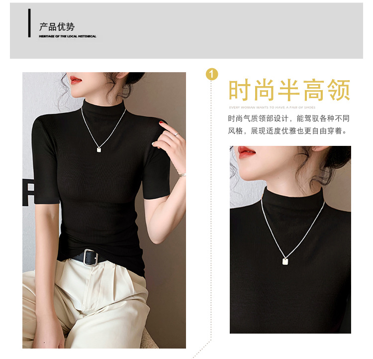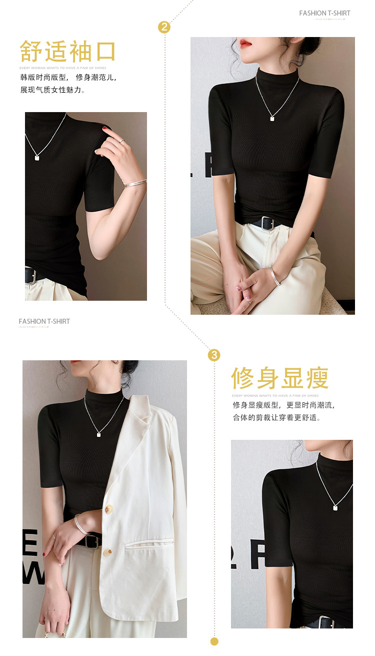 모달 반팔 티셔츠 여성용 하프 터틀넥 셔츠 2025 여름 신작 패션 다용도 블랙 슬림 탑스토어 가기
