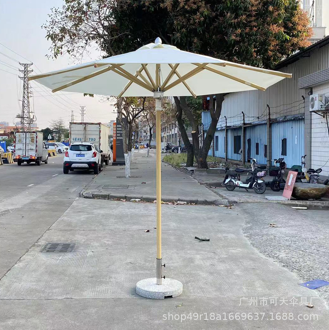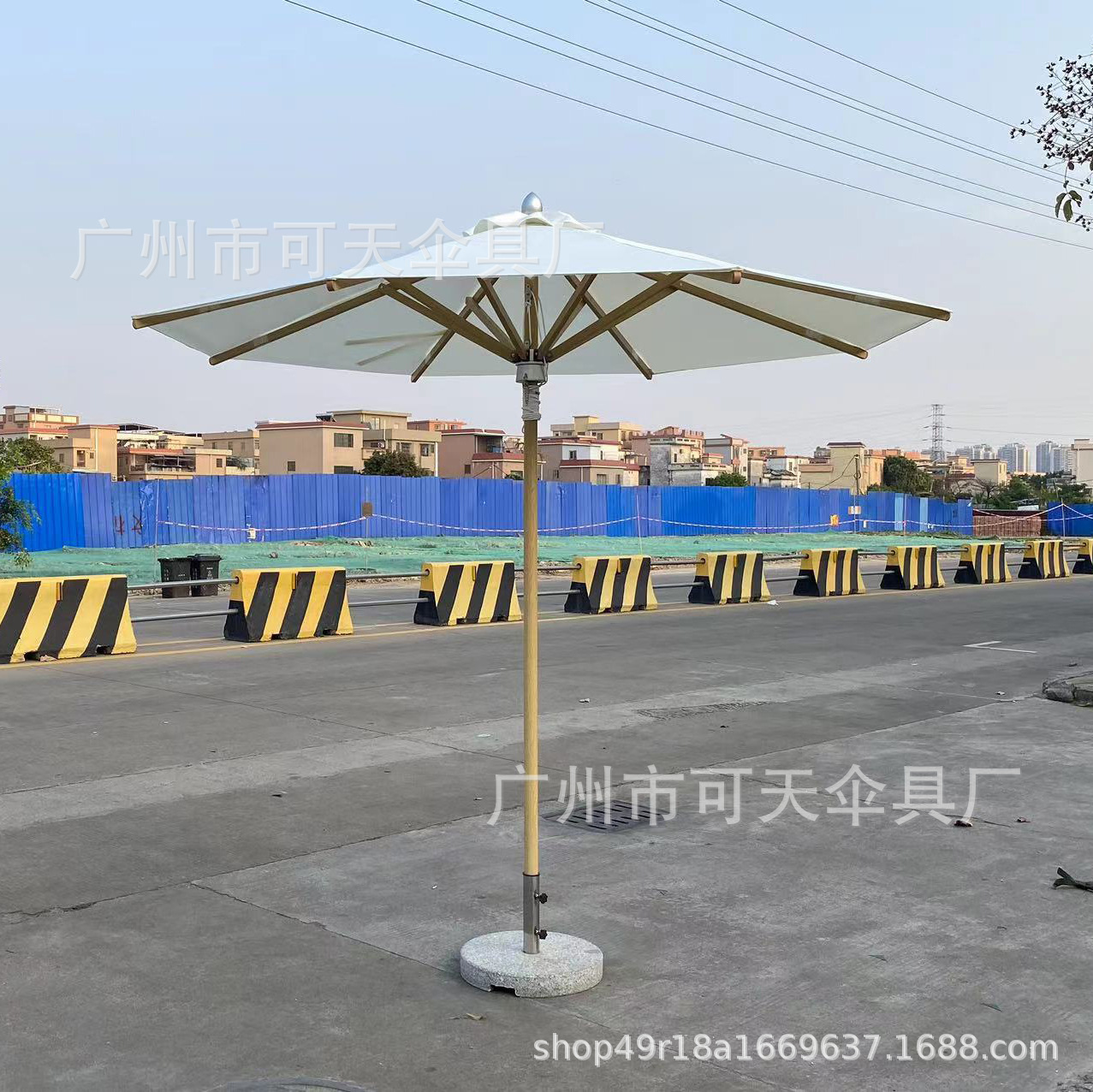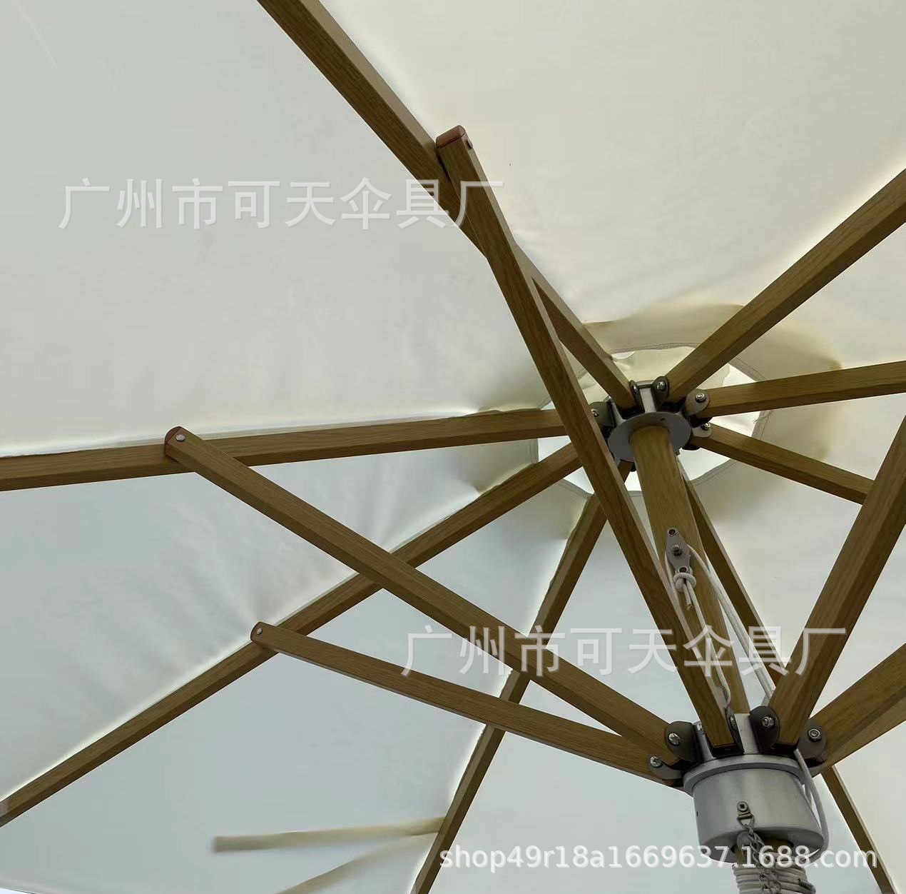 제조업체는 실용적인 48mm 알루미늄 합금 모조 나뭇결 야외 중간 기둥 우산 태양 우산 럭셔리 해변 차양을 권장합니다.스토어 가기