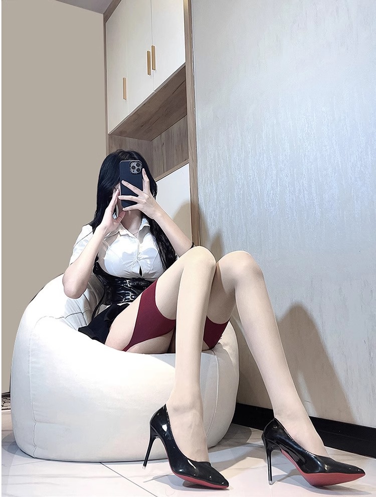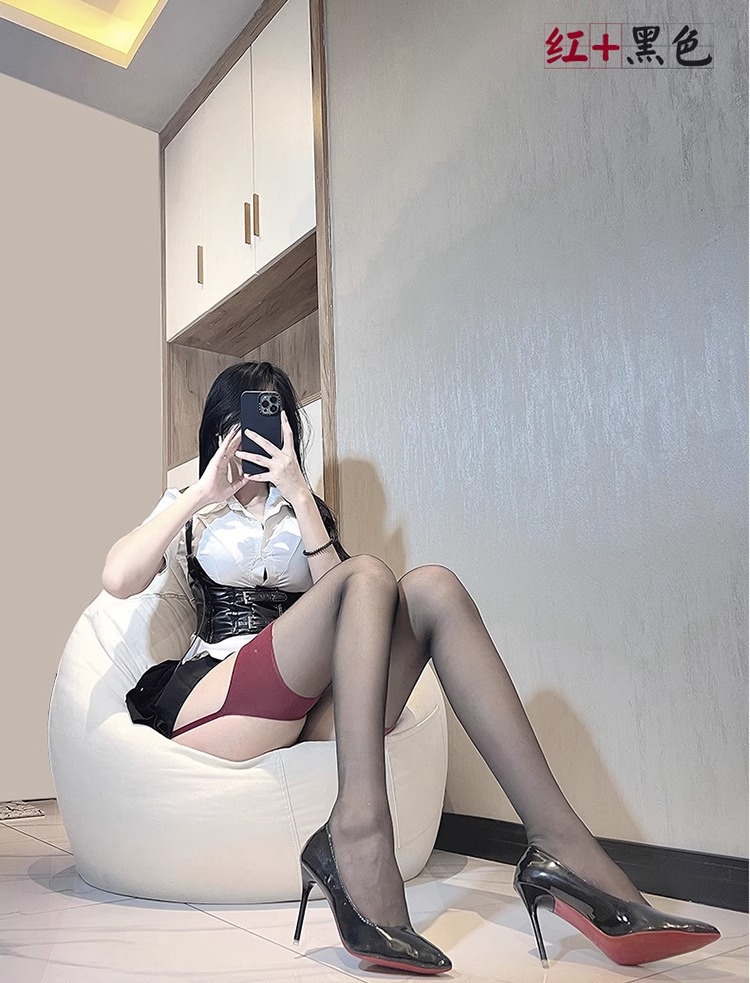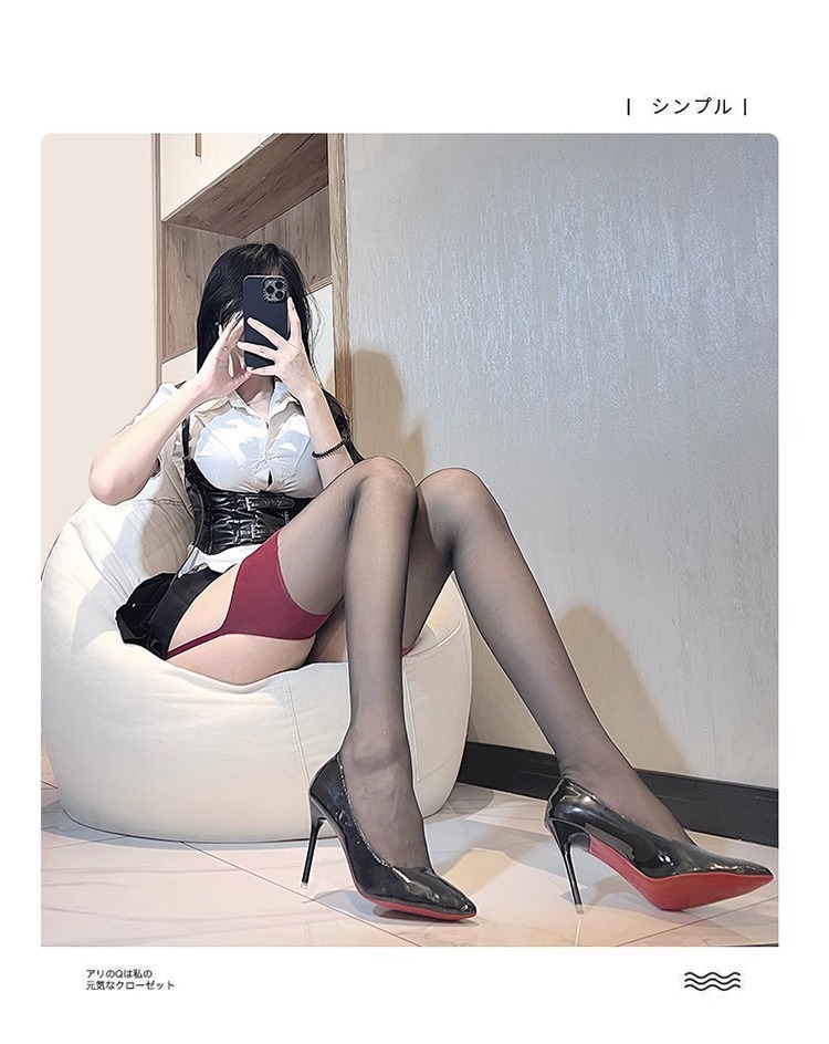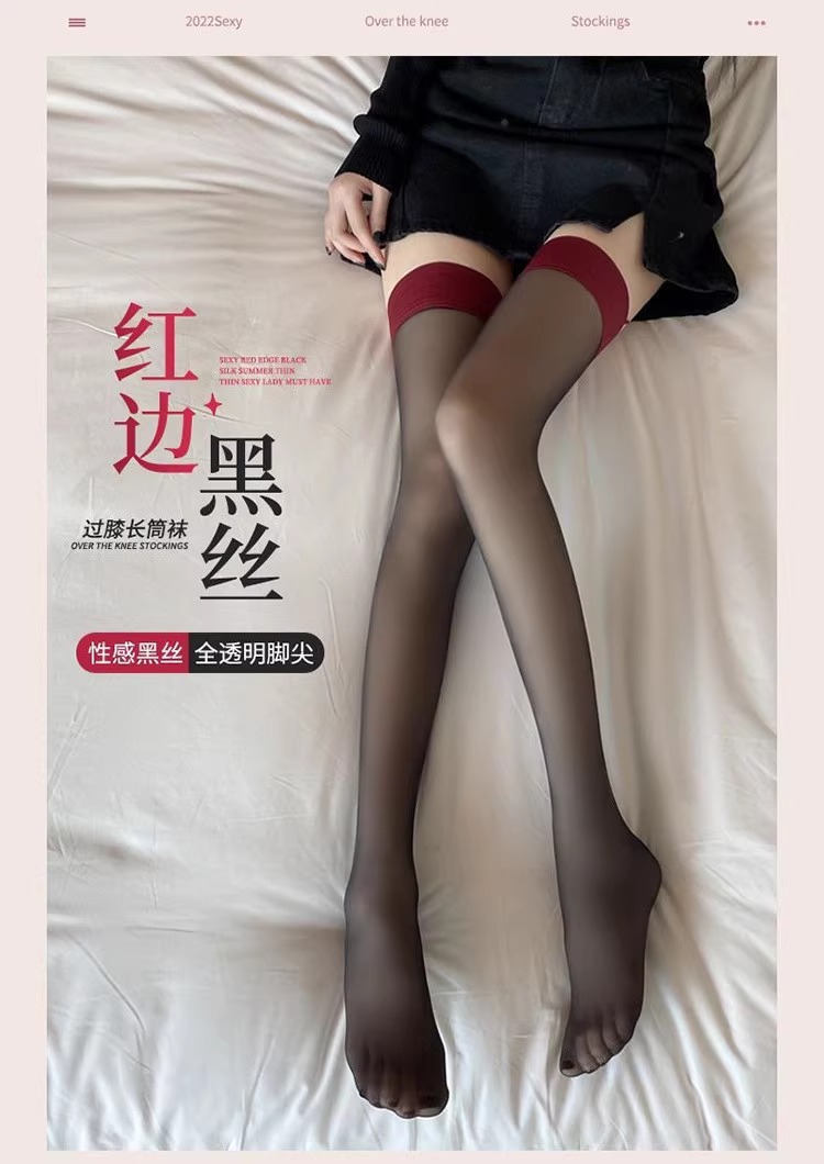 • 가터 스타킹 [빨간색 가장자리가 있는 검은색 스타킹]