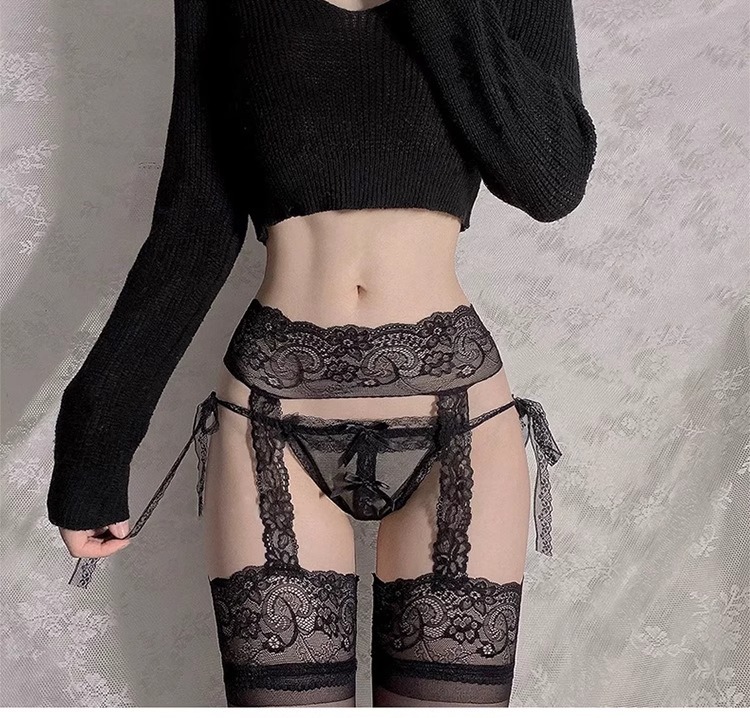 섹시한 여성용 블랙 실크 서스펜더 원피스 레이스 무릎 위 양말, 섹시한 스타킹, 아름다운 다리, 인터넷 연예인 블랙 스타킹스토어 가기
