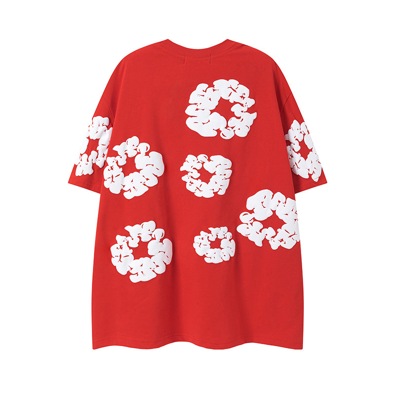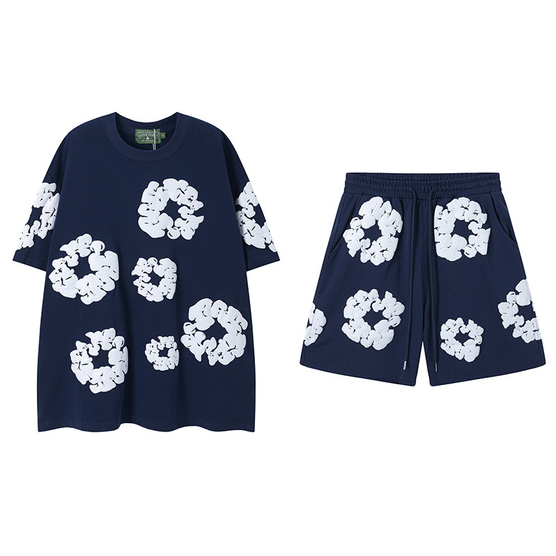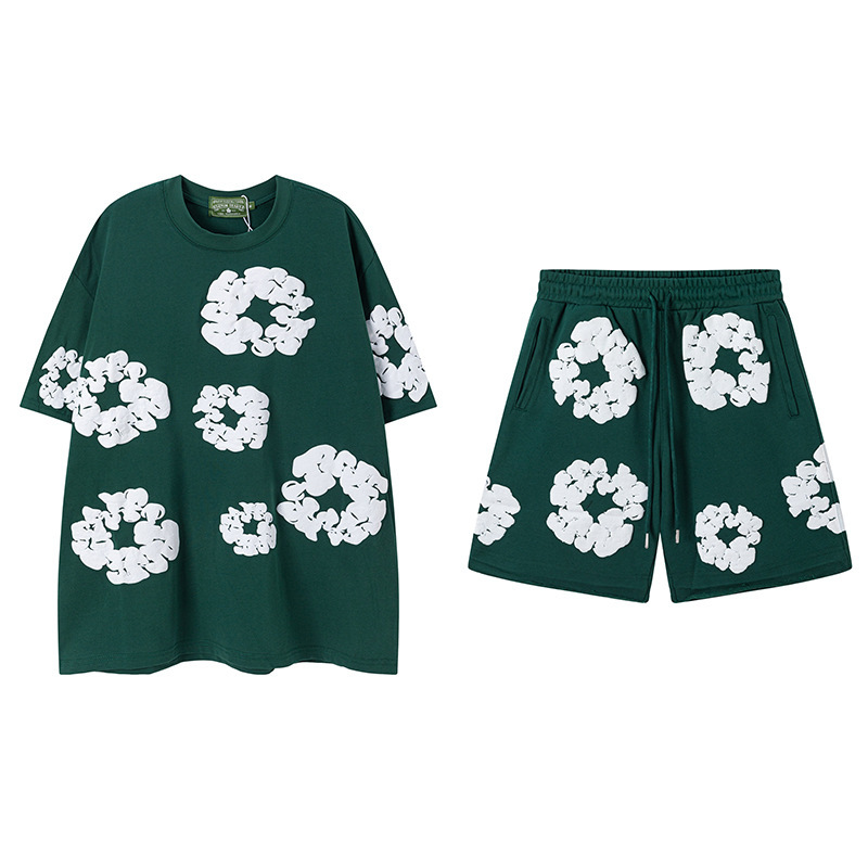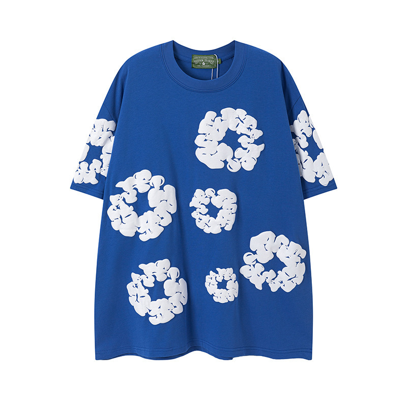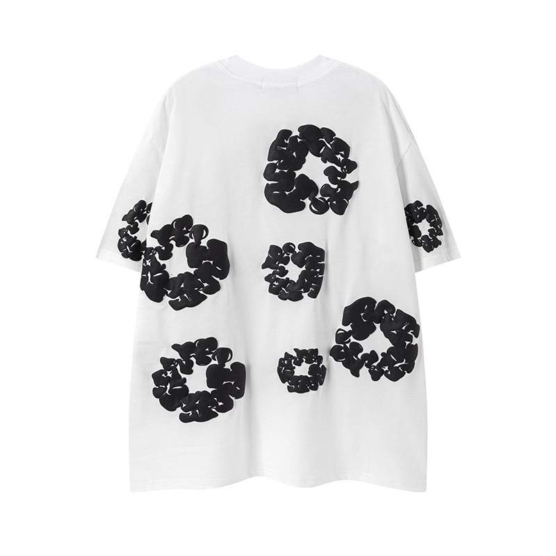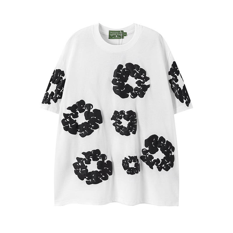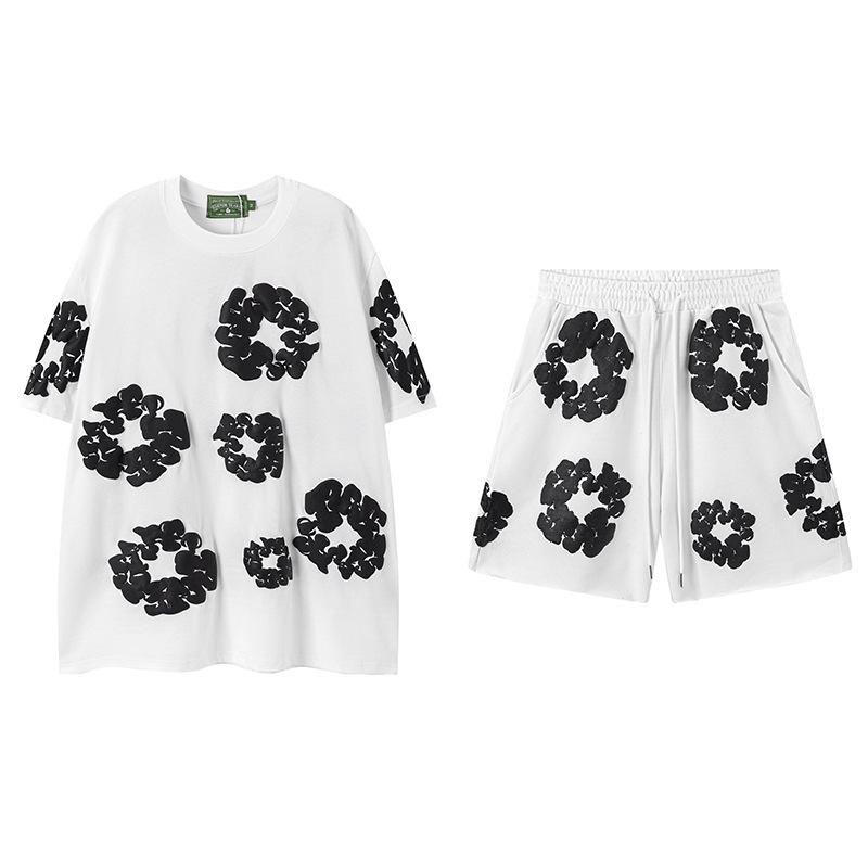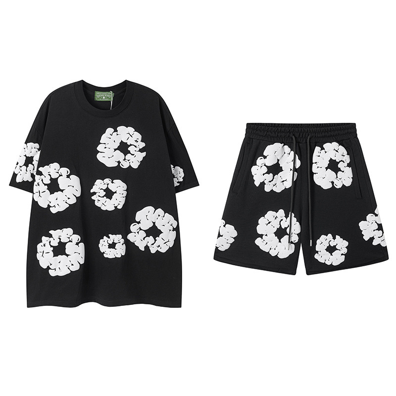 DENIM TEARS 카폭 폼 프린트 코튼 반팔 티셔츠 남성용 및 여성용 루즈 캐주얼 다용도 반바지 슈트