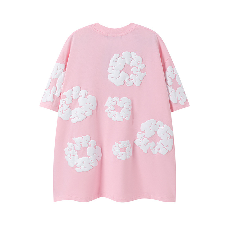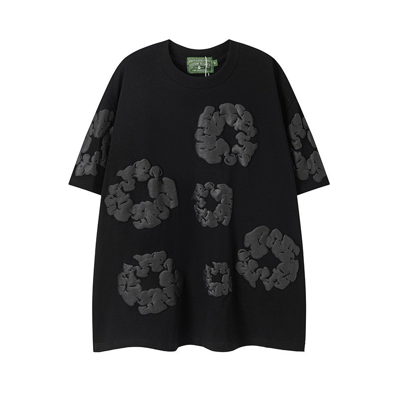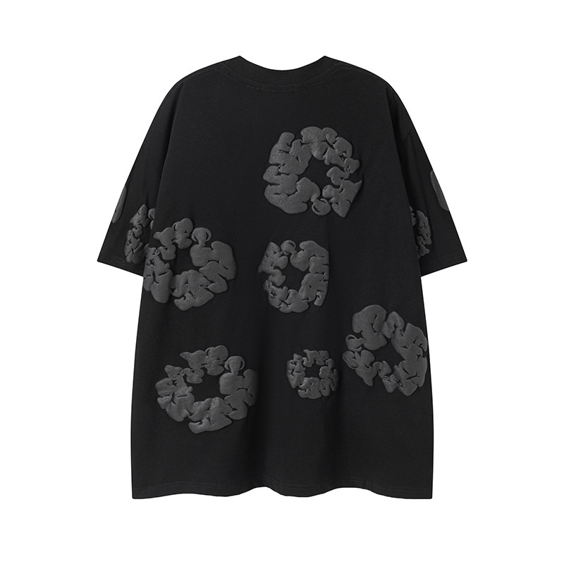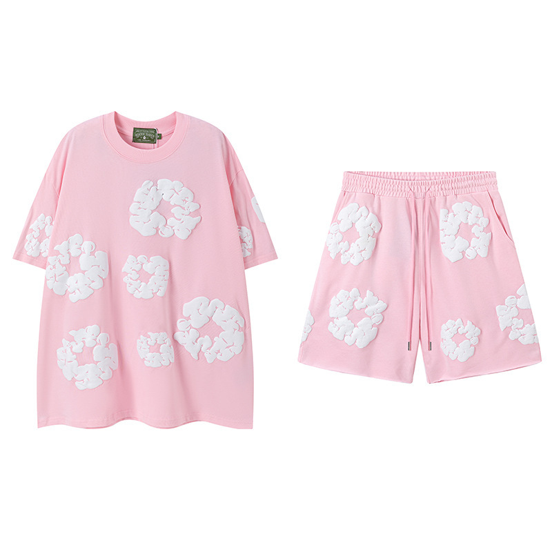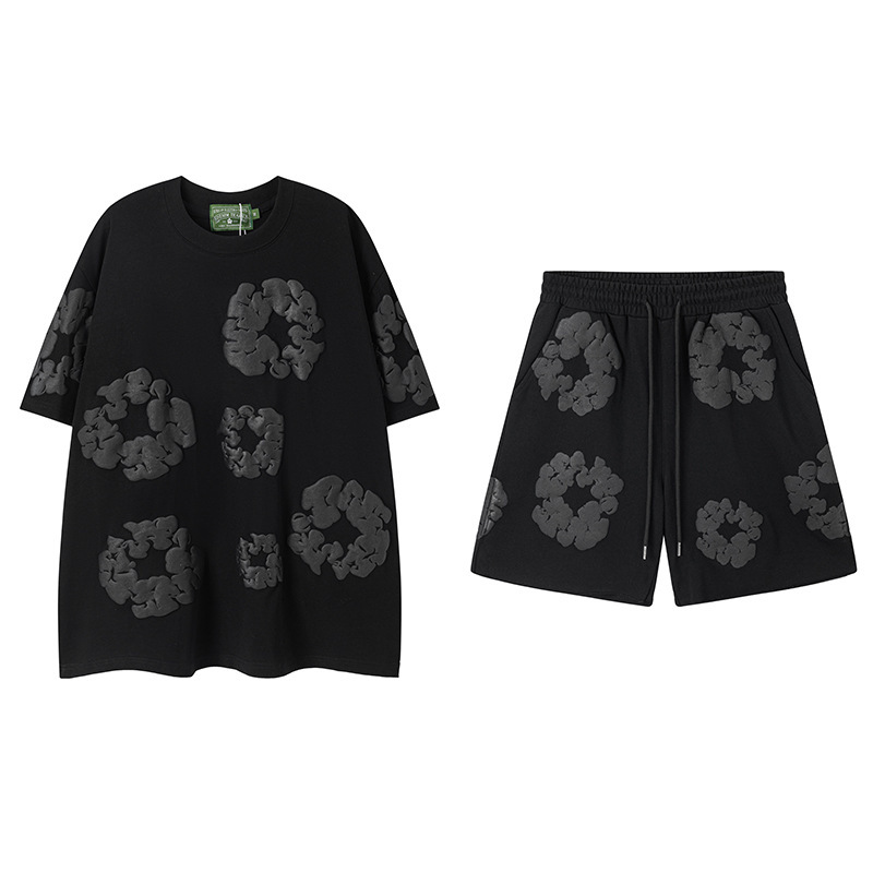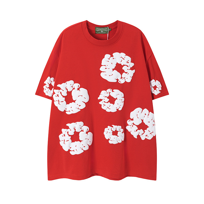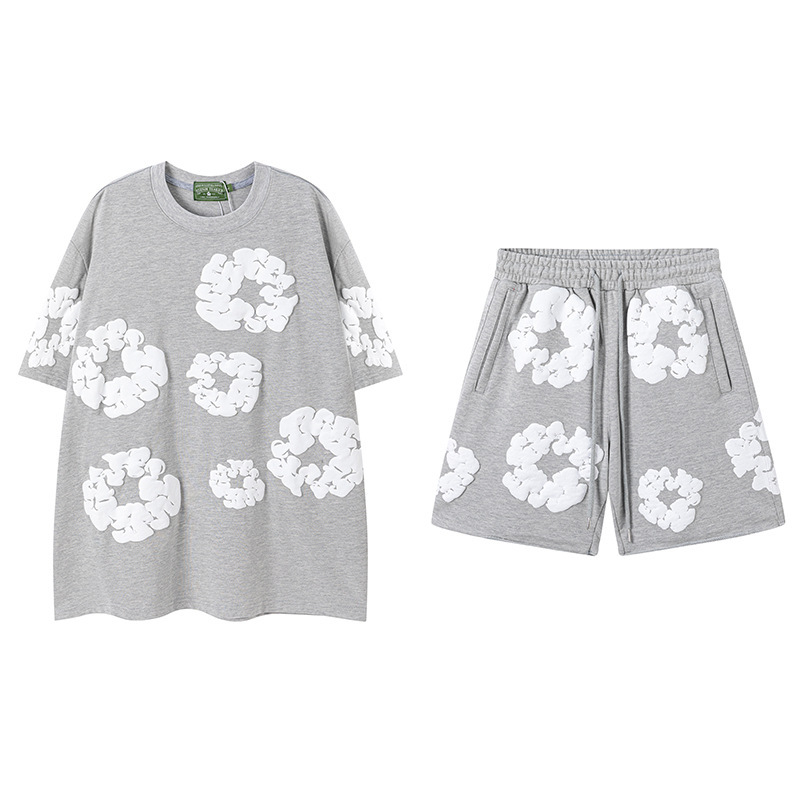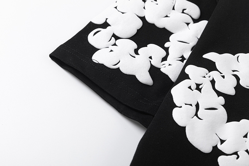DENIM TEARS 카폭 폼 프린트 코튼 반팔 티셔츠 남성용 및 여성용 루즈 캐주얼 다용도 반바지 슈트
