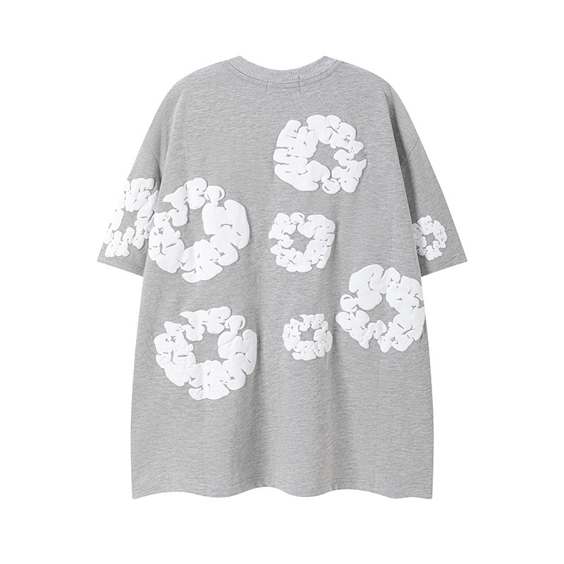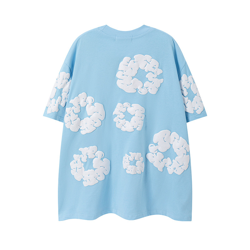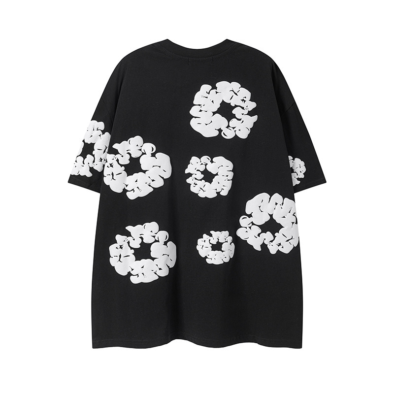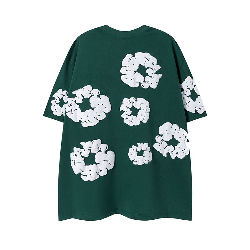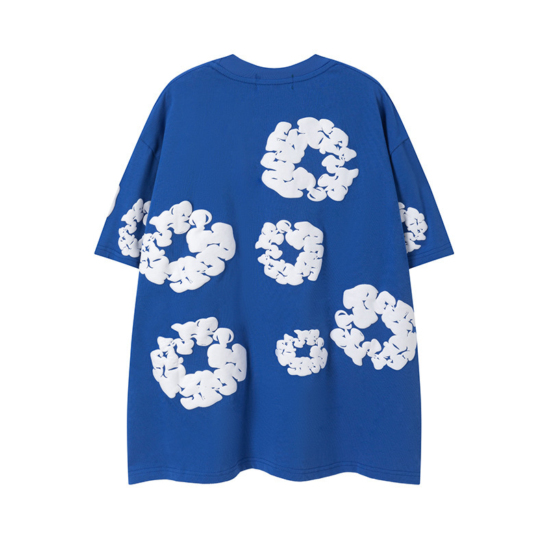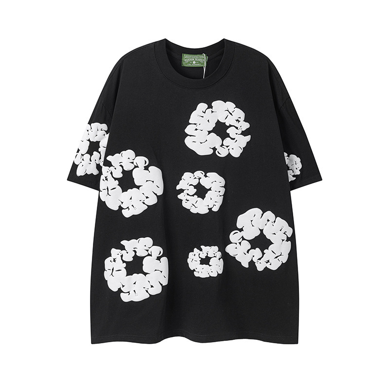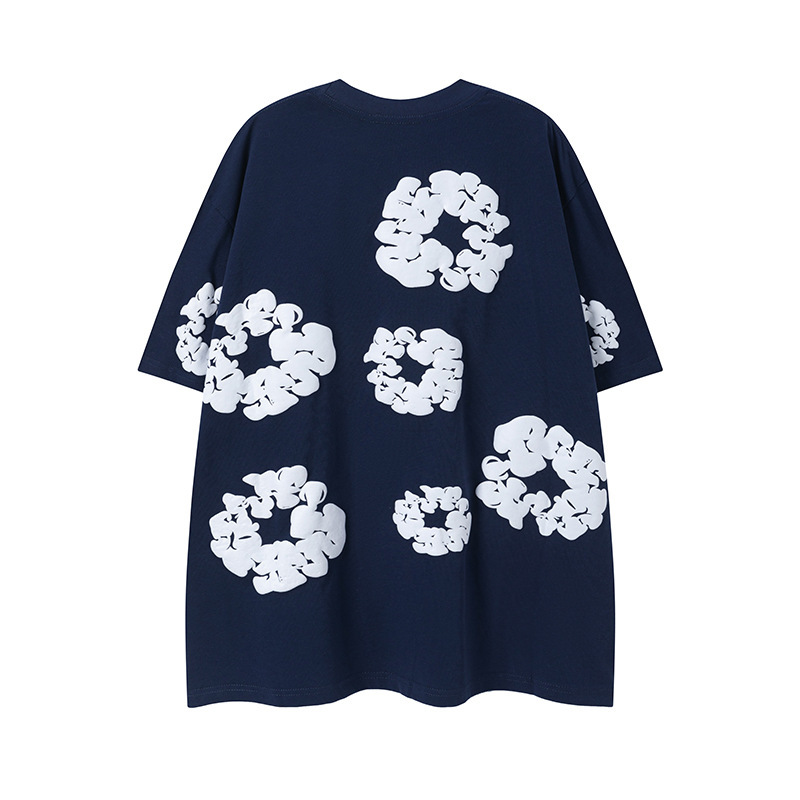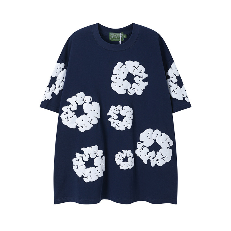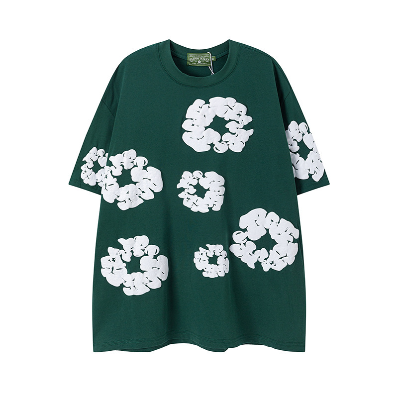 DENIM TEARS 카폭 폼 프린트 코튼 반팔 티셔츠 남성용 및 여성용 루즈 캐주얼 다용도 반바지 슈트스토어 가기