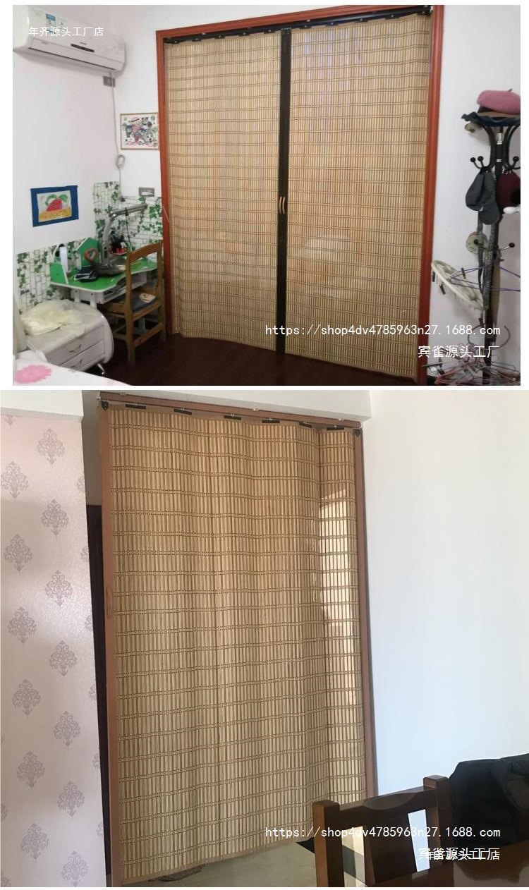 대나무 접이식 슬라이딩 도어 및 창 커튼, 칸막이 커튼, 도어 커튼, 보이지 않는 도어, 간단한 접이식 차광 천 차양