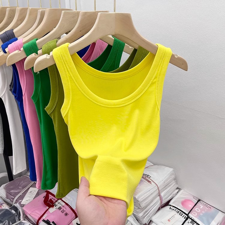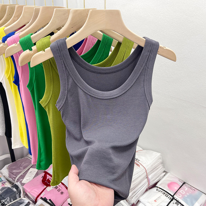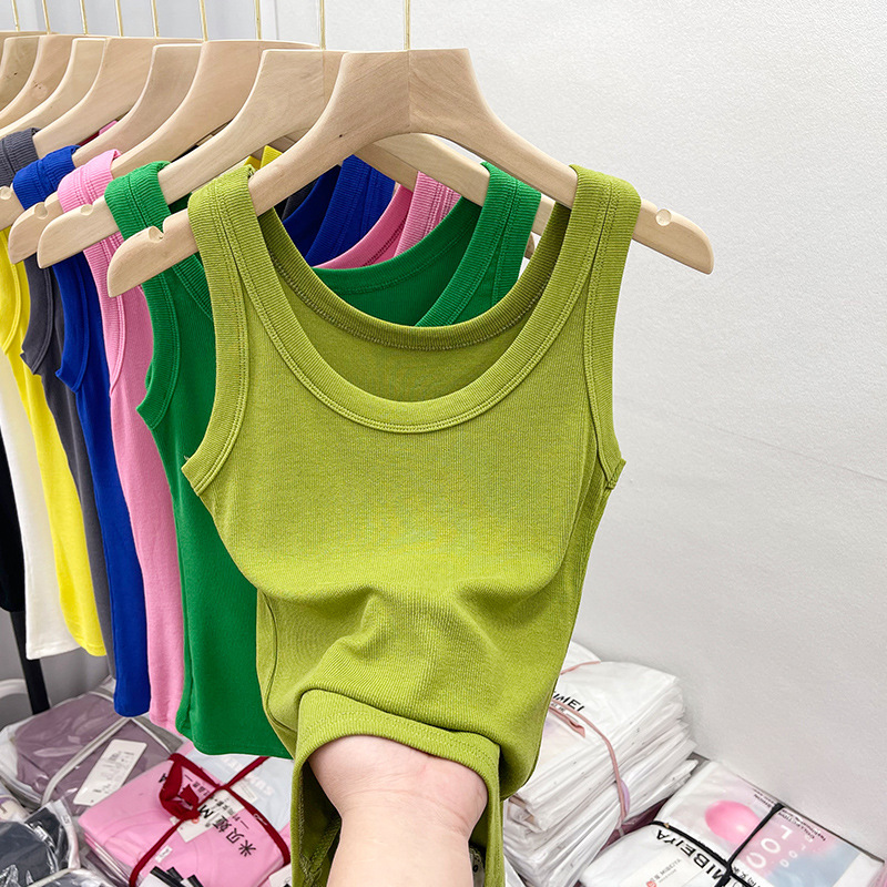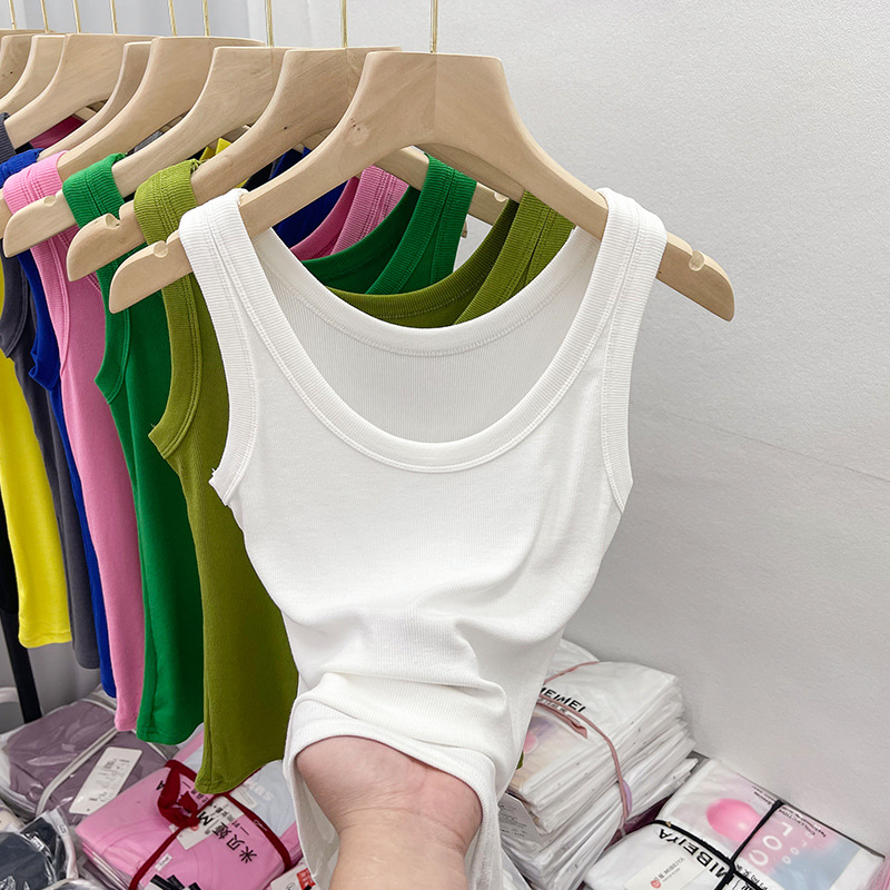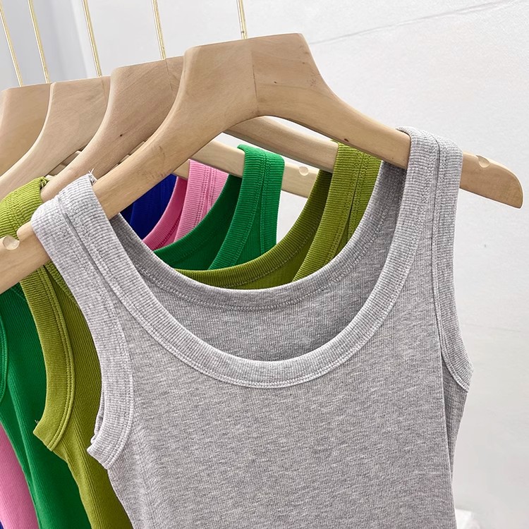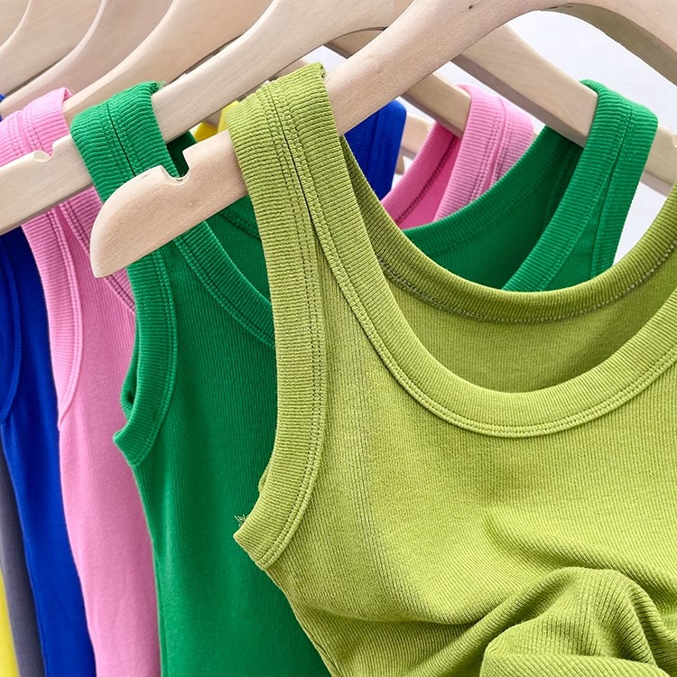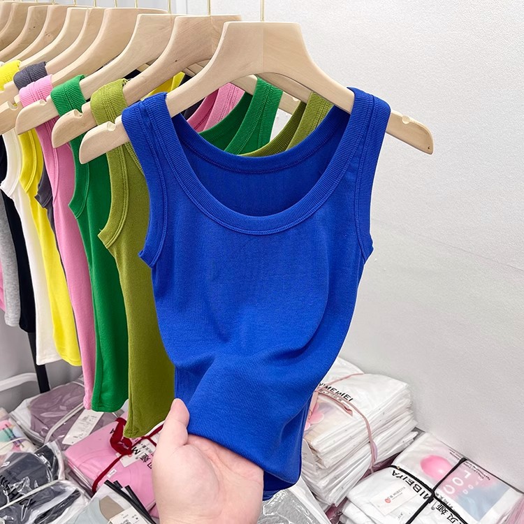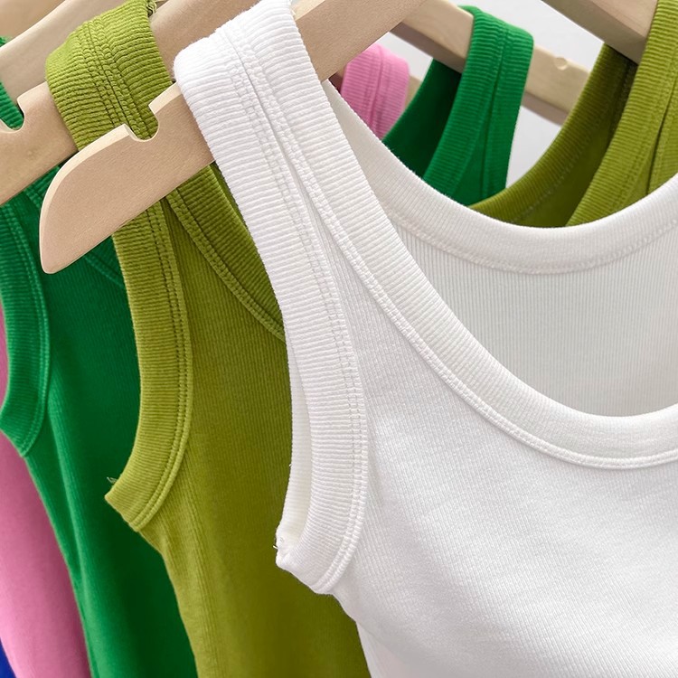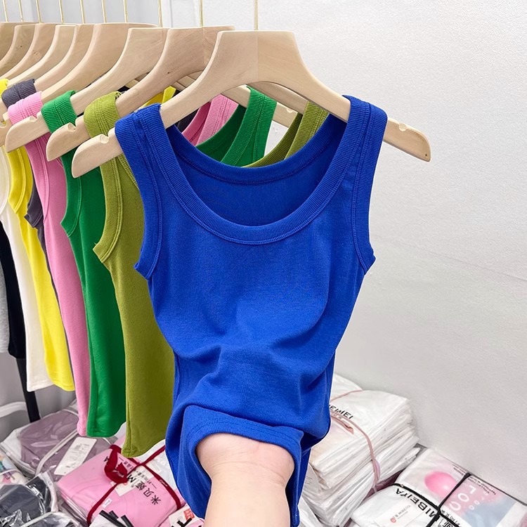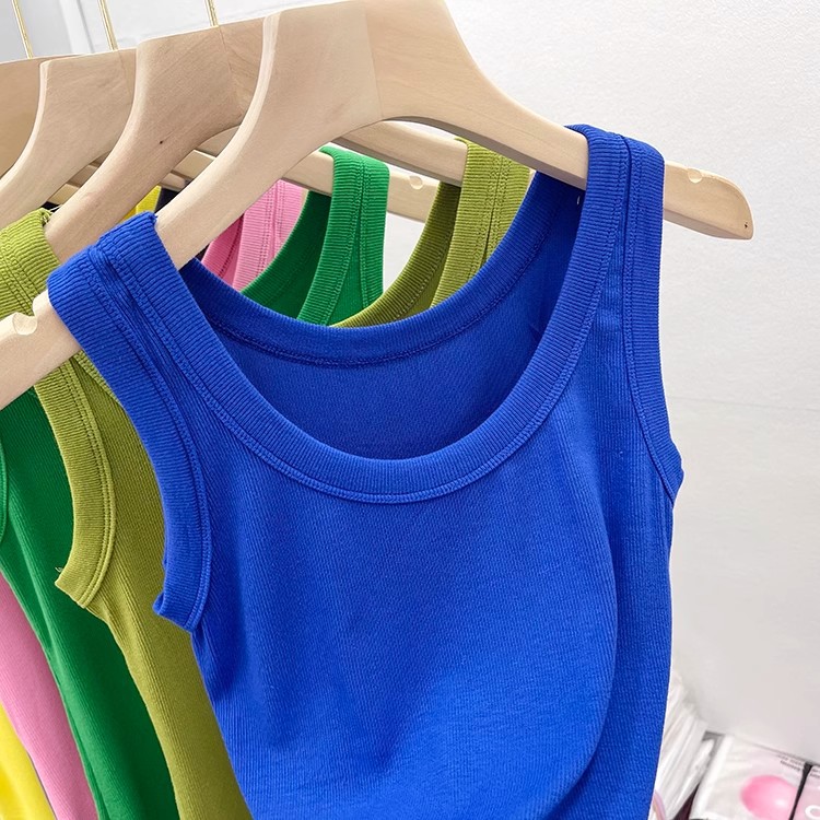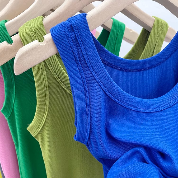 여름 아우터로 입기 좋은 클라인 블루 스레드 캐미솔과 트렌디한 노출 방지 민소매 슬림핏 탑