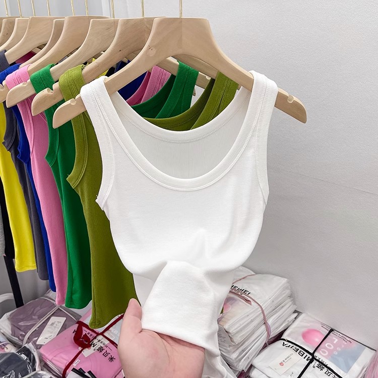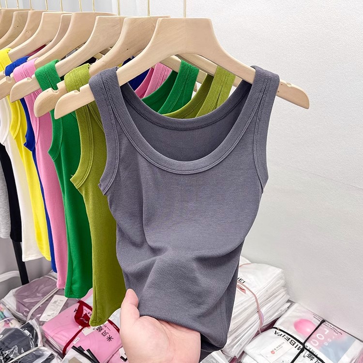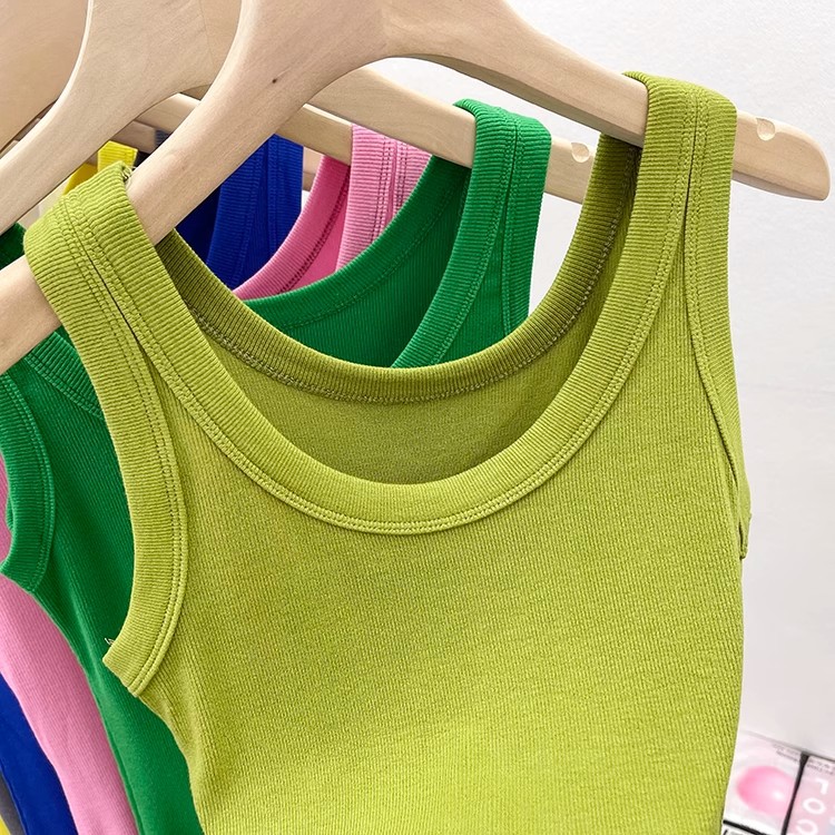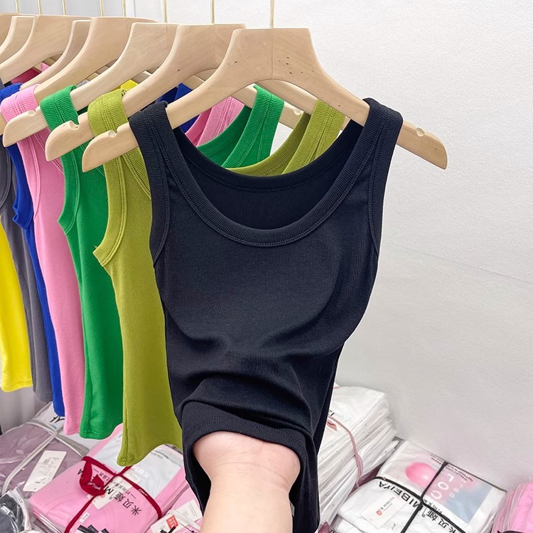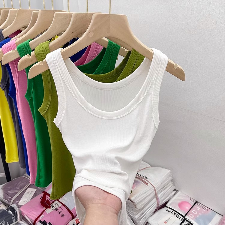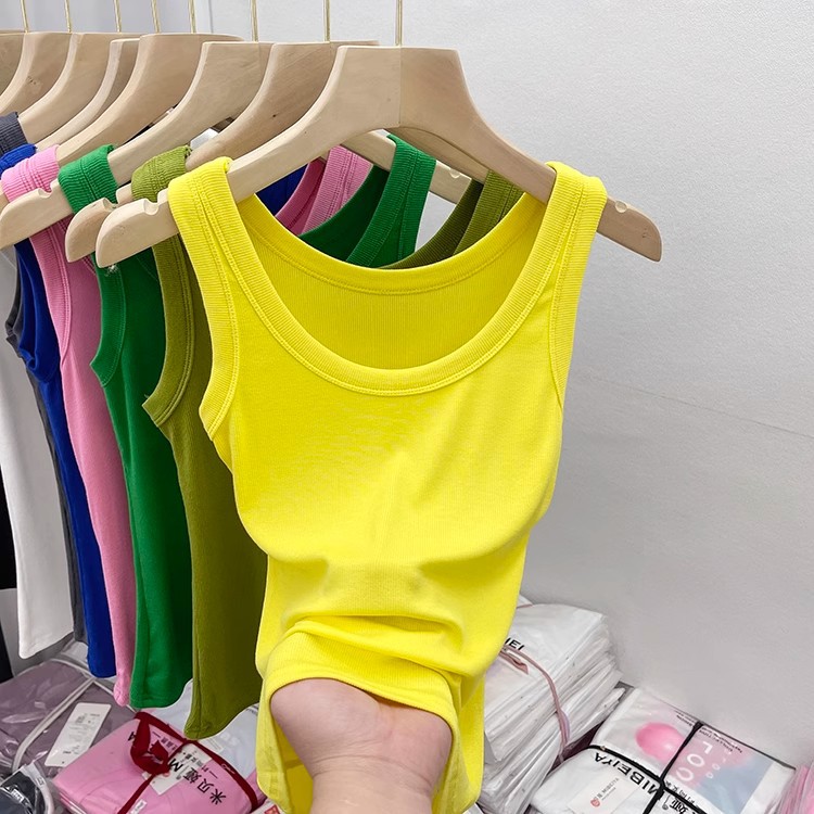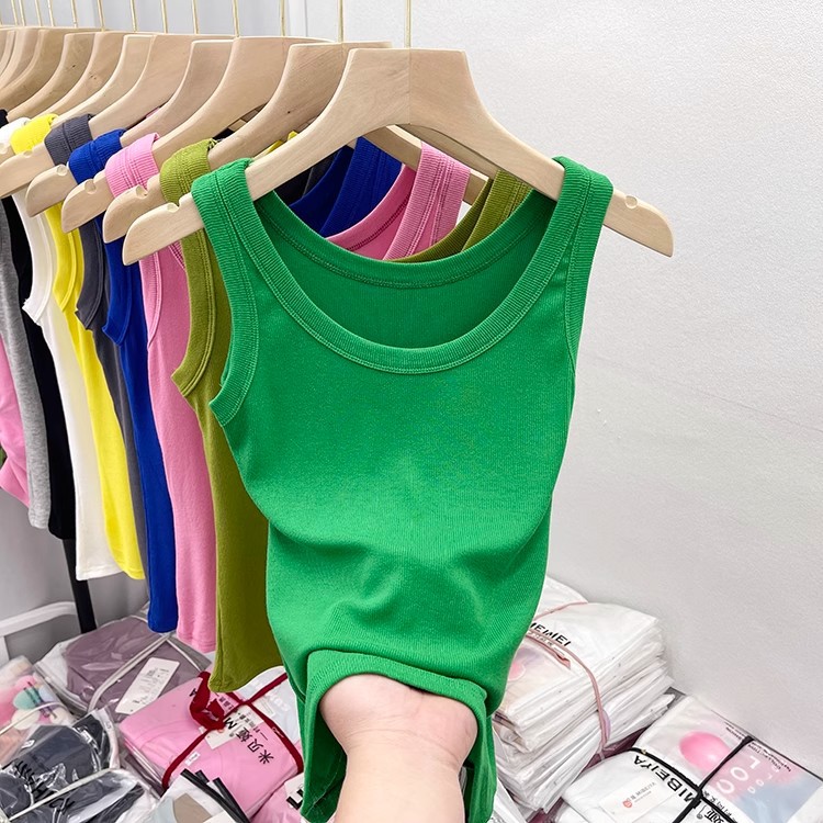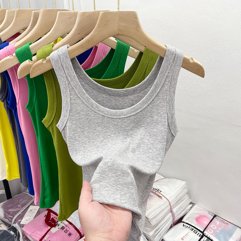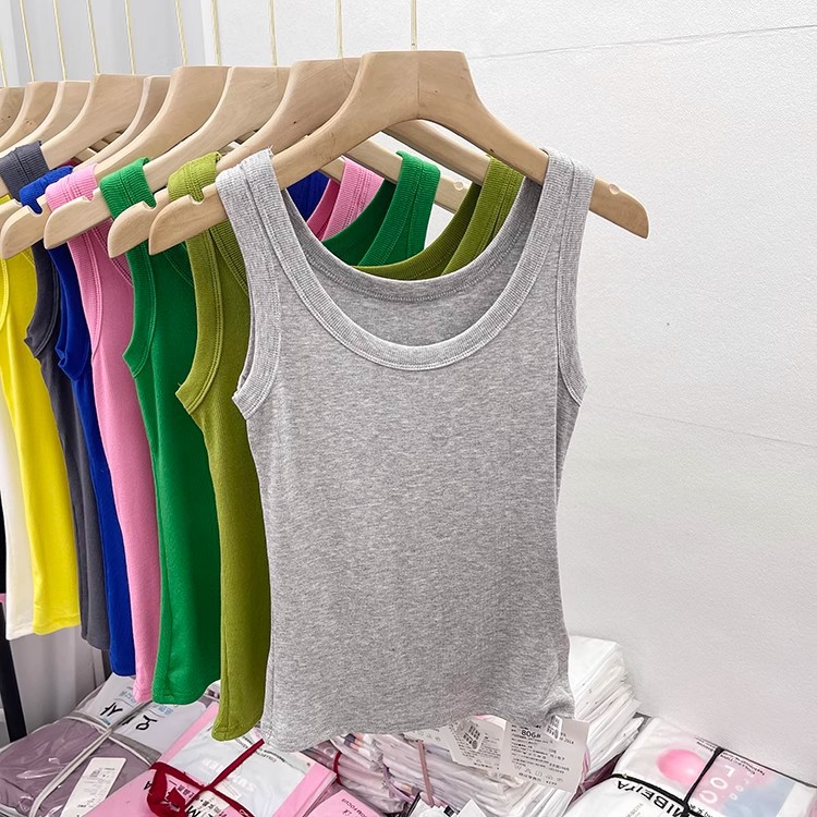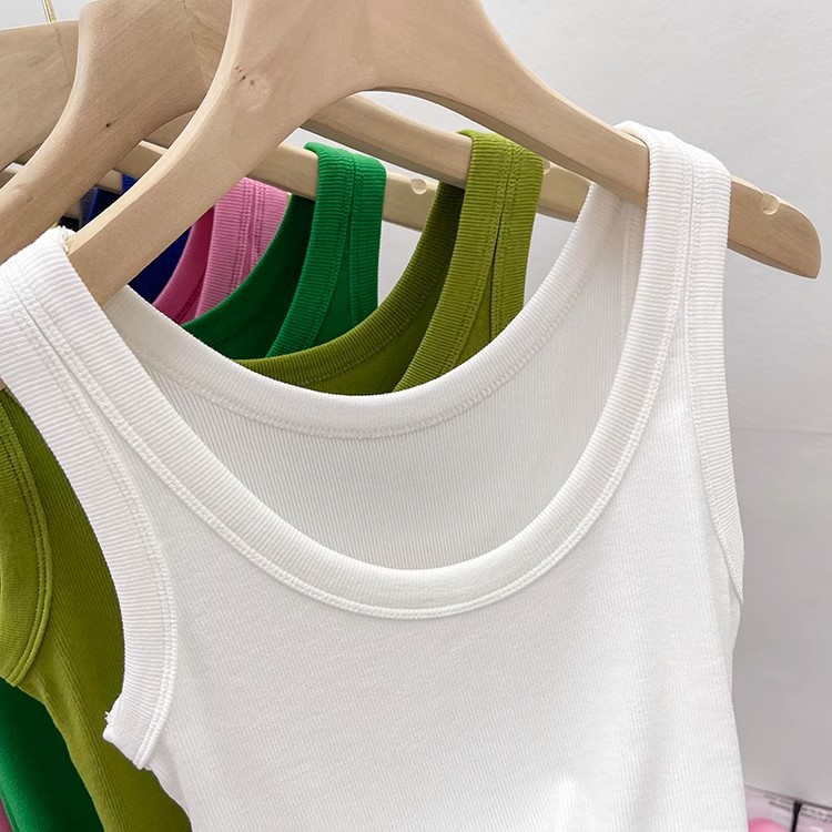 여름 아우터로 입기 좋은 클라인 블루 스레드 캐미솔과 트렌디한 노출 방지 민소매 슬림핏 탑