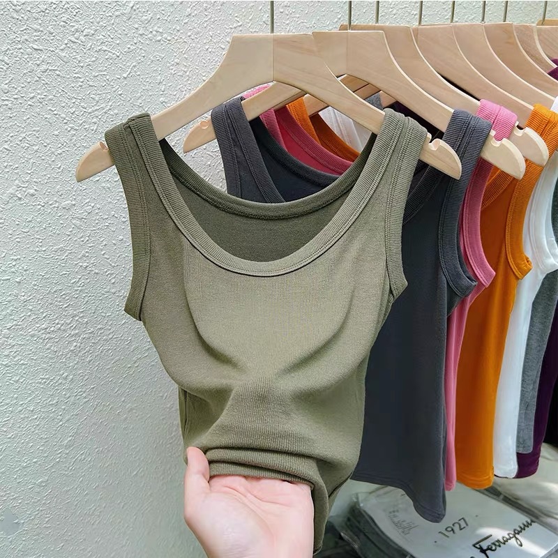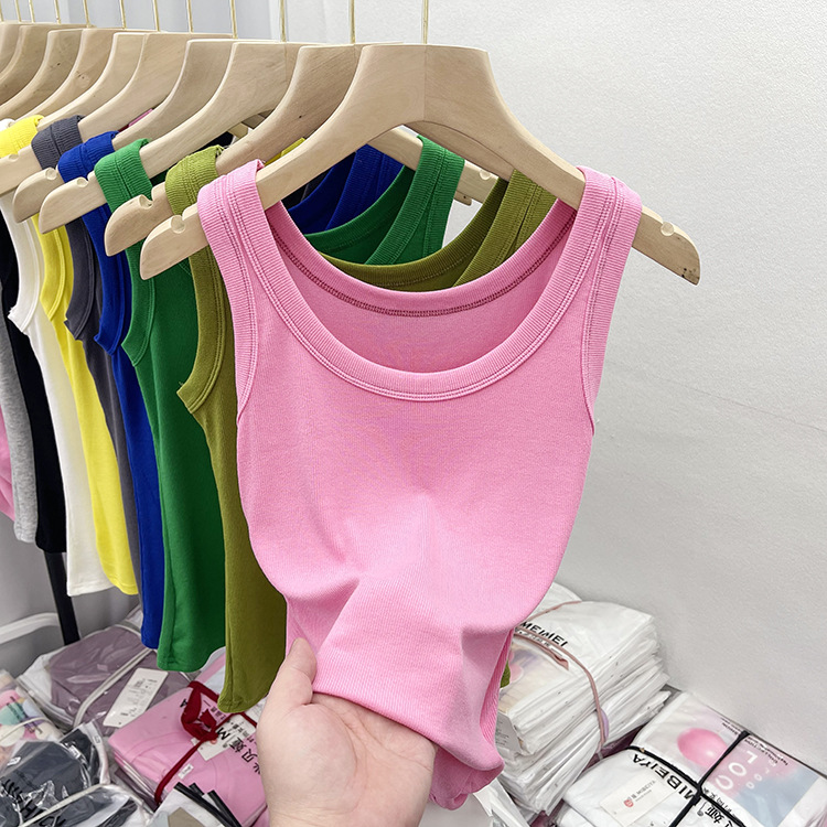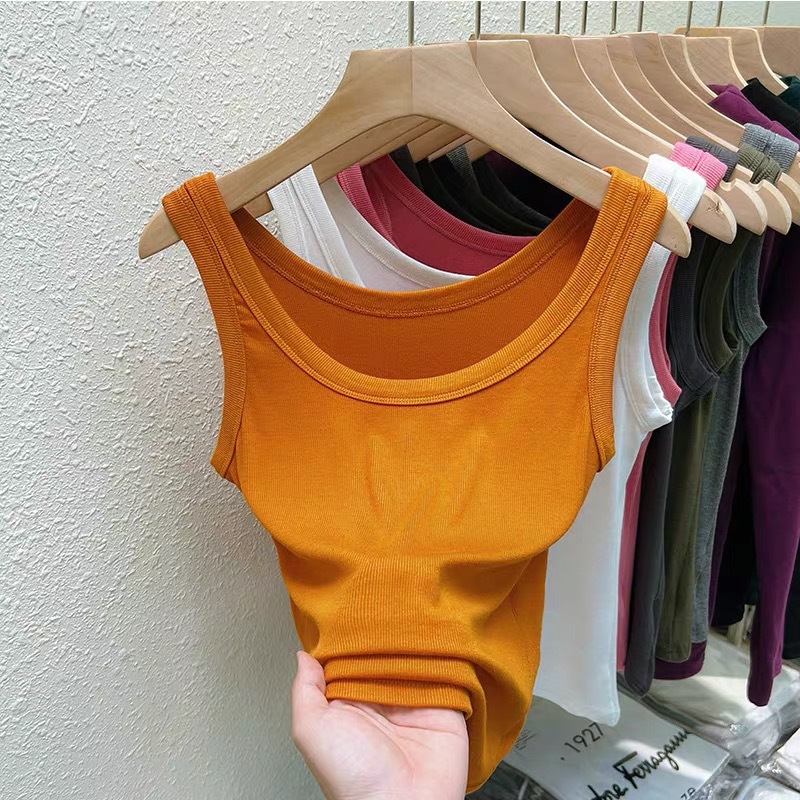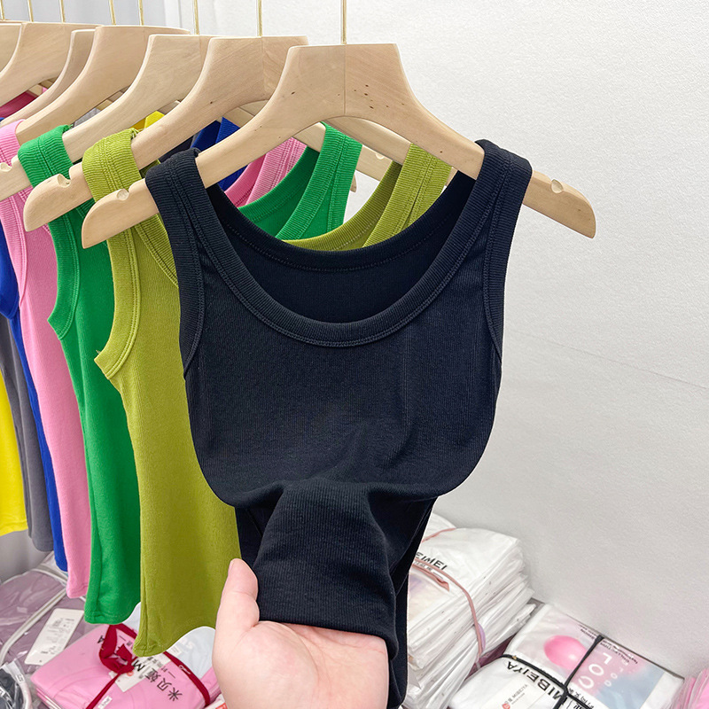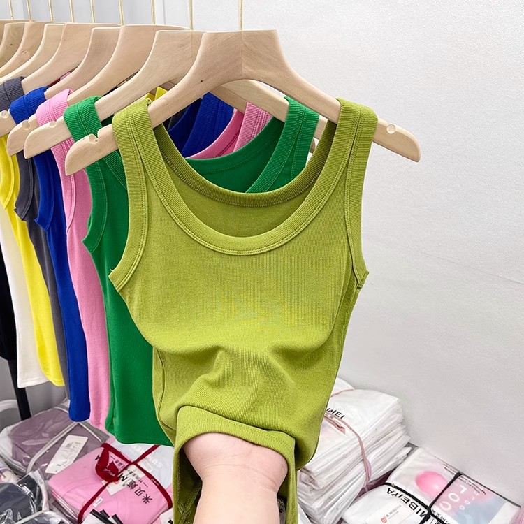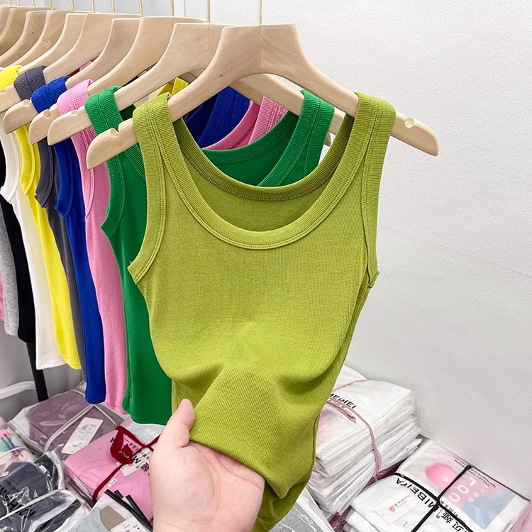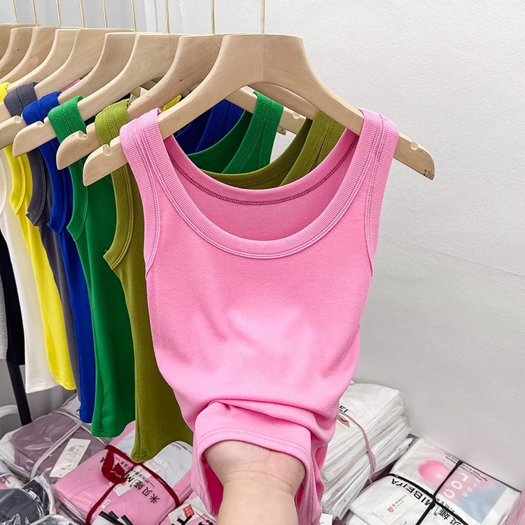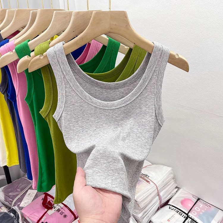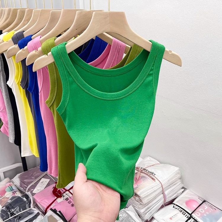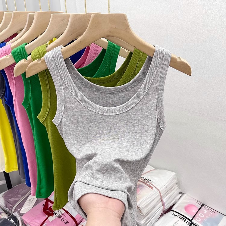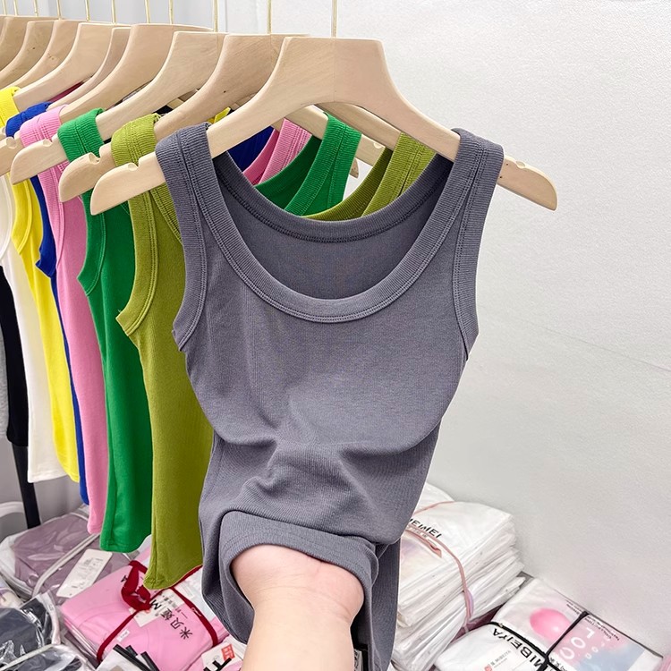 여름 아우터로 입기 좋은 클라인 블루 스레드 캐미솔과 트렌디한 노출 방지 민소매 슬림핏 탑