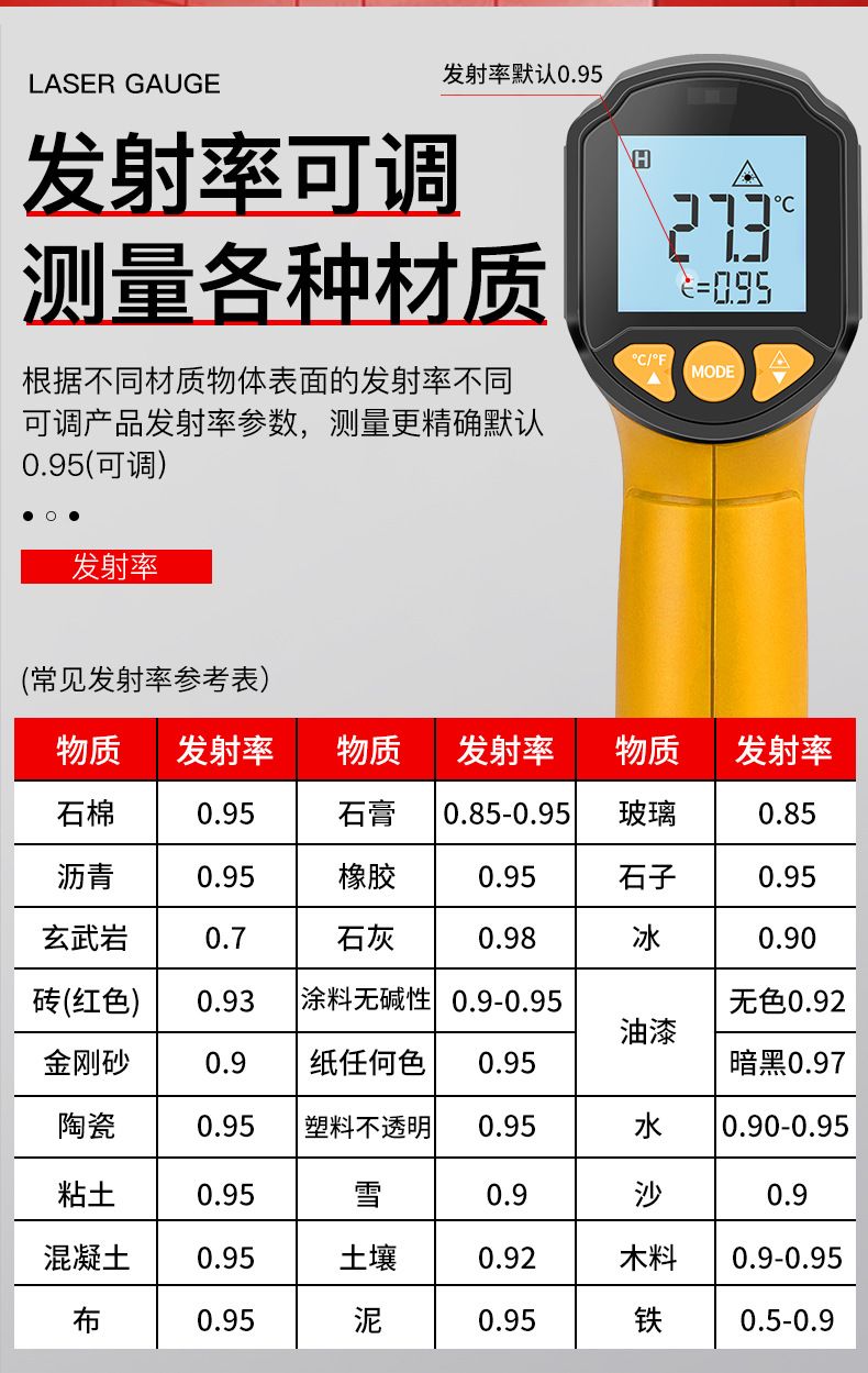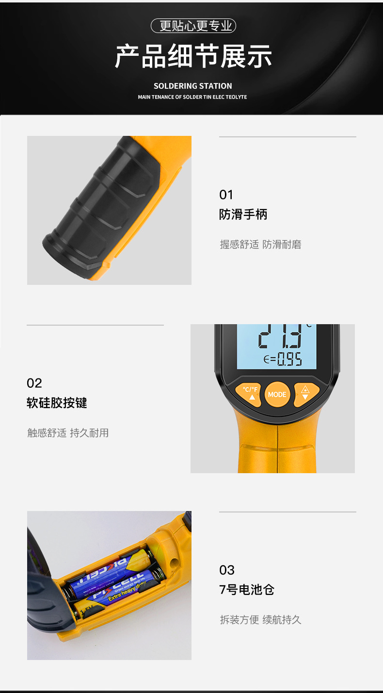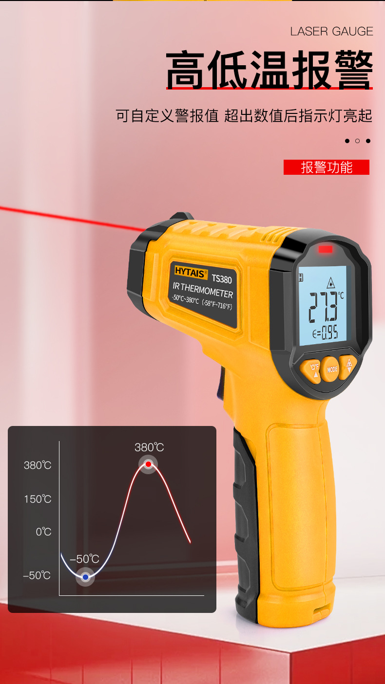 Taisheng 적외선 온도계 고정밀 레이저 오일 온도계 상업용 에어컨 튀김 고온 산업용 온도계