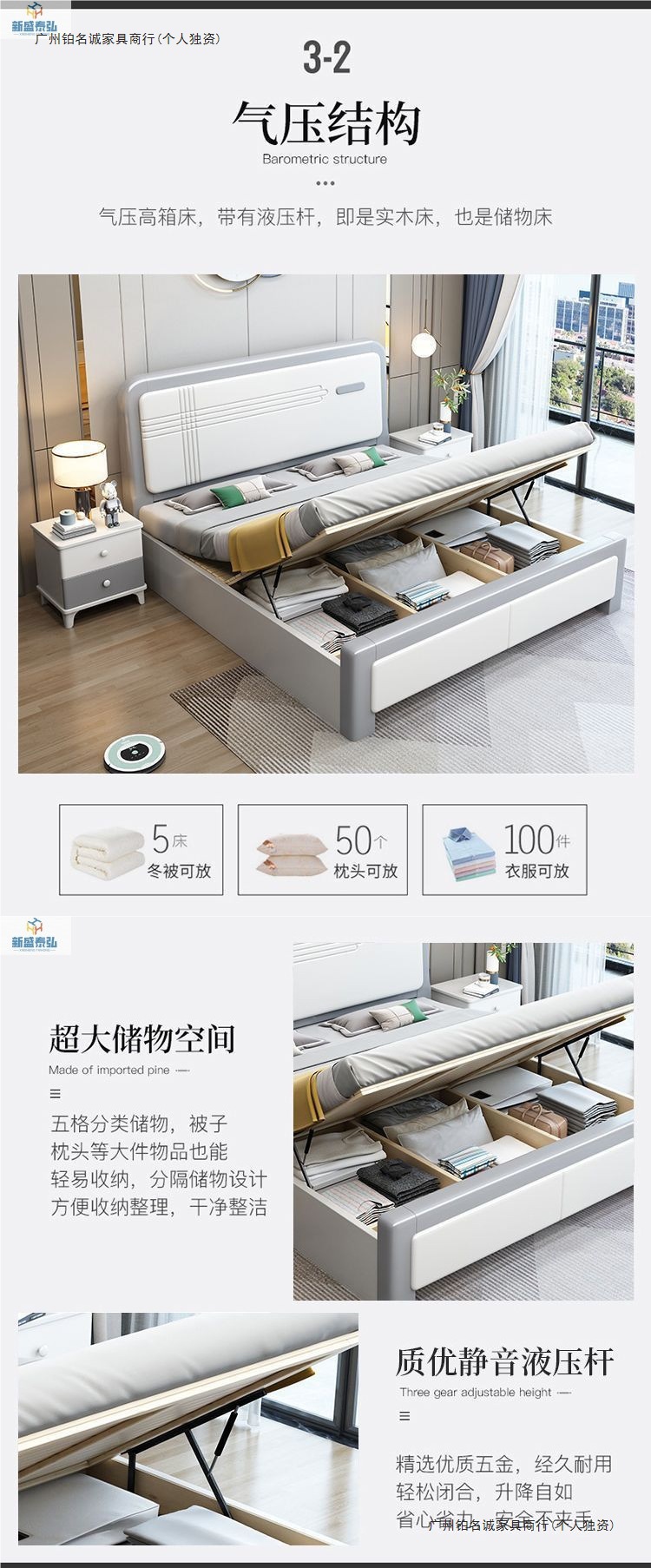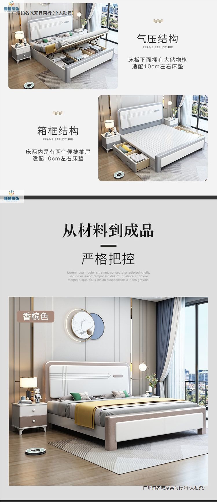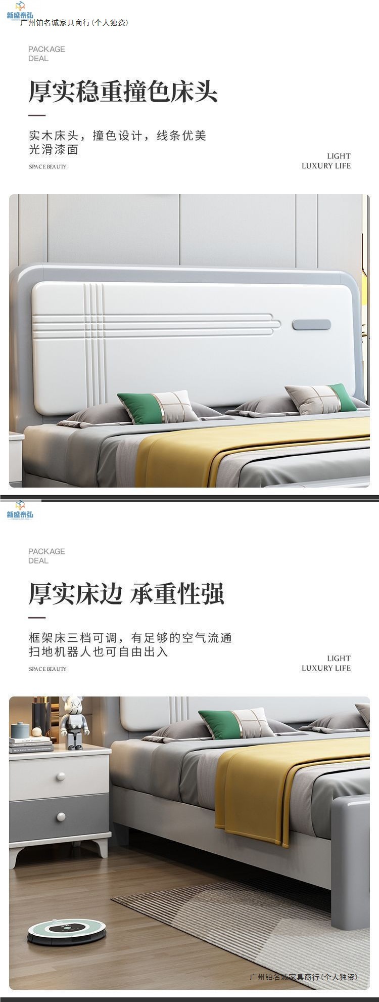 • 침대 + 고급 벨벳 라텍스 스프링 매트리스 + 캐비닛 2개
