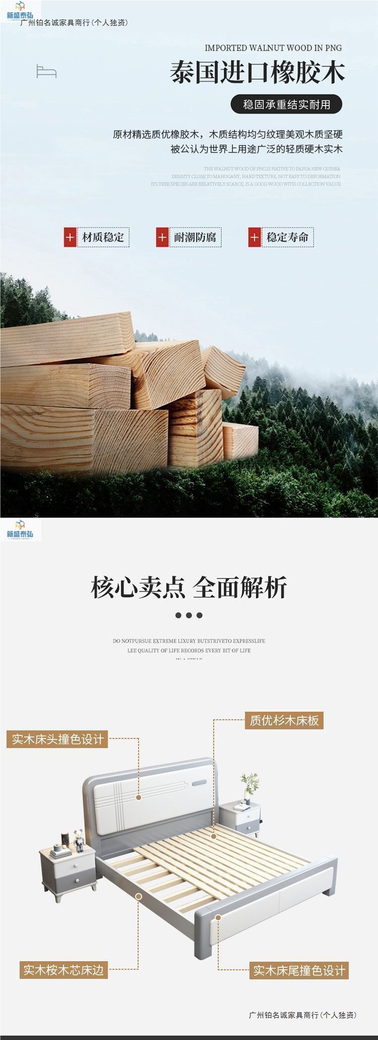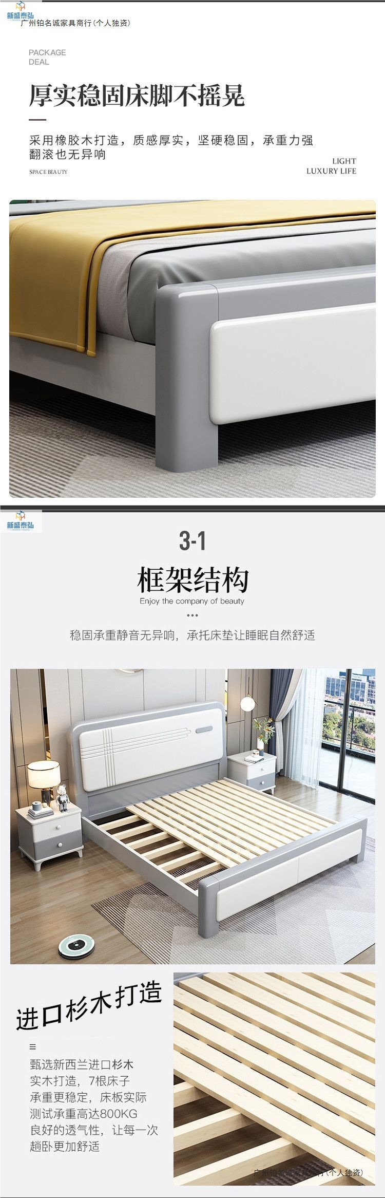 • 원목 침대 + 21cm 라텍스 스프링 매트리스 + 협탁 1개