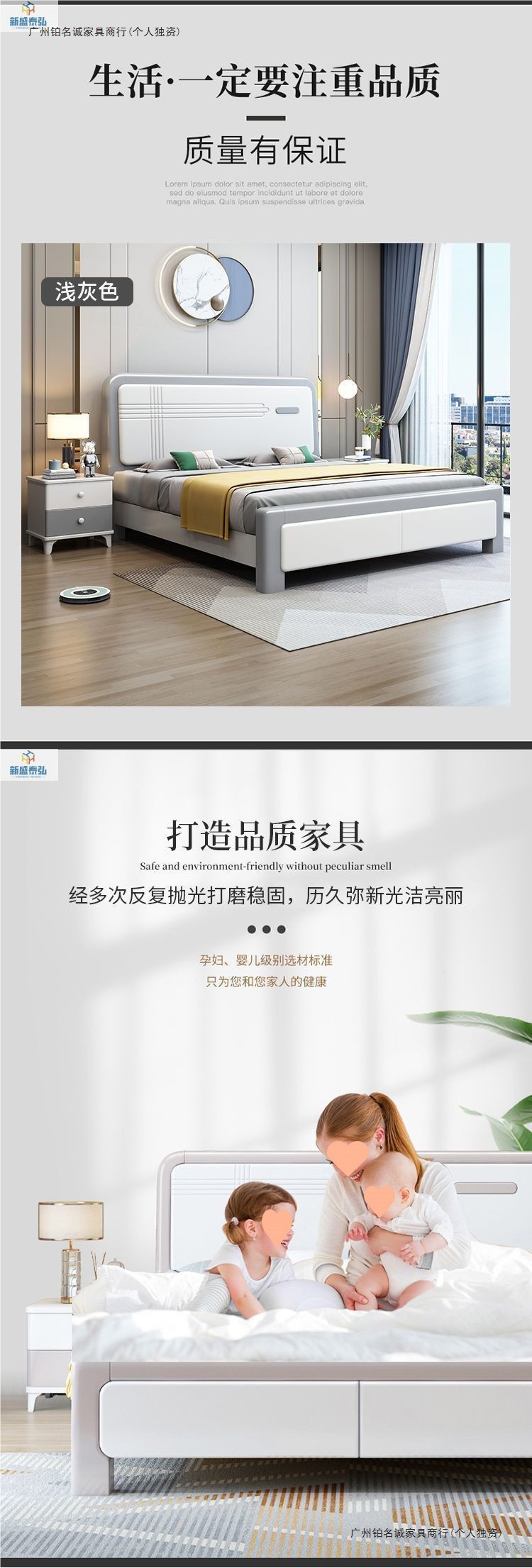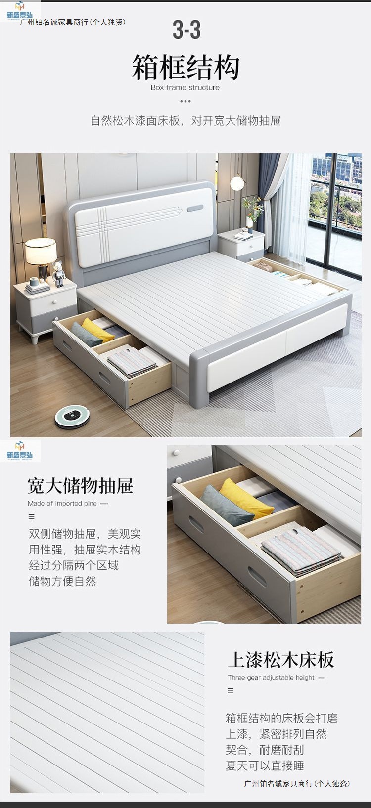 유럽식 심플 원목 더블 침대, 마스터 침실, 대형 침대, 모던 심플 어린이 침대, 북유럽 모던 심플 침대, 웨딩 침대스토어 가기