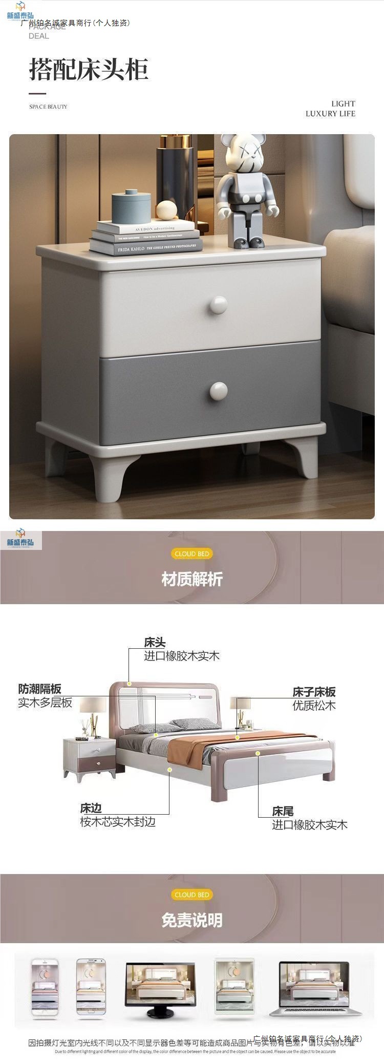• 원목 침대 + 편안한 스프링 매트 + 캐비닛 2개