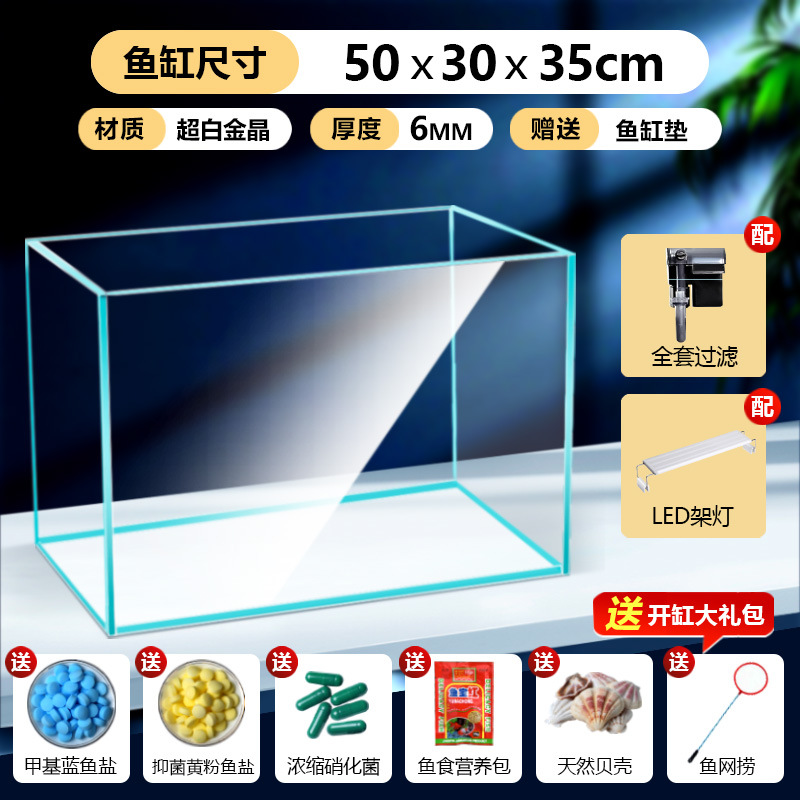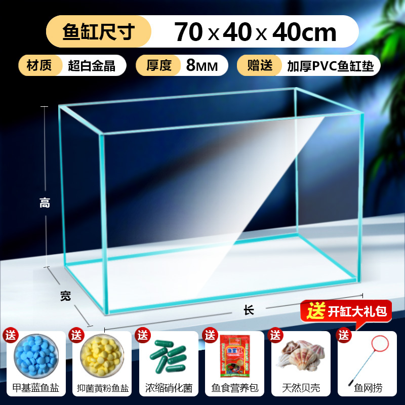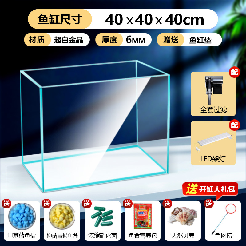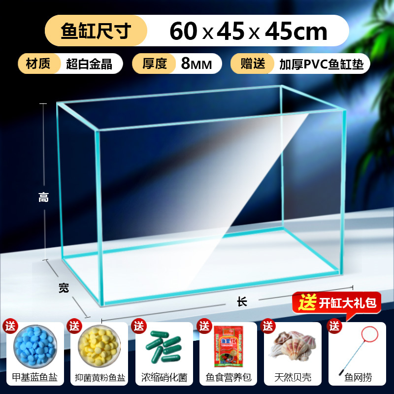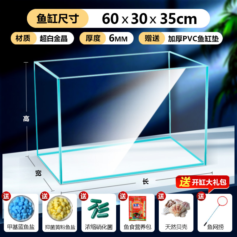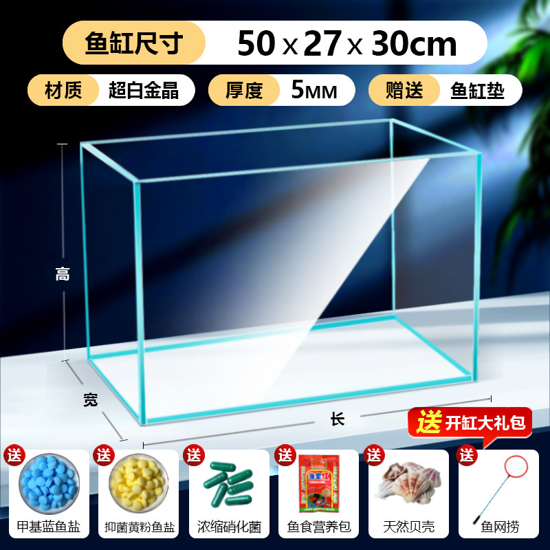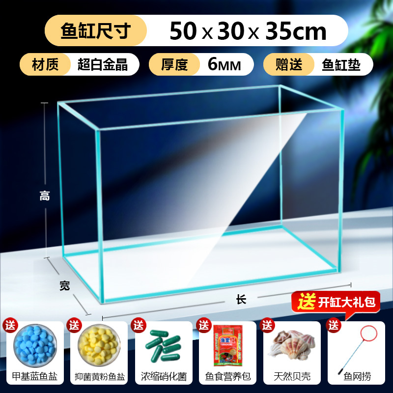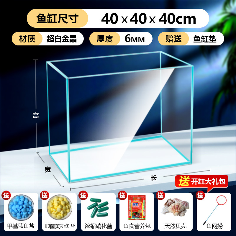 어항 유리 탱크 골드 크리스탈 초백색 거실 탁상용 직각 금붕어 어항 생태 계류 탱크 직판 사각형스토어 가기