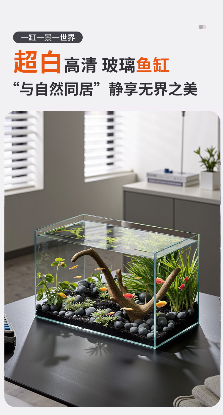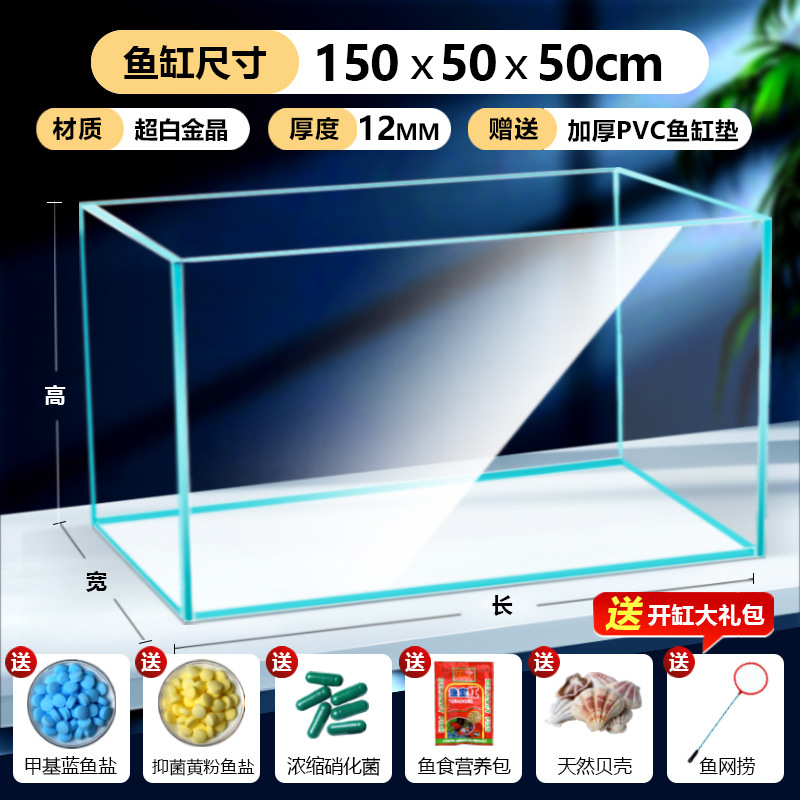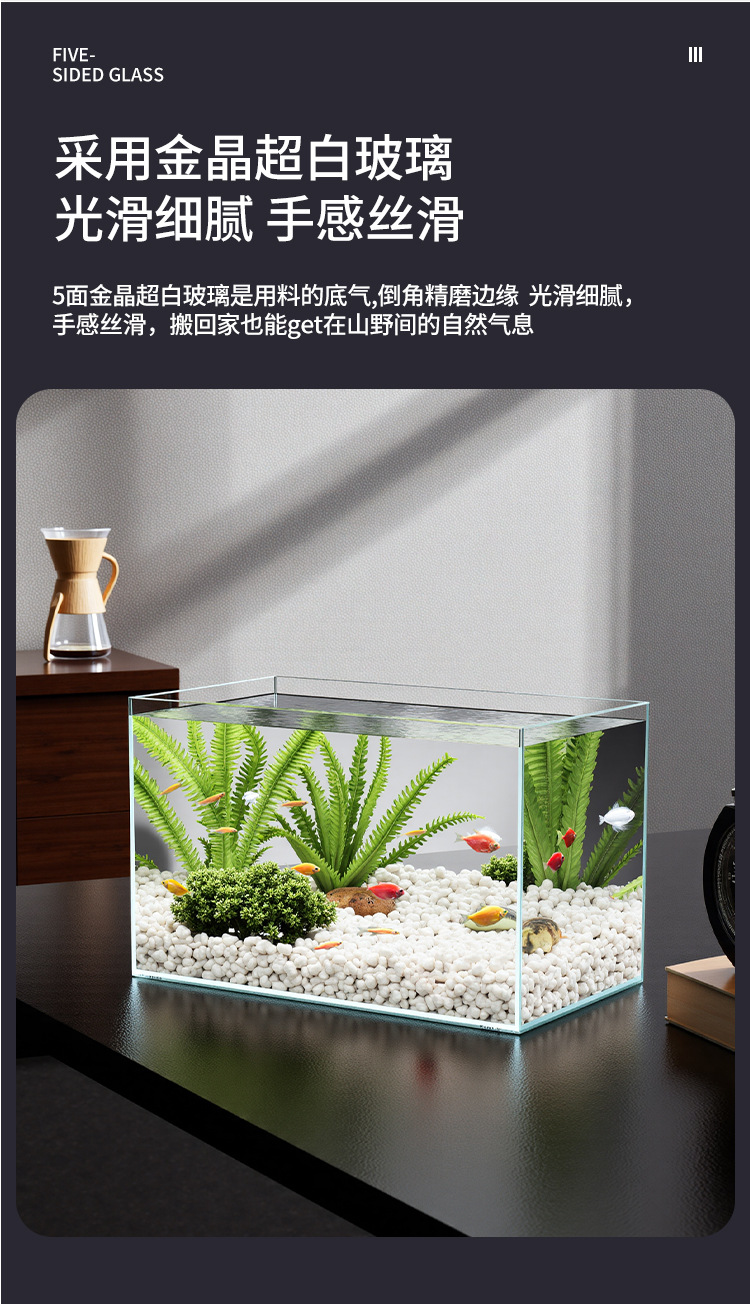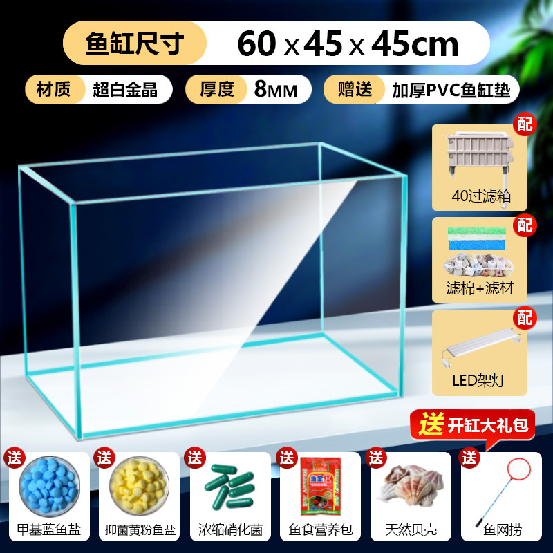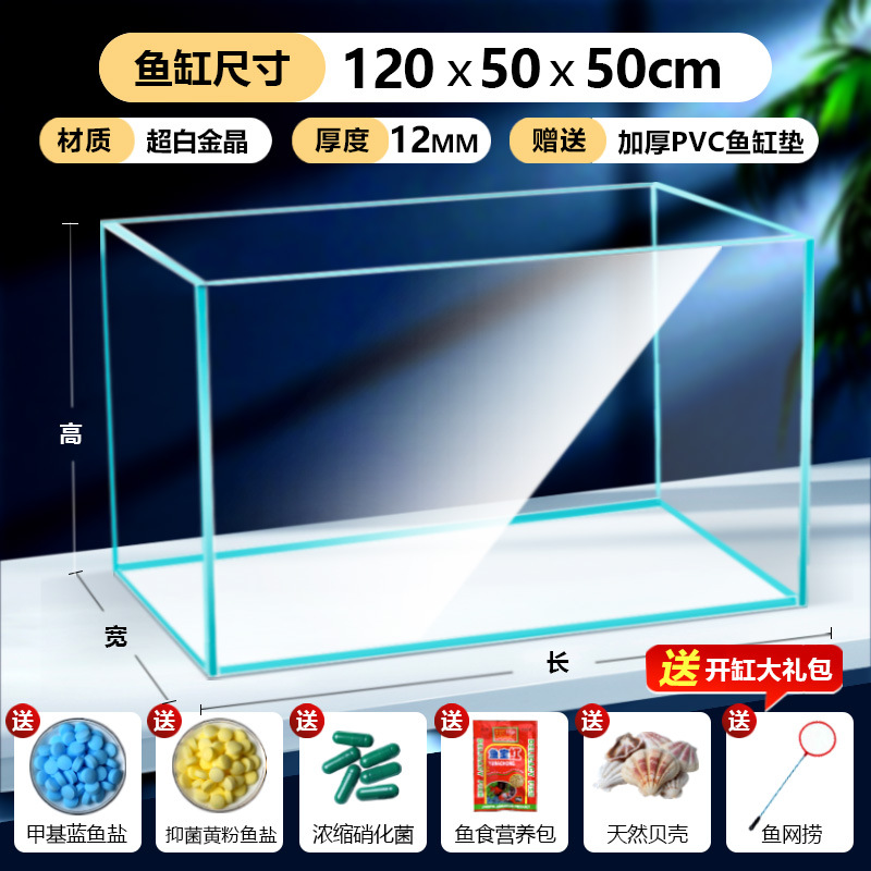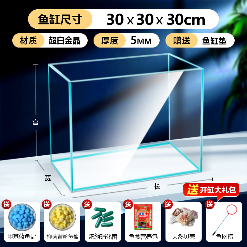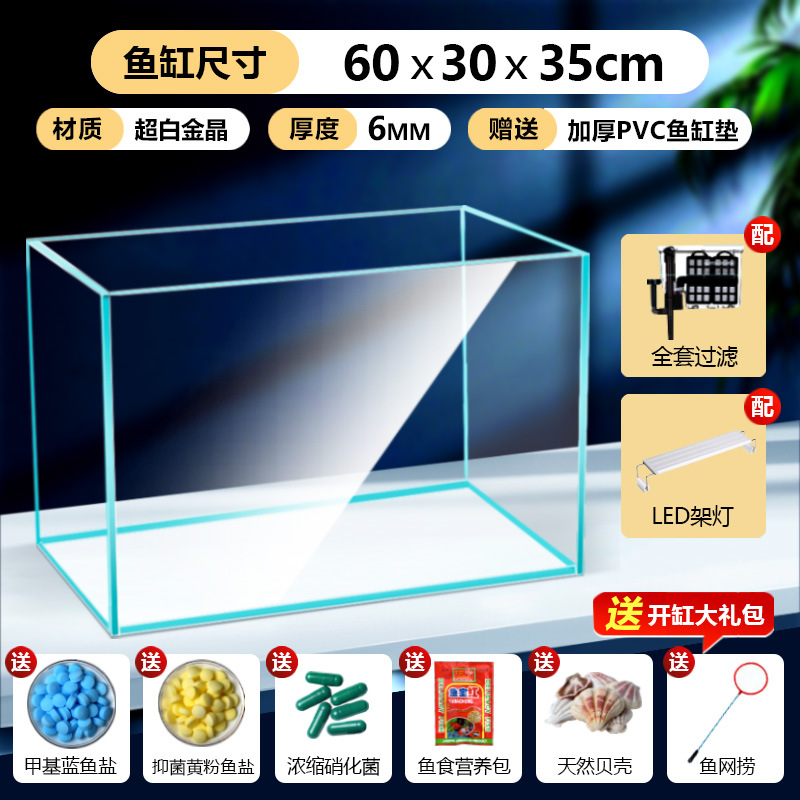 어항 유리 탱크 골드 크리스탈 초백색 거실 탁상용 직각 금붕어 어항 생태 계류 탱크 직판 사각형스토어 가기