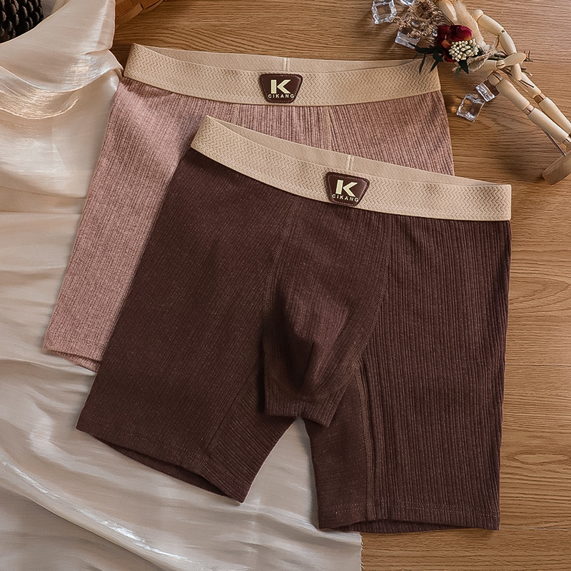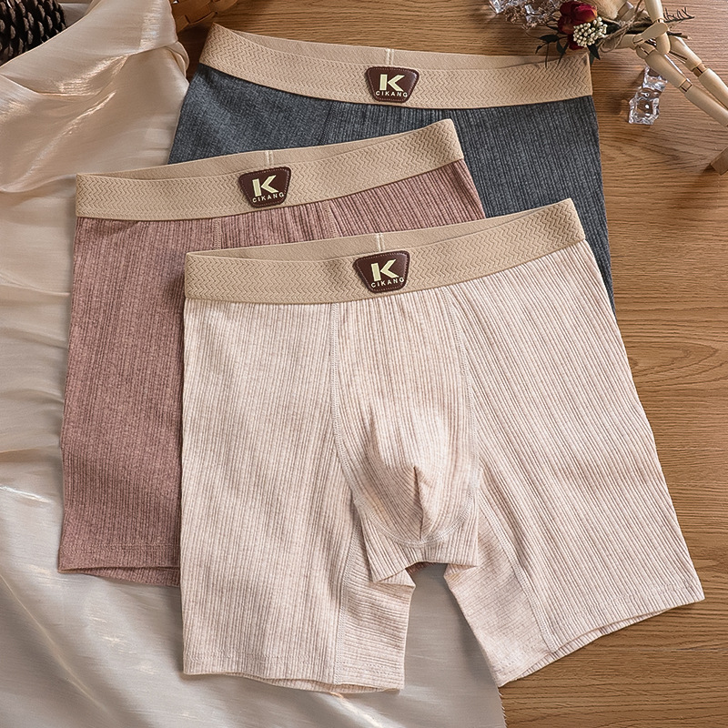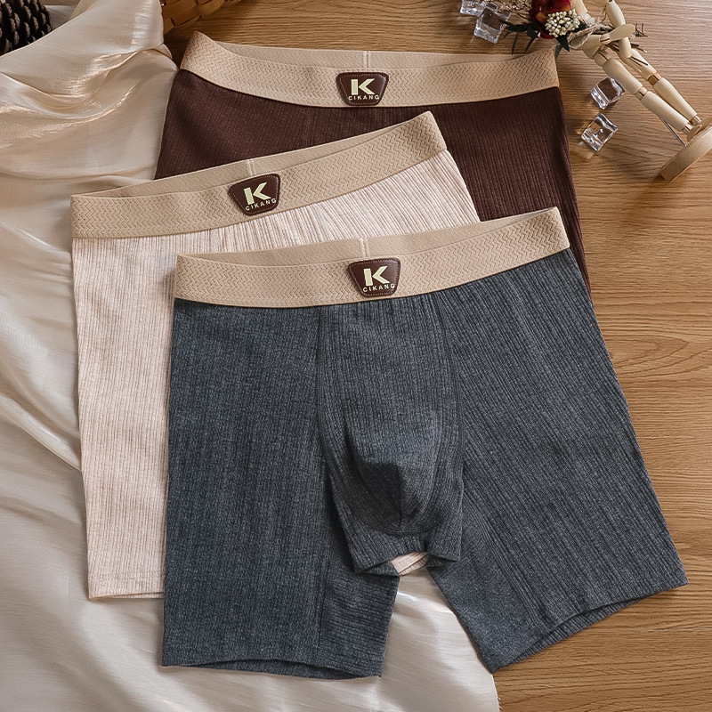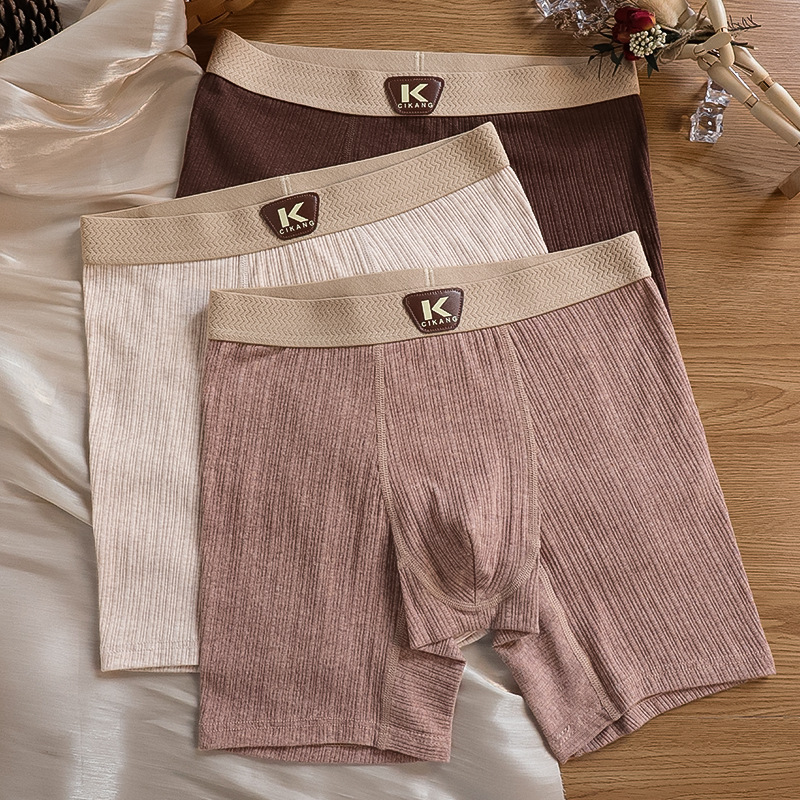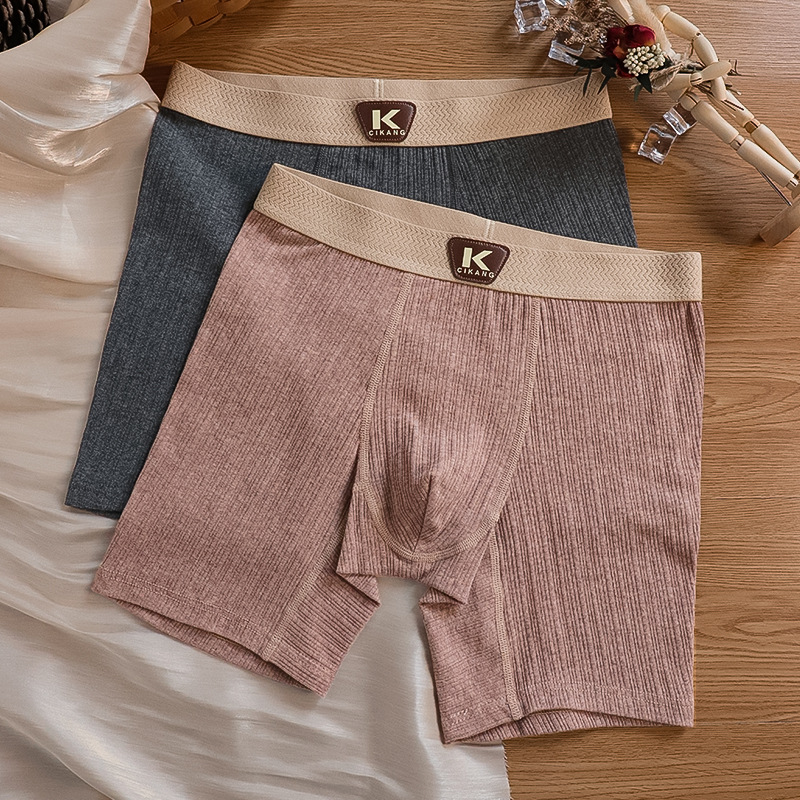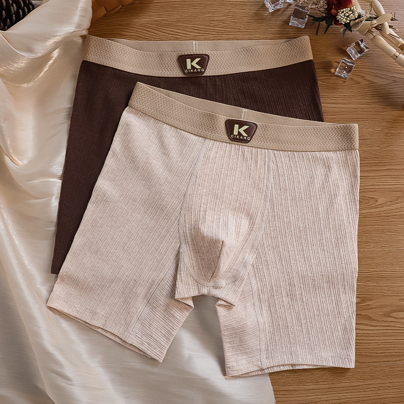 스포츠 및 피트니스 남성용 속옷, 질감 있는 면 중간 허리 피부 친화적인 복서 팬티, 긴 바지, 마모 방지 기질
