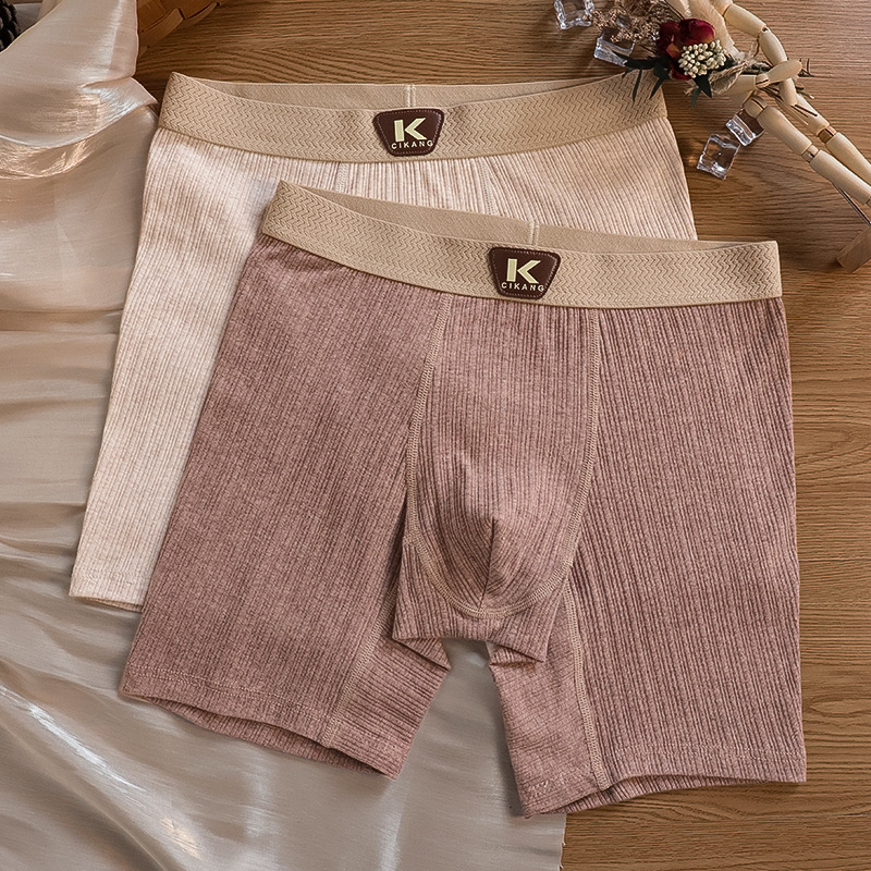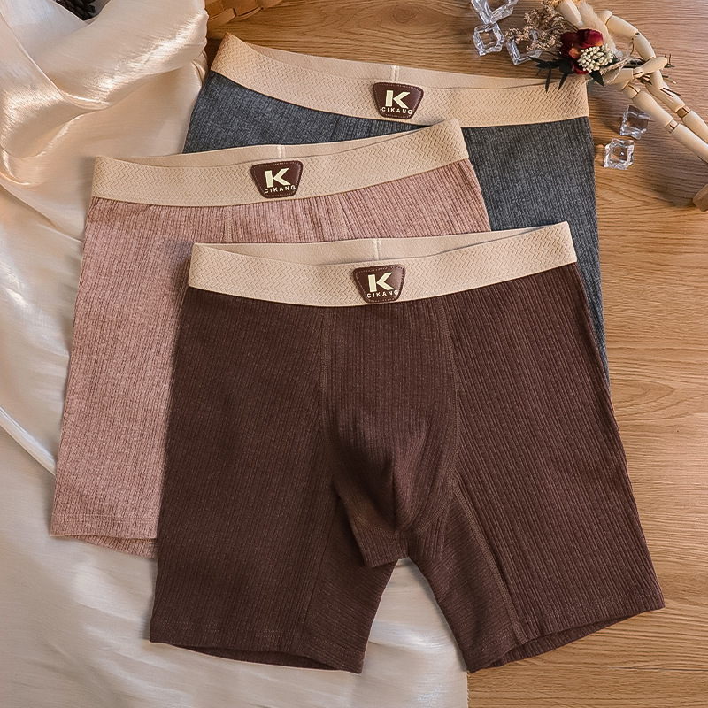 스포츠 및 피트니스 남성용 속옷, 질감 있는 면 중간 허리 피부 친화적인 복서 팬티, 긴 바지, 마모 방지 기질스토어 가기