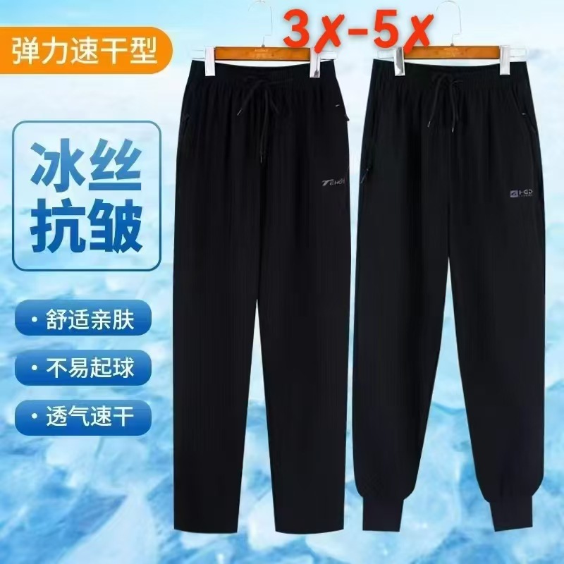 아이스 실크 바지 남성 여름 얇은 속건 스포츠 캐주얼 바지 루즈 스트레이트 남성 여름 바지 남성 바지