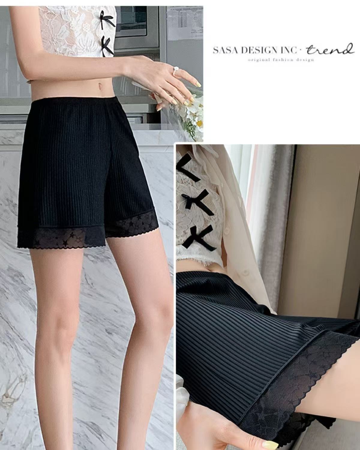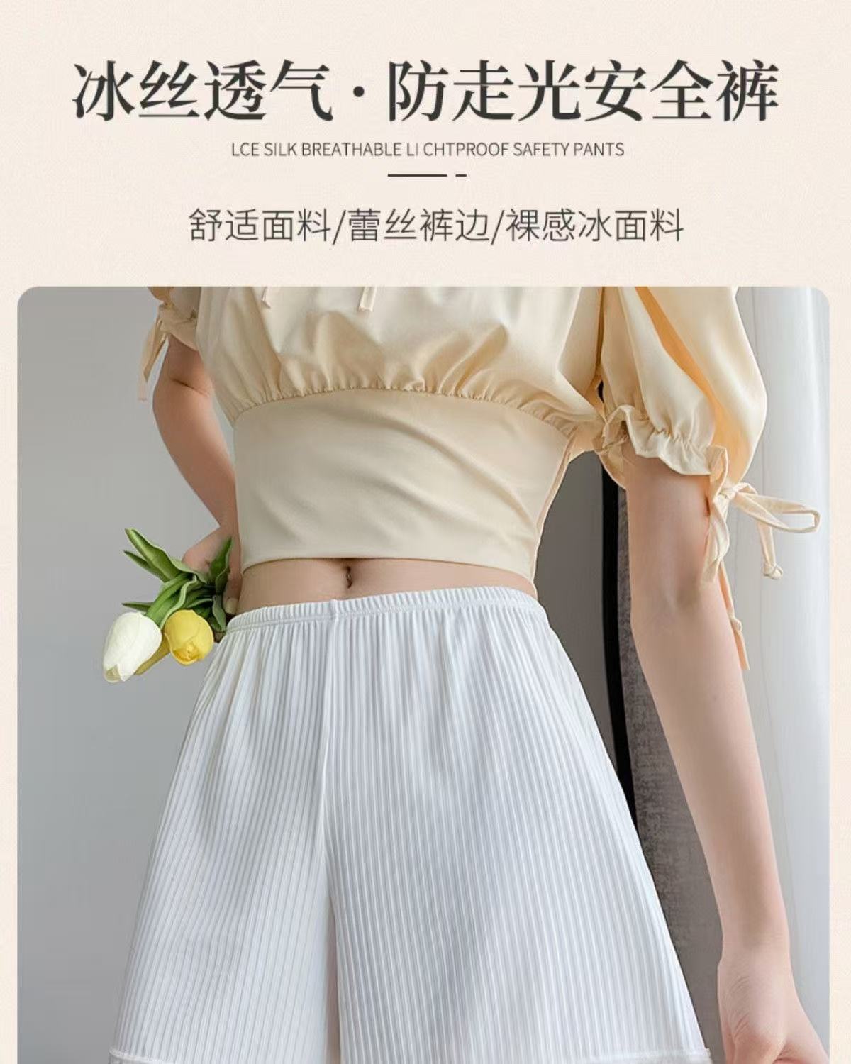안감 반바지, 노출 방지, 아이스 실크, 홈웨어, 라지 사이즈, 루즈핏, 롤링되지 않음, 여성용, 여름용, 얇은, 하이웨이스트, 외부 착용 가능, 얇은 스타일