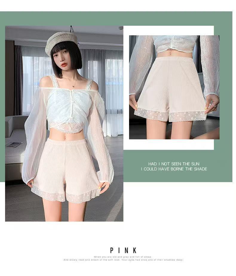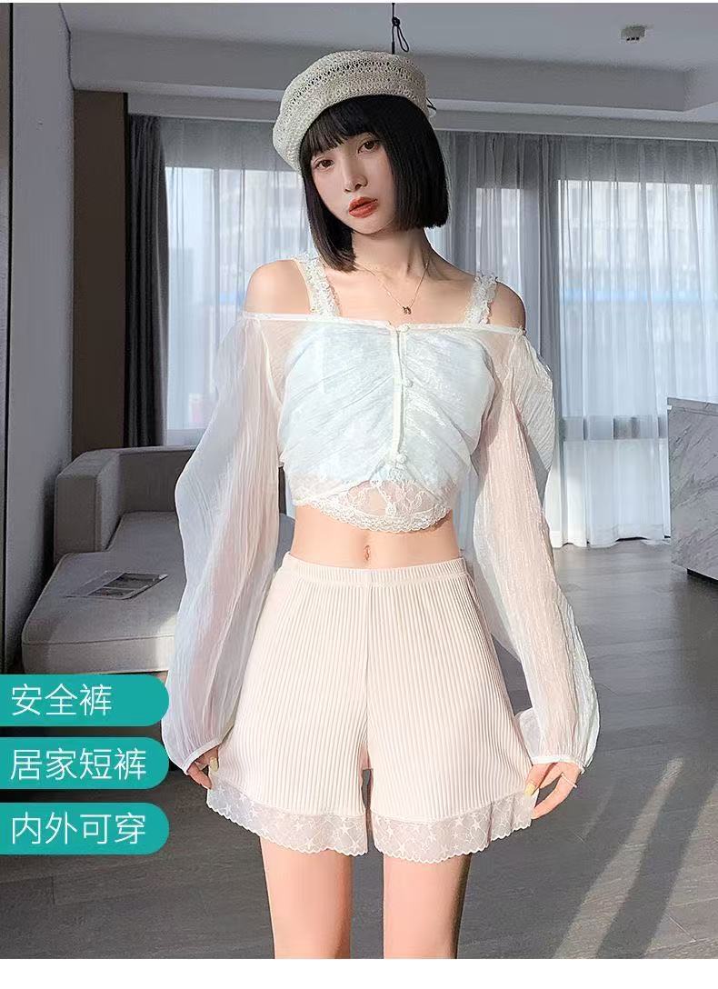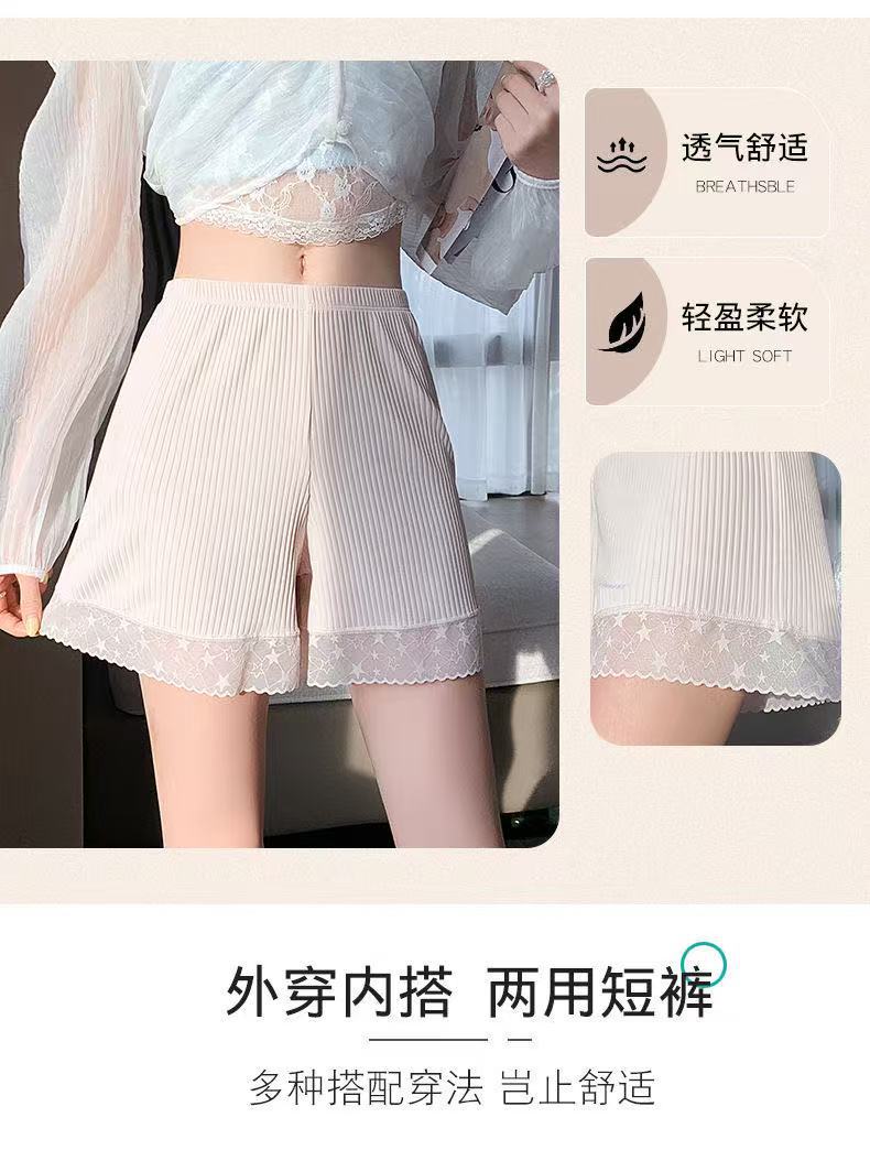 안감 반바지, 노출 방지, 아이스 실크, 홈웨어, 라지 사이즈, 루즈핏, 롤링되지 않음, 여성용, 여름용, 얇은, 하이웨이스트, 외부 착용 가능, 얇은 스타일스토어 가기