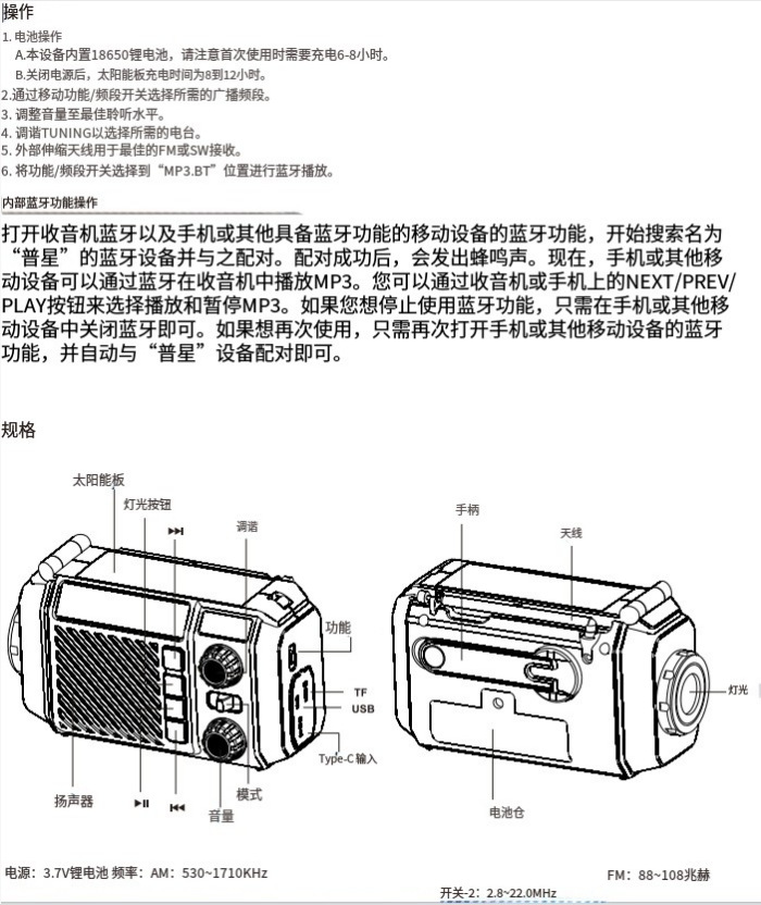 비상 다기능 태양광 발전 라디오 조명 기능 라디오